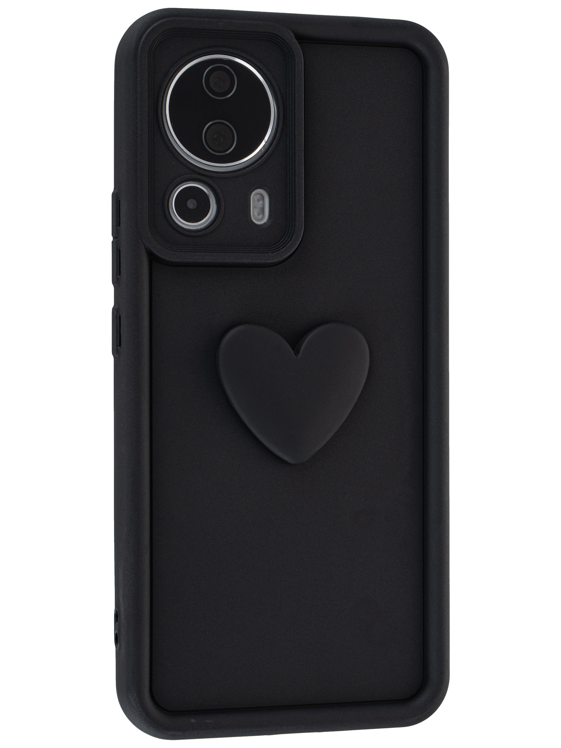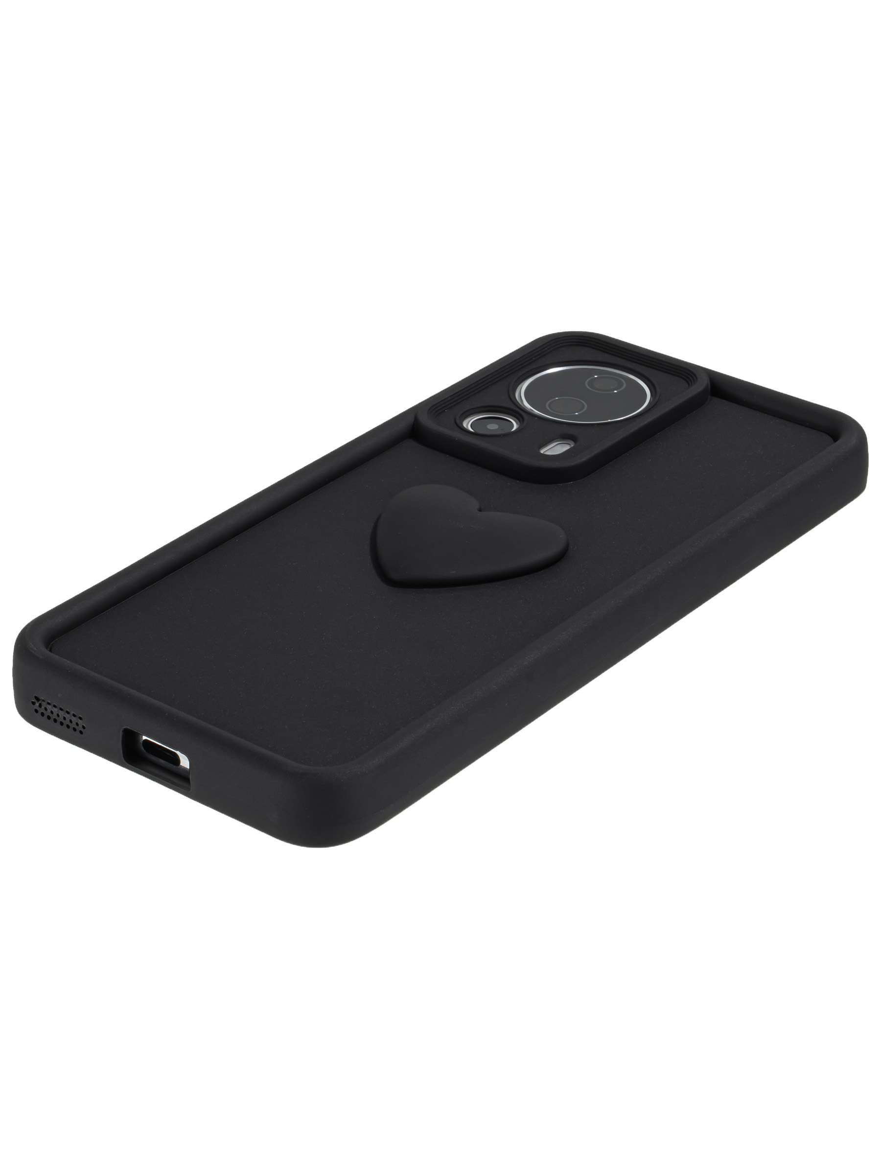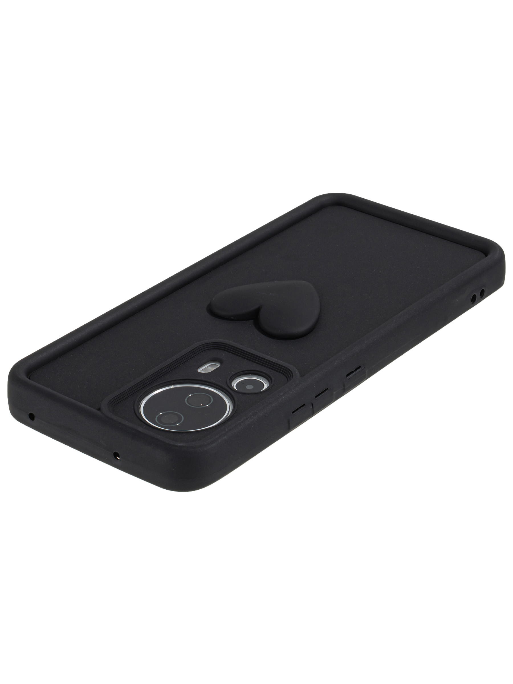 Силиконовый чехол с объемным сердцем от КейсБерри. Модуль камер максимально защищен. Все вырезы идеально подогнаны.