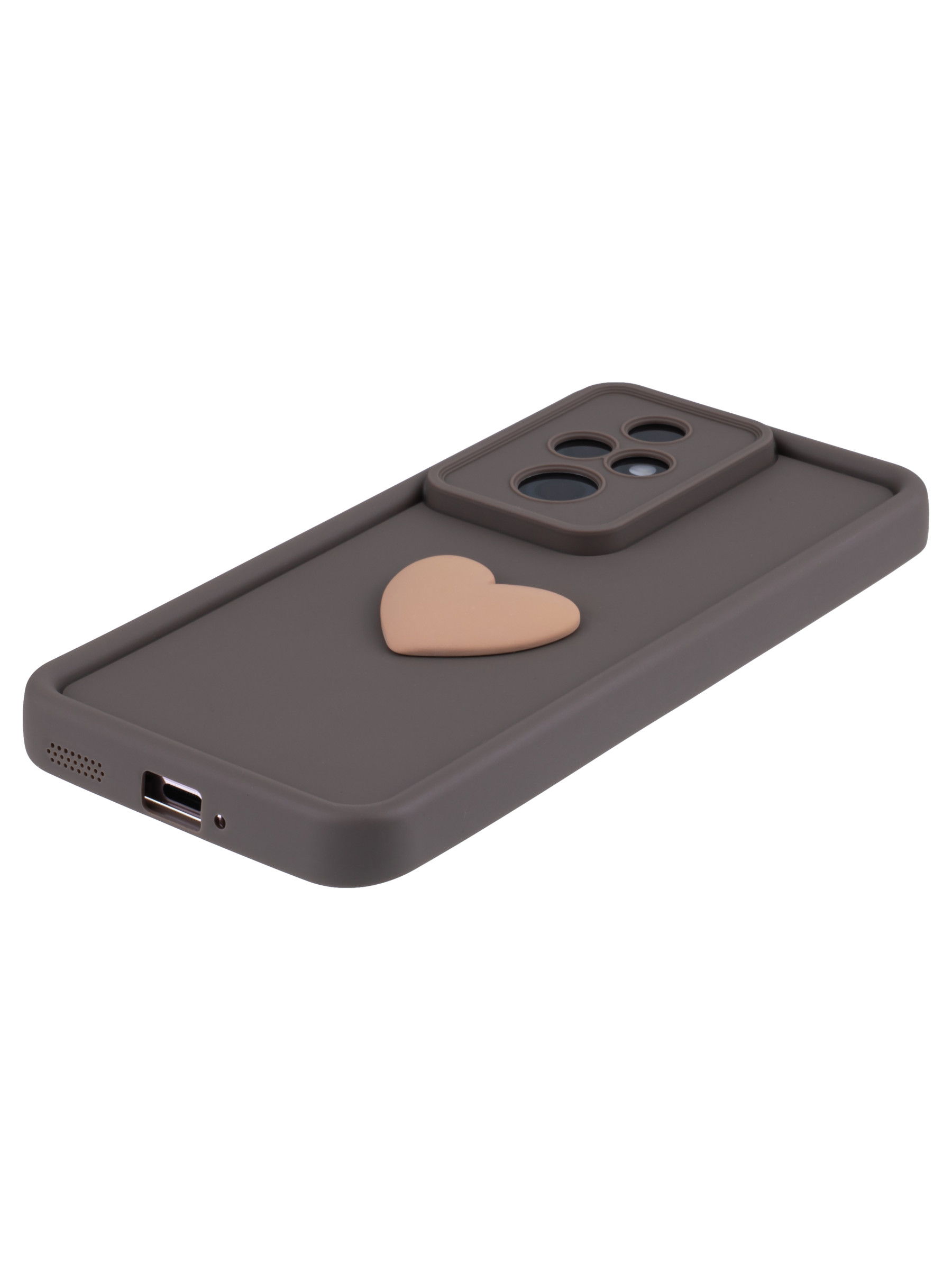 Силиконовый чехол с объемным сердцем от КейсБерри. Модуль камер максимально защищен. Все вырезы идеально подогнаны.