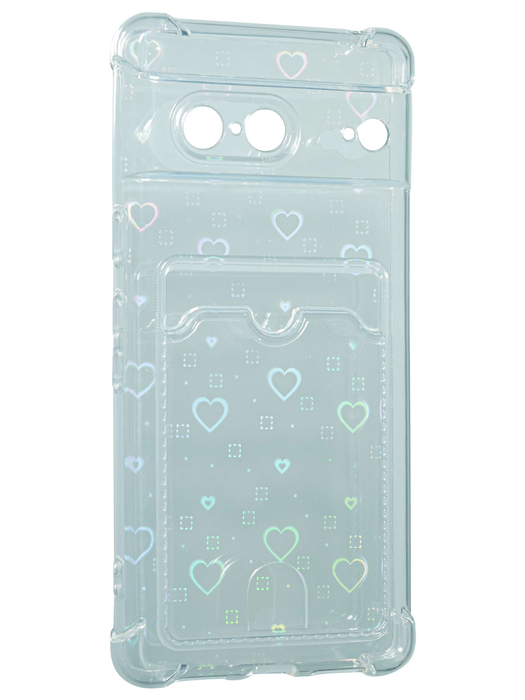 Силиконовый чехол White heart для Google Pixel 7 прозрачный с вырезом под карту