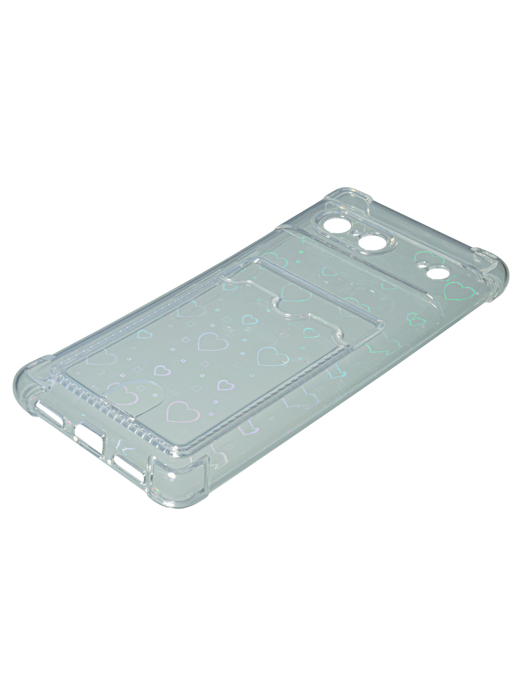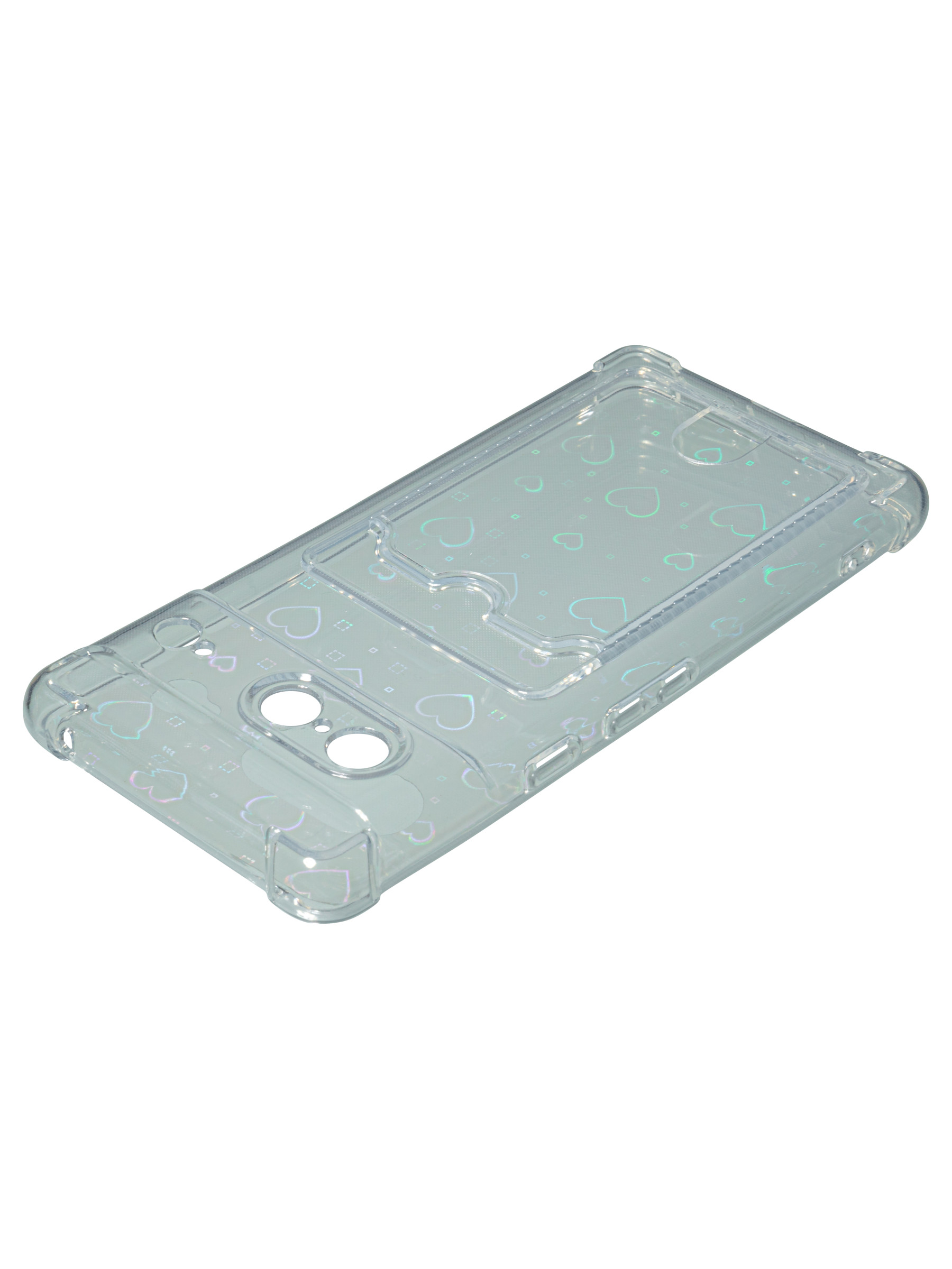 Противоударный силиконовый чехол со съемной мерцающей подложкой и кармашком. Рассчитан исключительно для хранения карт и визиток. Не предусмотрен для бесконтактной оплаты. Все вырезы идеально подогнаны.Серия White heart.