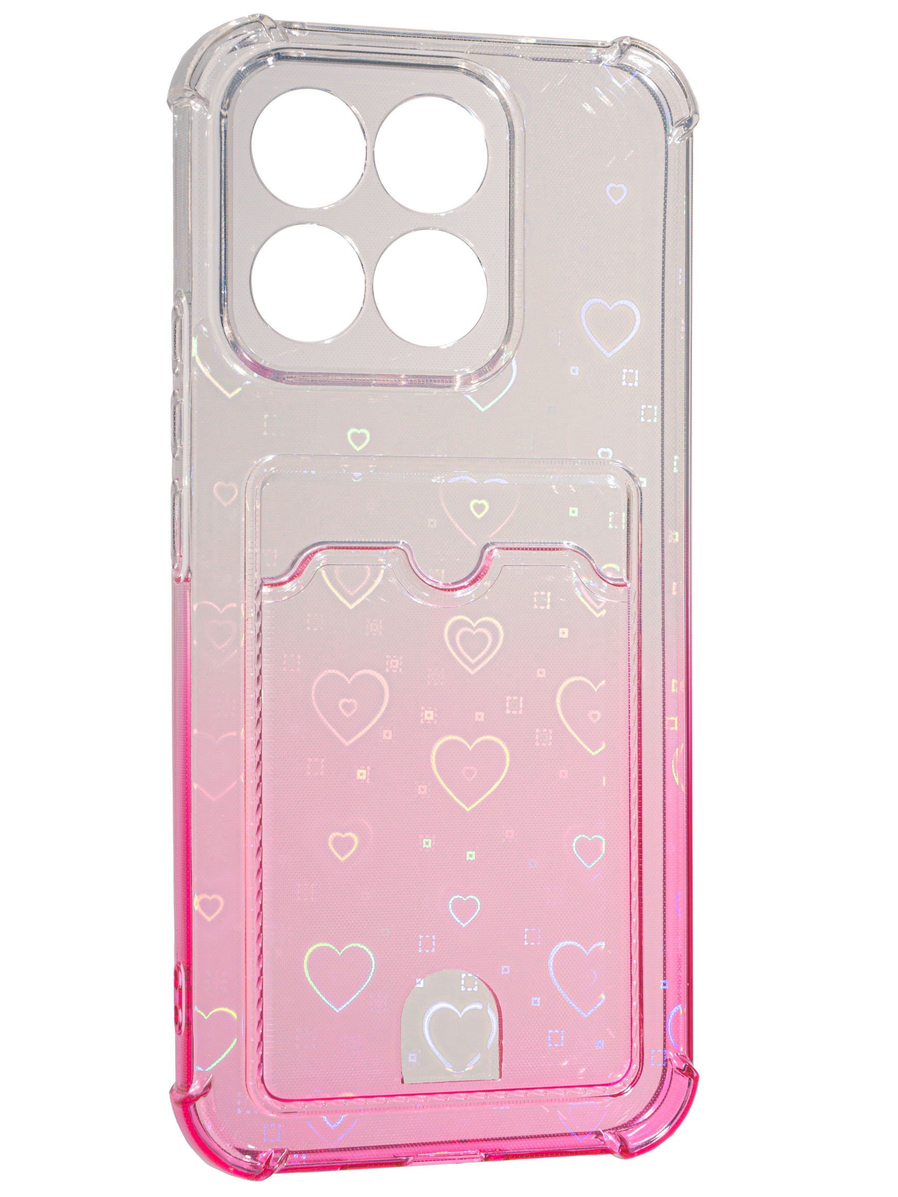 Силиконовый чехол White heart для Honor X8c розовый градиент c вырезом под карту