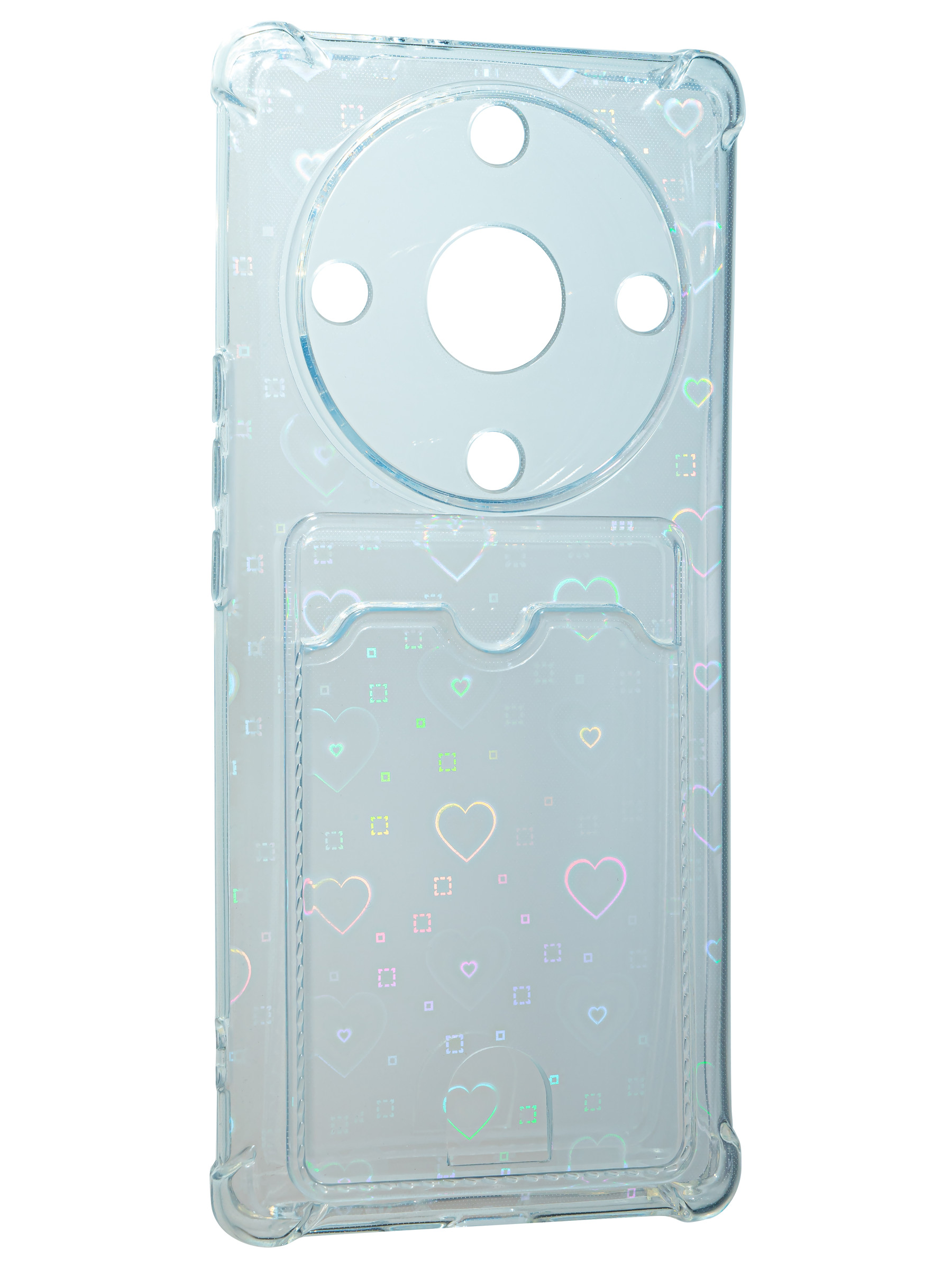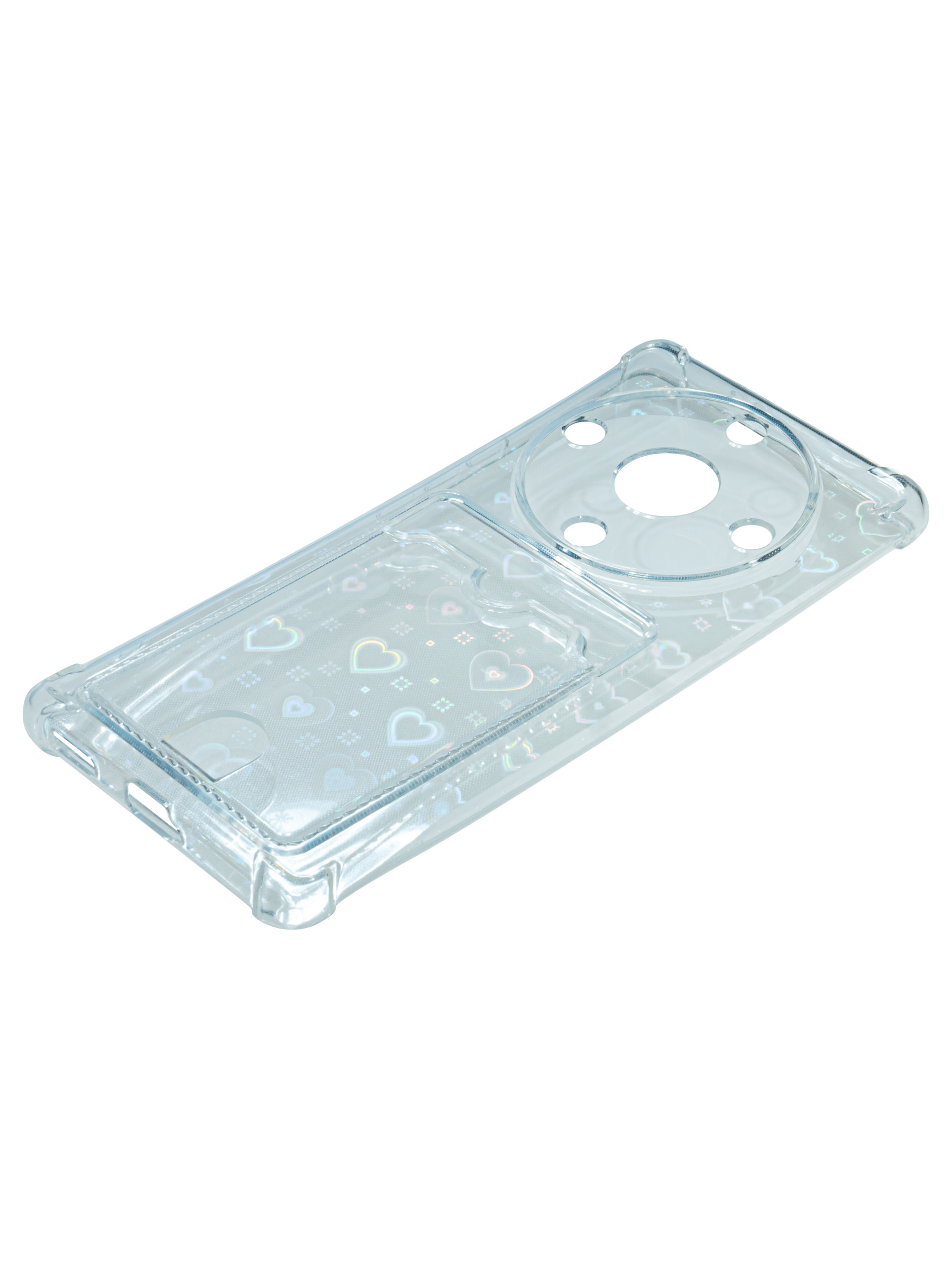 Противоударный силиконовый чехол со съемной мерцающей подложкой и кармашком. Рассчитан исключительно для хранения карт и визиток. Не предусмотрен для бесконтактной оплаты. Все вырезы идеально подогнаны.Серия White heart.