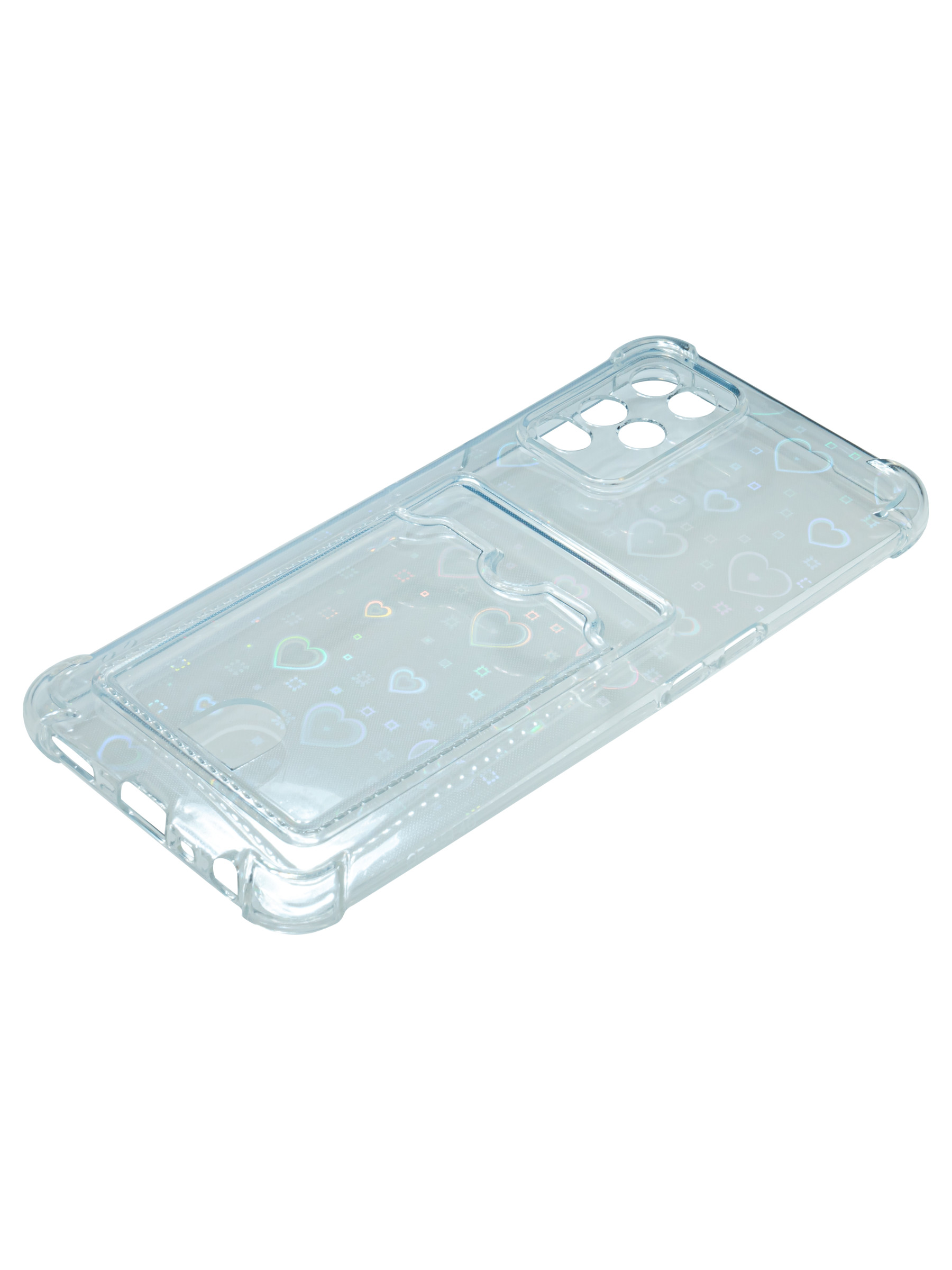 Противоударный силиконовый чехол со съемной мерцающей подложкой и кармашком. Рассчитан исключительно для хранения карт и визиток. Не предусмотрен для бесконтактной оплаты. Все вырезы идеально подогнаны.Серия White heart.