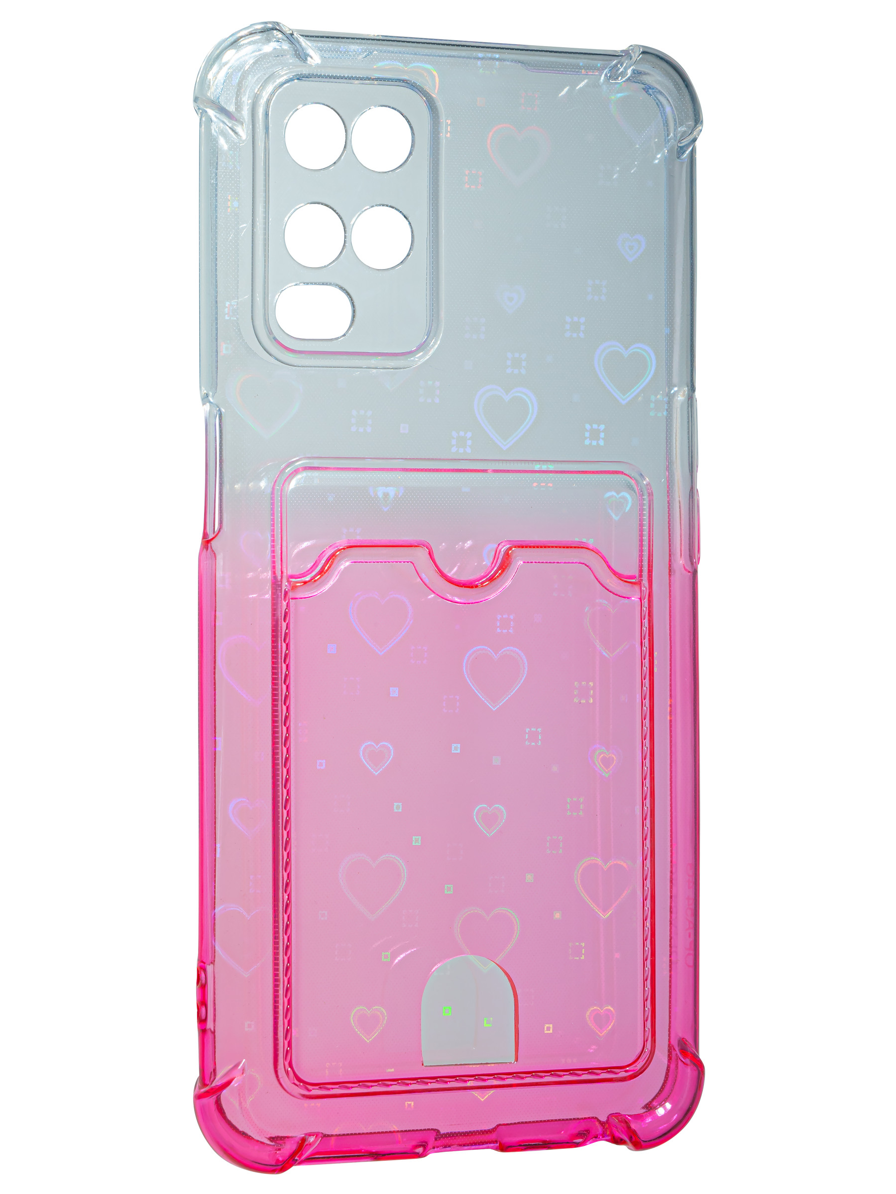 Силиконовый чехол White heart для Oppo A54 розовый градиент c вырезом под карту