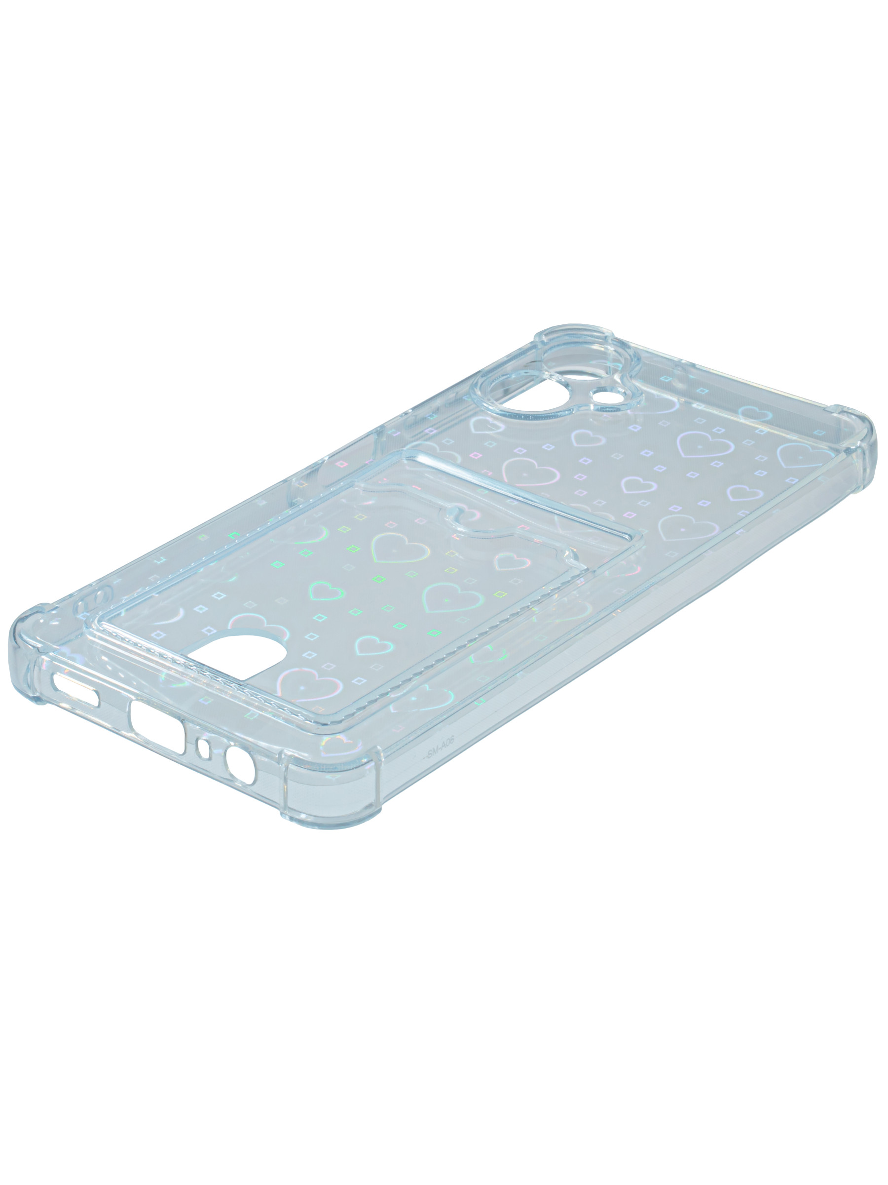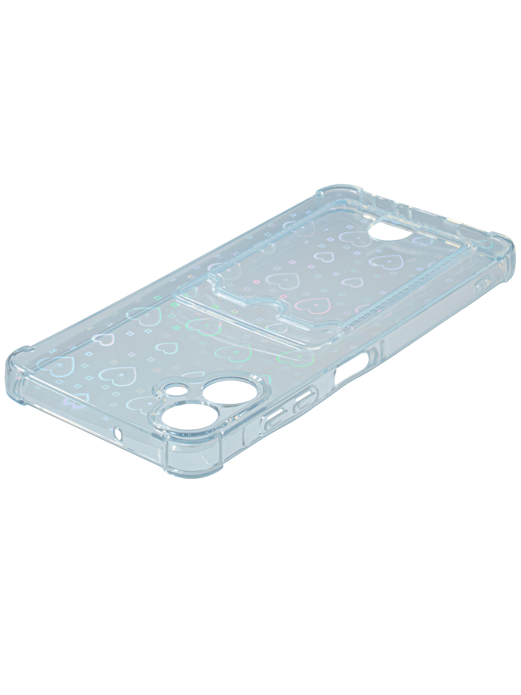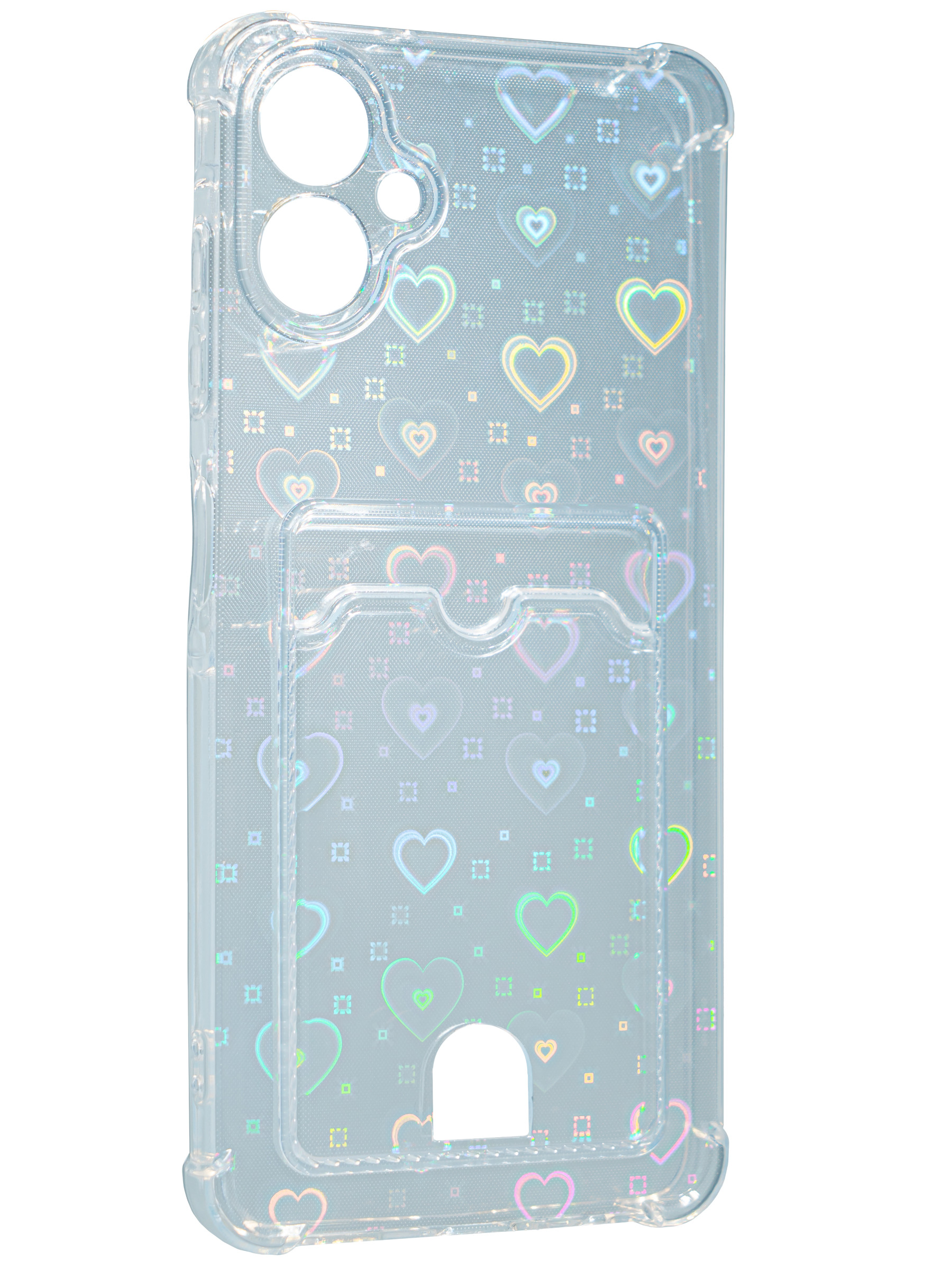 Противоударный силиконовый чехол со съемной мерцающей подложкой и кармашком. Рассчитан исключительно для хранения карт и визиток. Не предусмотрен для бесконтактной оплаты. Все вырезы идеально подогнаны.Серия White heart.