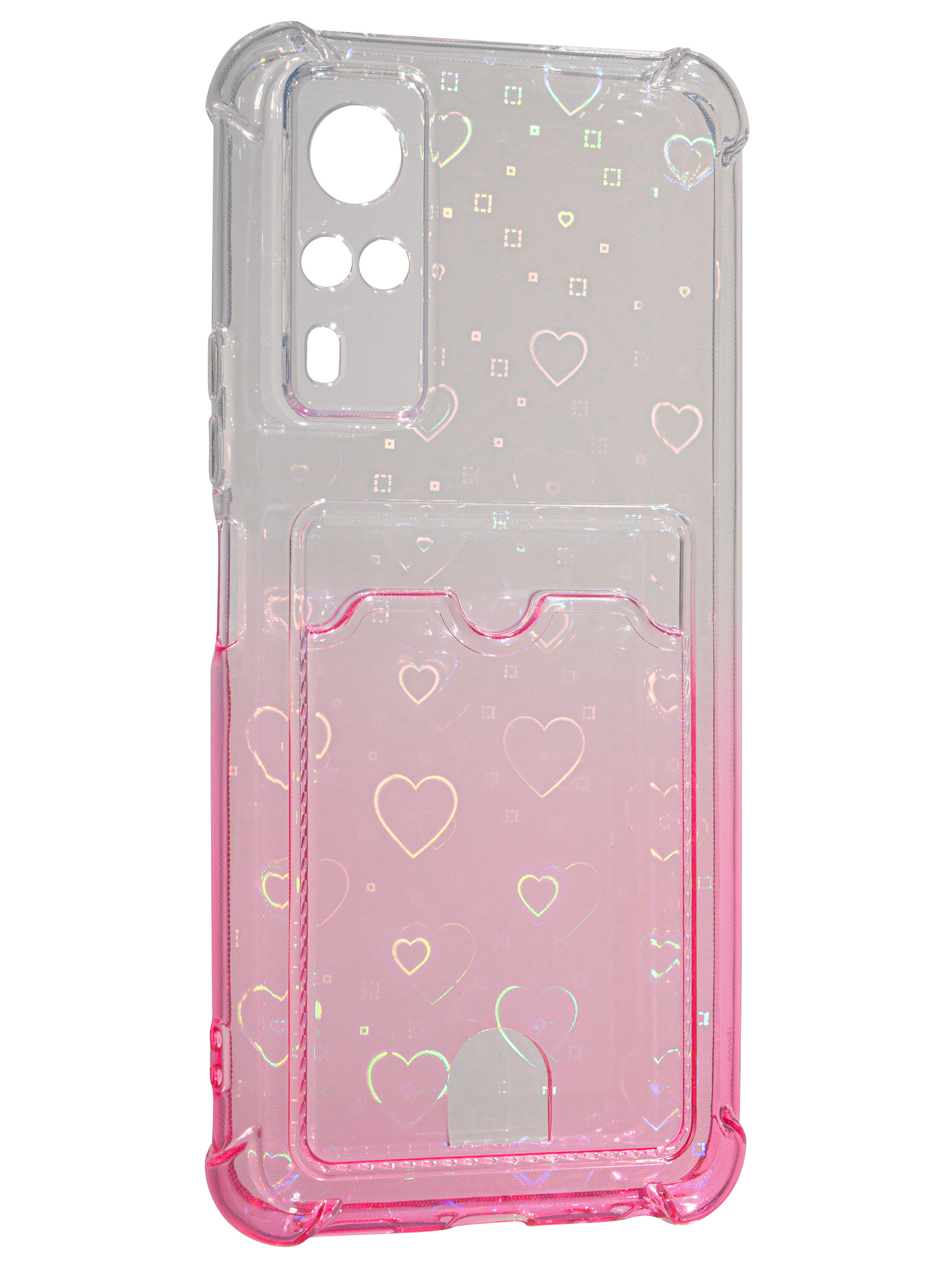 Силиконовый чехол White heart для Vivo Y31 2021 / Y53s розовый градиент c вырезом под карту