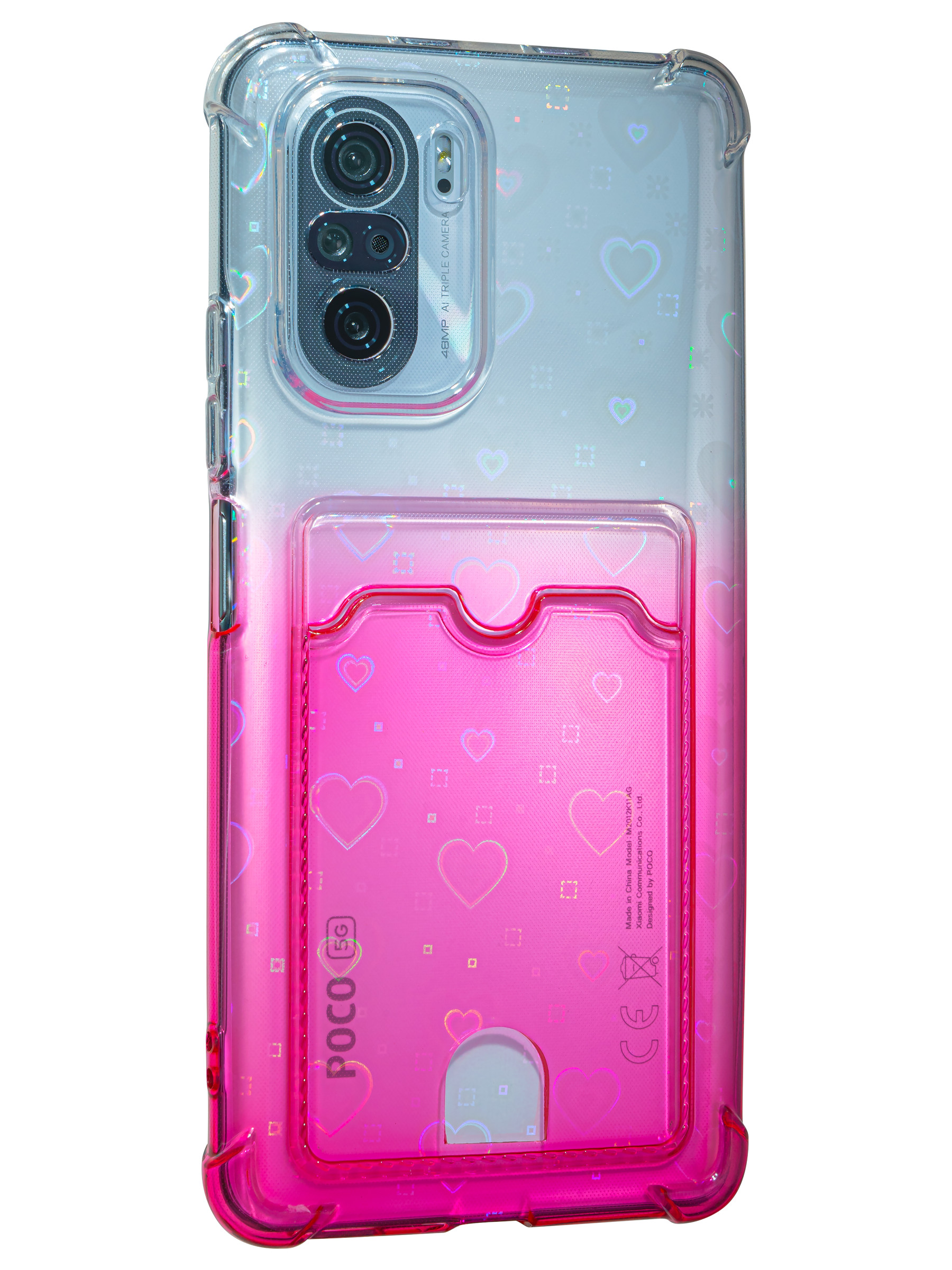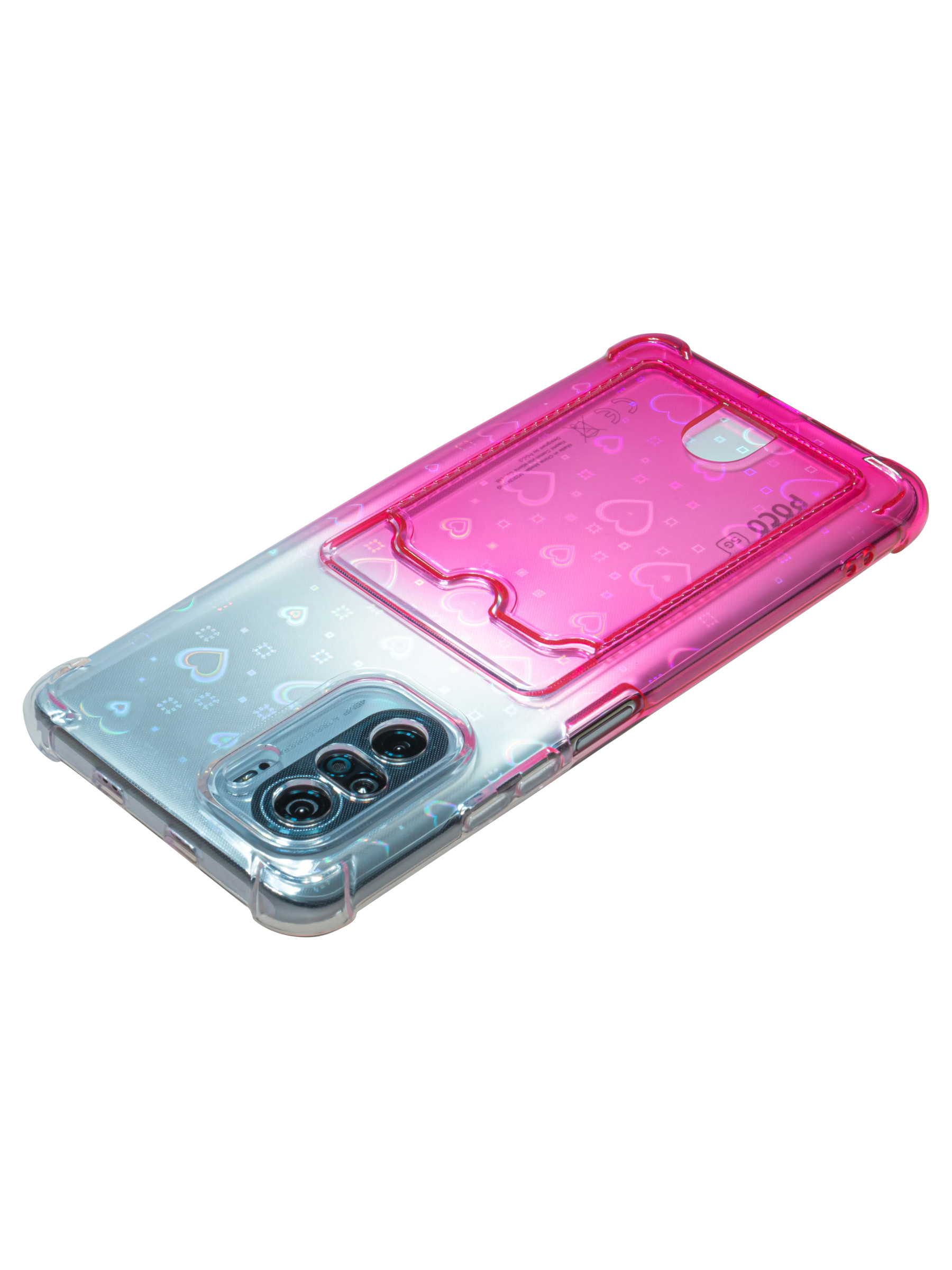 Силиконовый чехол White heart для Xiaomi Poco F3 / Mi 11i розовый градиент c вырезом под карту
