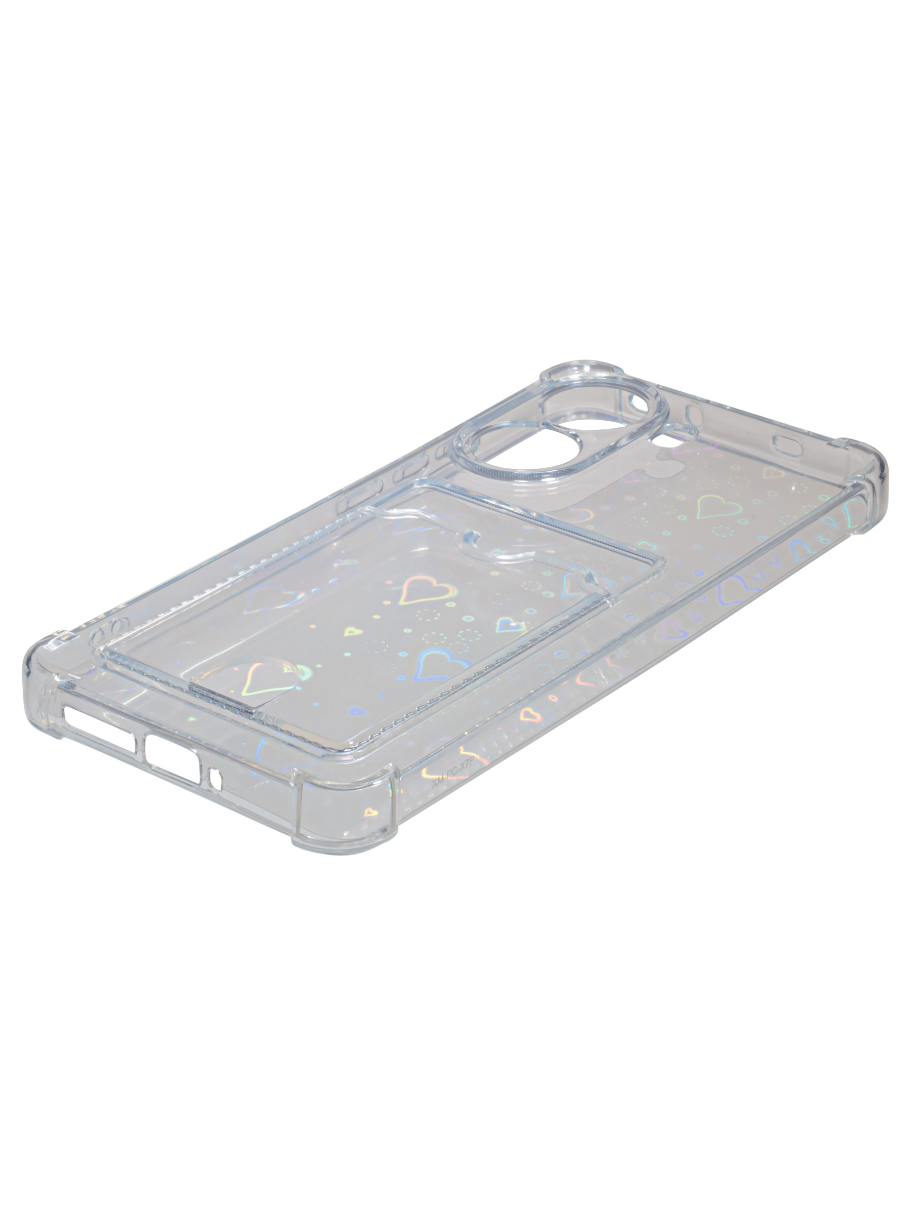 Противоударный силиконовый чехол со съемной мерцающей подложкой и кармашком. Рассчитан исключительно для хранения карт и визиток. Не предусмотрен для бесконтактной оплаты. Все вырезы идеально подогнаны.Серия White heart.