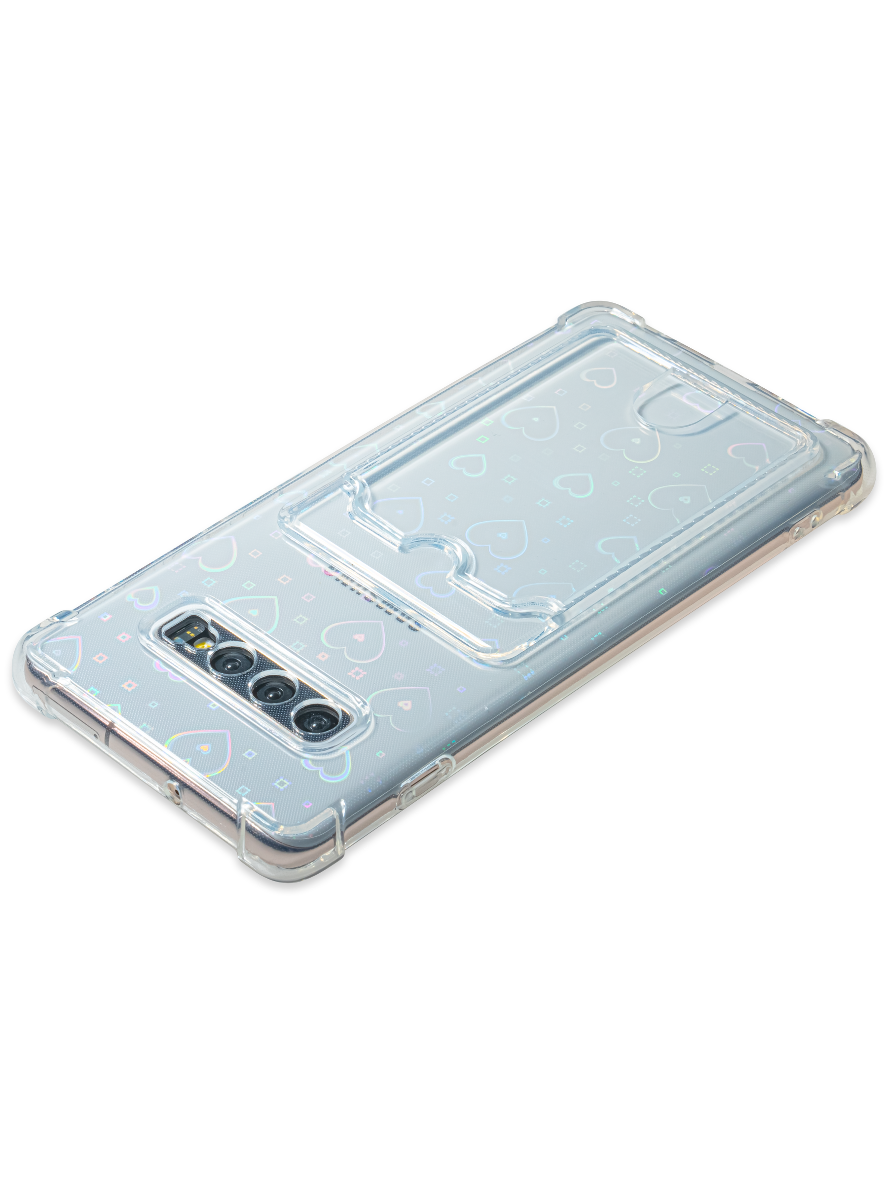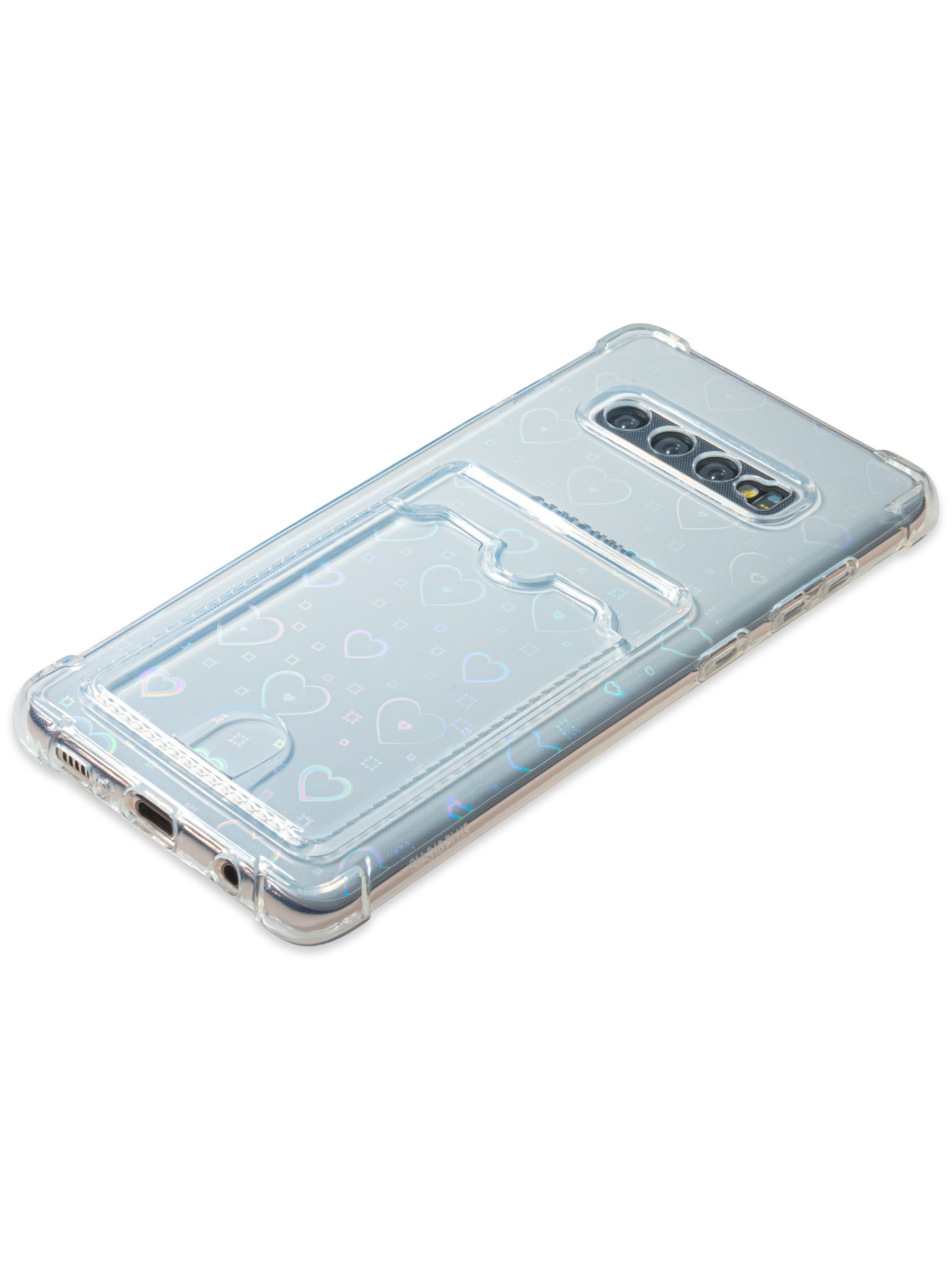 Силиконовый чехол White heart для Samsung Galaxy S10+ G975 прозрачный с вырезом под карту