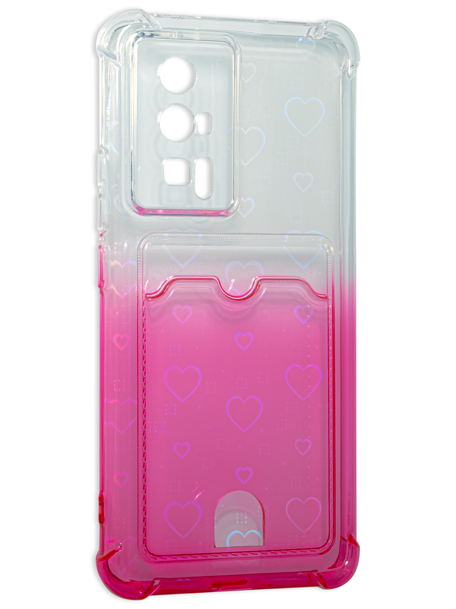 Силиконовый чехол White heart для Xiaomi Poco F5 Pro розовый градиент c вырезом под карту