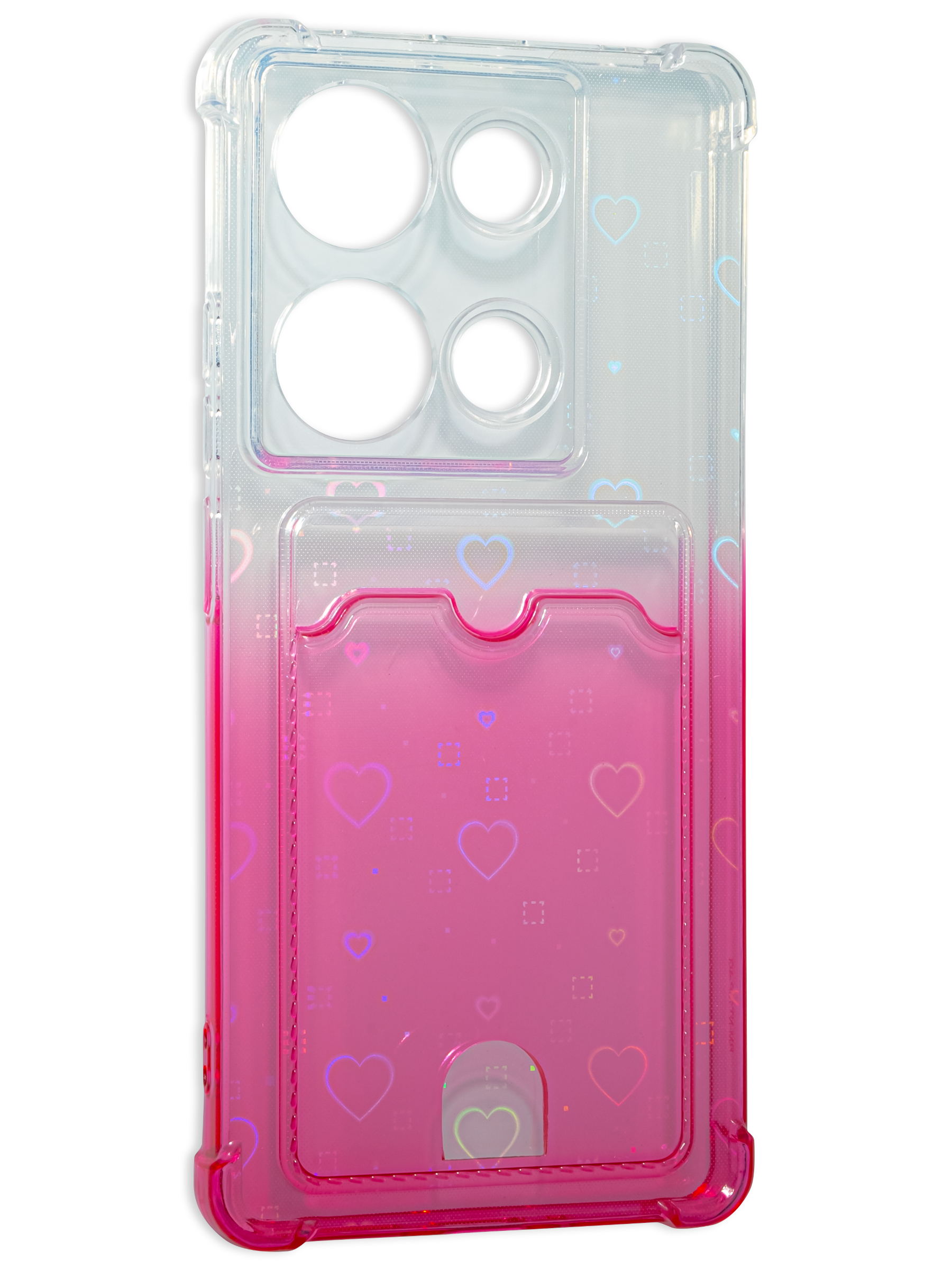 Силиконовый чехол White heart для Xiaomi Poco M6 Pro 4G / Redmi Note 13 Pro 4G розовый градиент c вырезом под карту