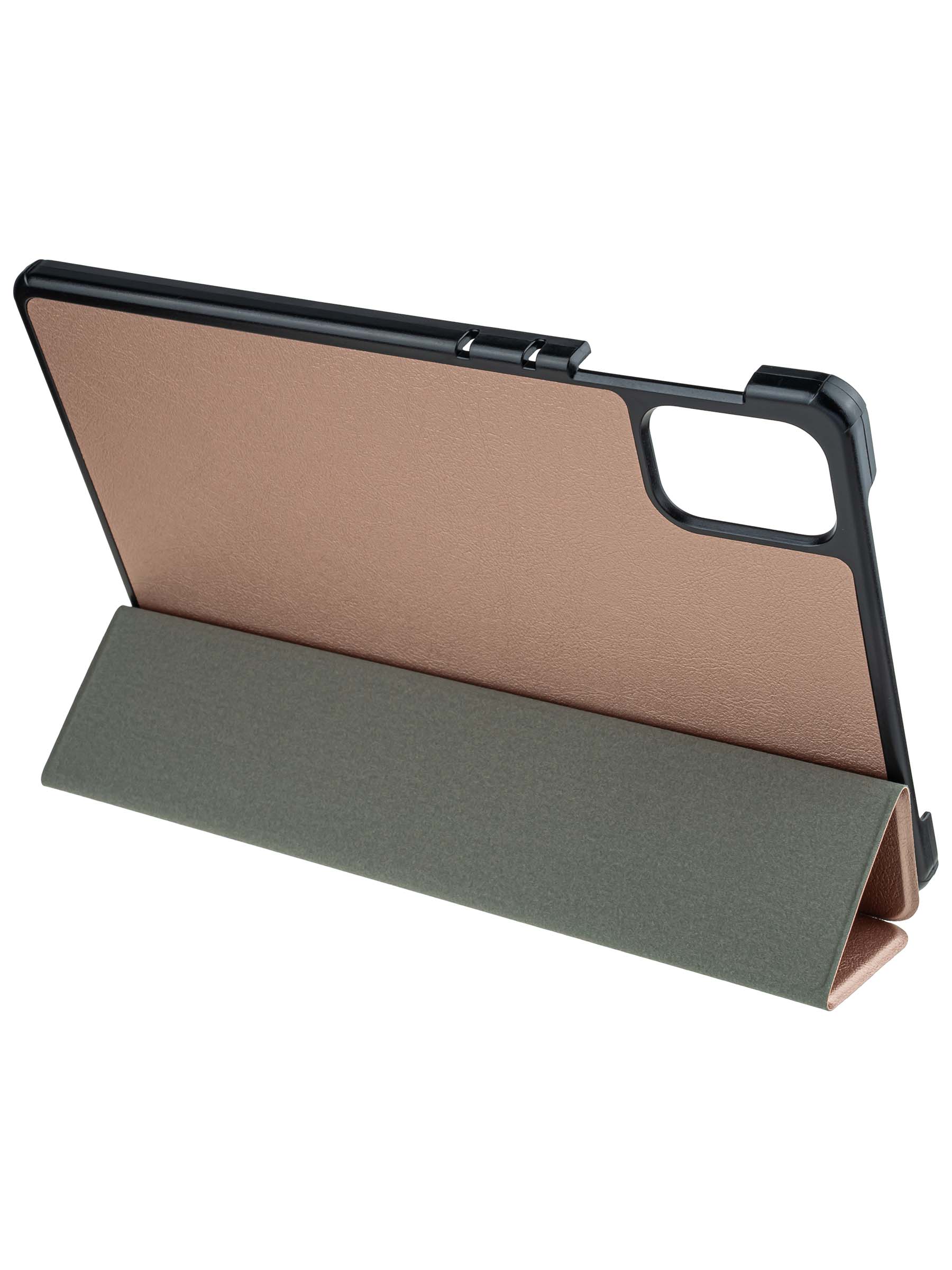 Чехол-книжка изготовлен из высококачественной экологической кожи, а основание из прочного пластика, что приводит к стильному и прочному дизайну. Крышка чехла закрывается на магнит и может использоваться как удобная подставка. При закрытии крышки планшет автоматически переводится в спящий режим, что позволяет экономить его заряд. Этот чехол принадлежит серии Folder и предназначен для защиты планшета. Благодаря своему кожаному покрытию, он выглядит стильным и представляет собой идеальный выбор для тех, кто ищет надежную защиту и функциональность. Кроме того, чехол с подставкой дополнительно обеспечивает удобство использования вашего устройства.