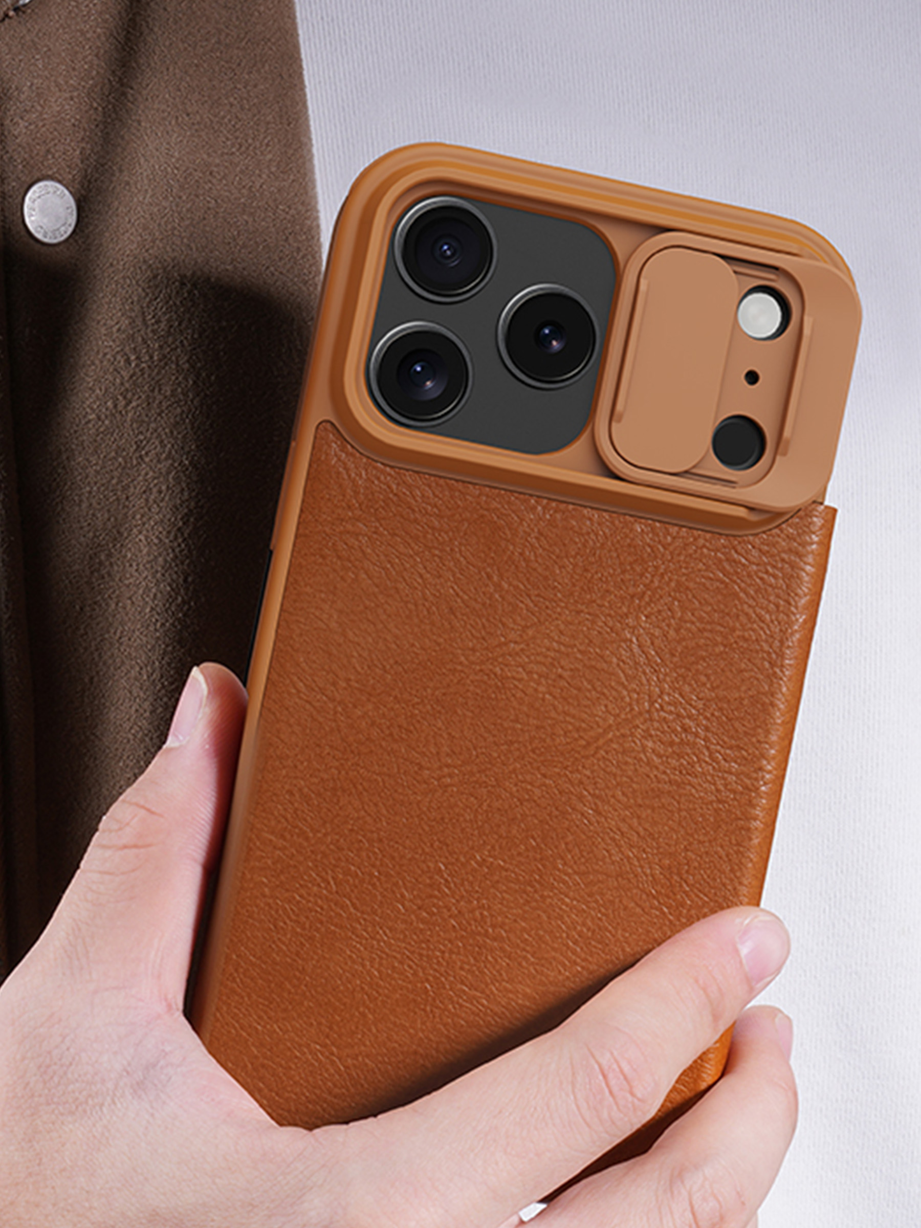 Чехол-книжка Nillkin Qin Case Pro для iPhone 17 Pro Max коричневая