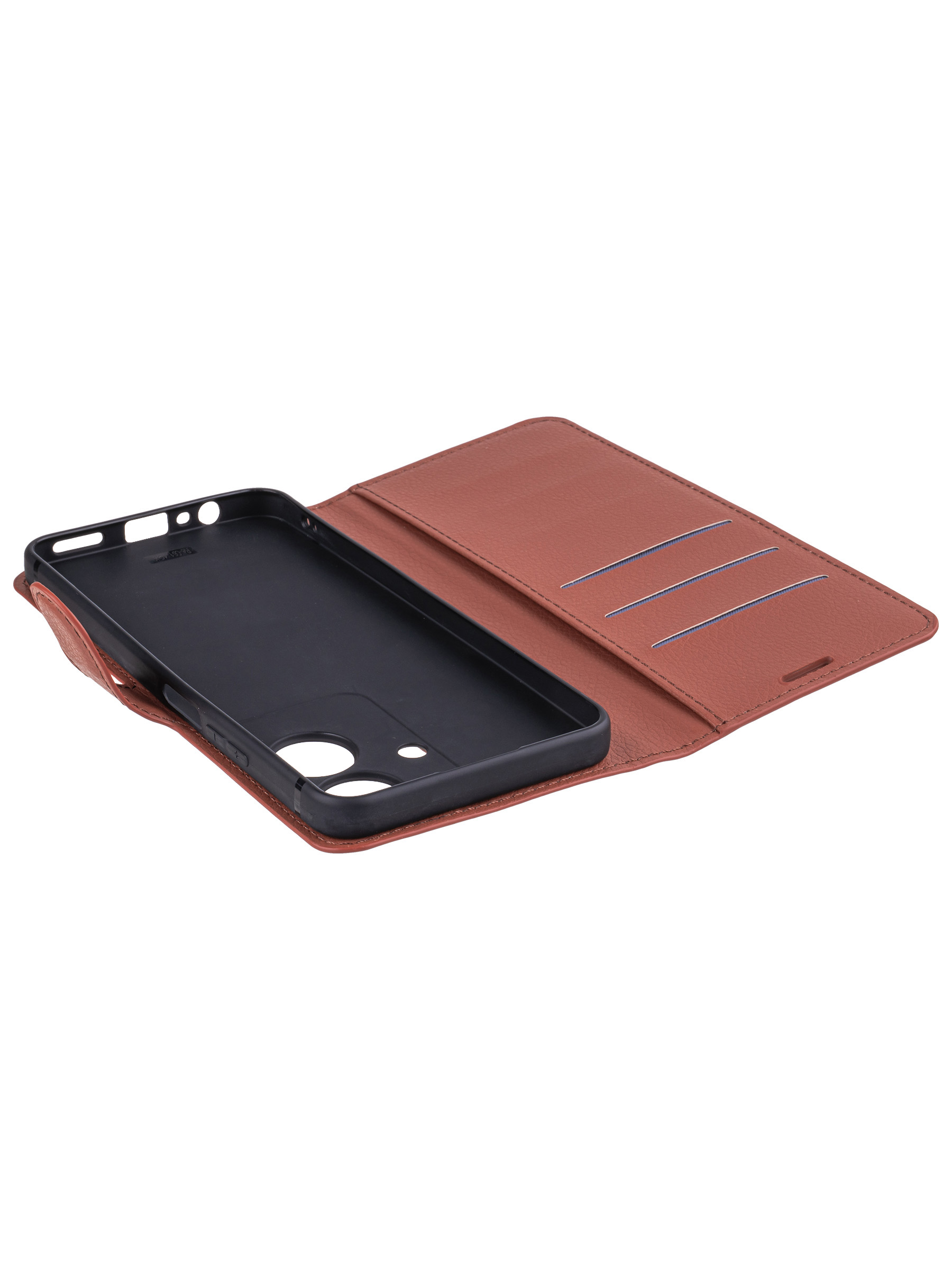 Чехол с отделом для карты из искусственной кожи. Основание чехла выполнено из силикона и полностью соответствует оригинальным вырезам и выступам вашей модели телефона, благодаря чему, он плотно сидит внутри, а доступ к разъемам и кнопкам ничем не затруднен. Чехол легко надевается и снимается. Магнитная застежка позволяет удобно и быстро закрывать и открывать крышку, сохраняя экран вашего смартфона в состоянии, которое не потребует частого очищения и обслуживания. Прорези под разговорный динамик позволяют пользователю не открывать крышку, при разговоре по телефону - это удобно и экономит время. Одним из плюсов кожаных чехлов является их прочность. Еще одним преимуществом является наличие защиты экрана, которая позволяет не беспокоиться о том, что ваше устройство может быть повреждено, когда оно находится в сумке или портфеле. Эти чехлы обычно используются в течение долгого времени без заметных признаков износа. К тому же, чехол с отделом для карты и карманом для визитных карточек - это прекрасный способ улучшить организованность вашей жизни, несмотря на всю суету и особенности современного ритма жизни. Защитный чехол полностью закрывает смартфон со всех сторон, оберегая его от падений, царапин и пыли. Кроме того, чехол книжка имеет удобную подставку, которая позволяет использовать устройство в любом удобном положении. Это особенно помогает во время чтения электронных книг или просмотра видео, когда необходимо поддерживать устройство в определенном положении, чтобы избежать усталости и дискомфорта. В зависимости от личных предпочтений, чехол-книжка представлен в различных цветовых вариациях и стилях. Вы можете выбрать лаконичный классический дизайн, а можете сделать акцент на яркость и оригинальность.
