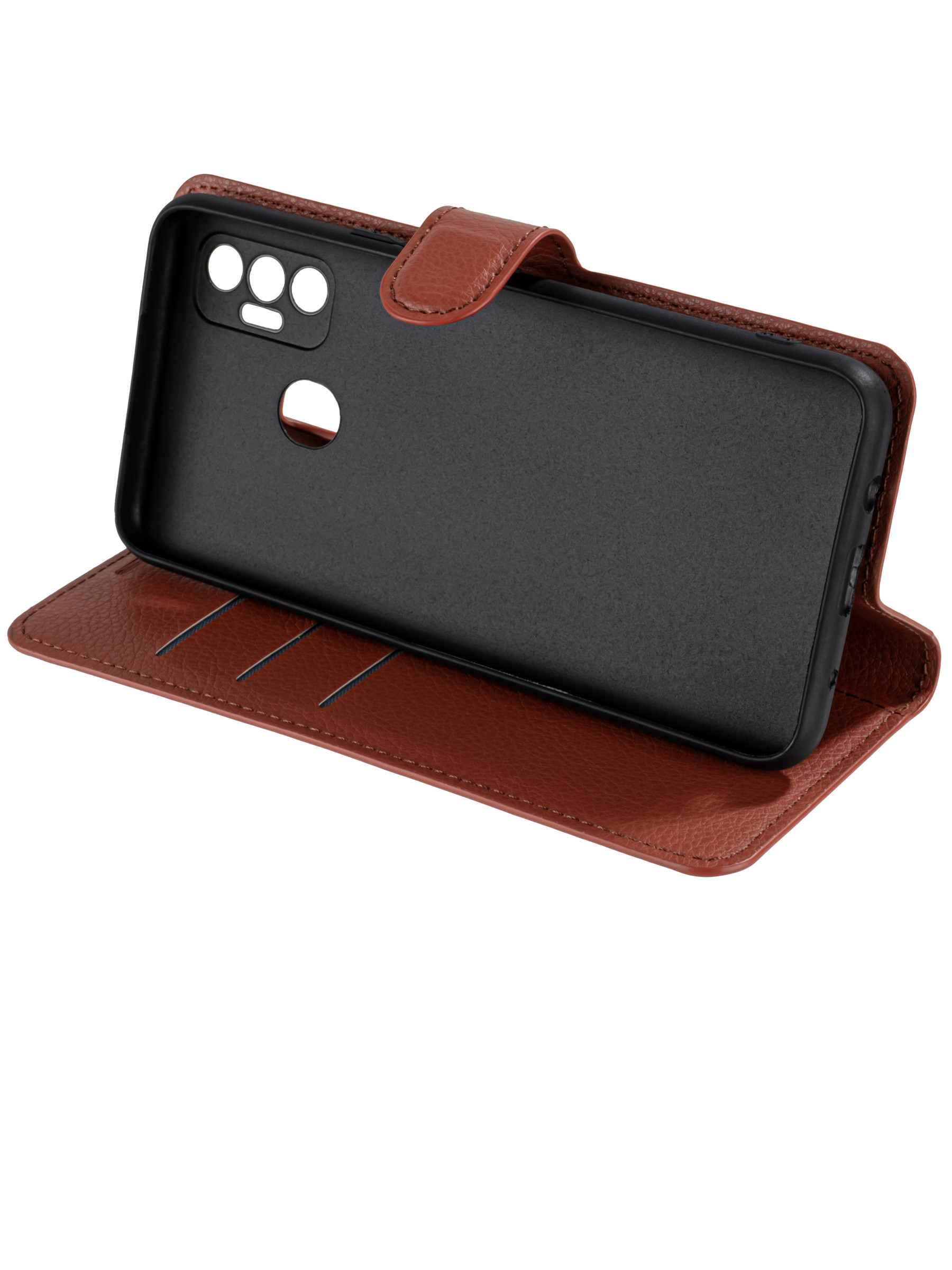 Чехол-книжка PU для Tecno Spark 7 коричневая с магнитом