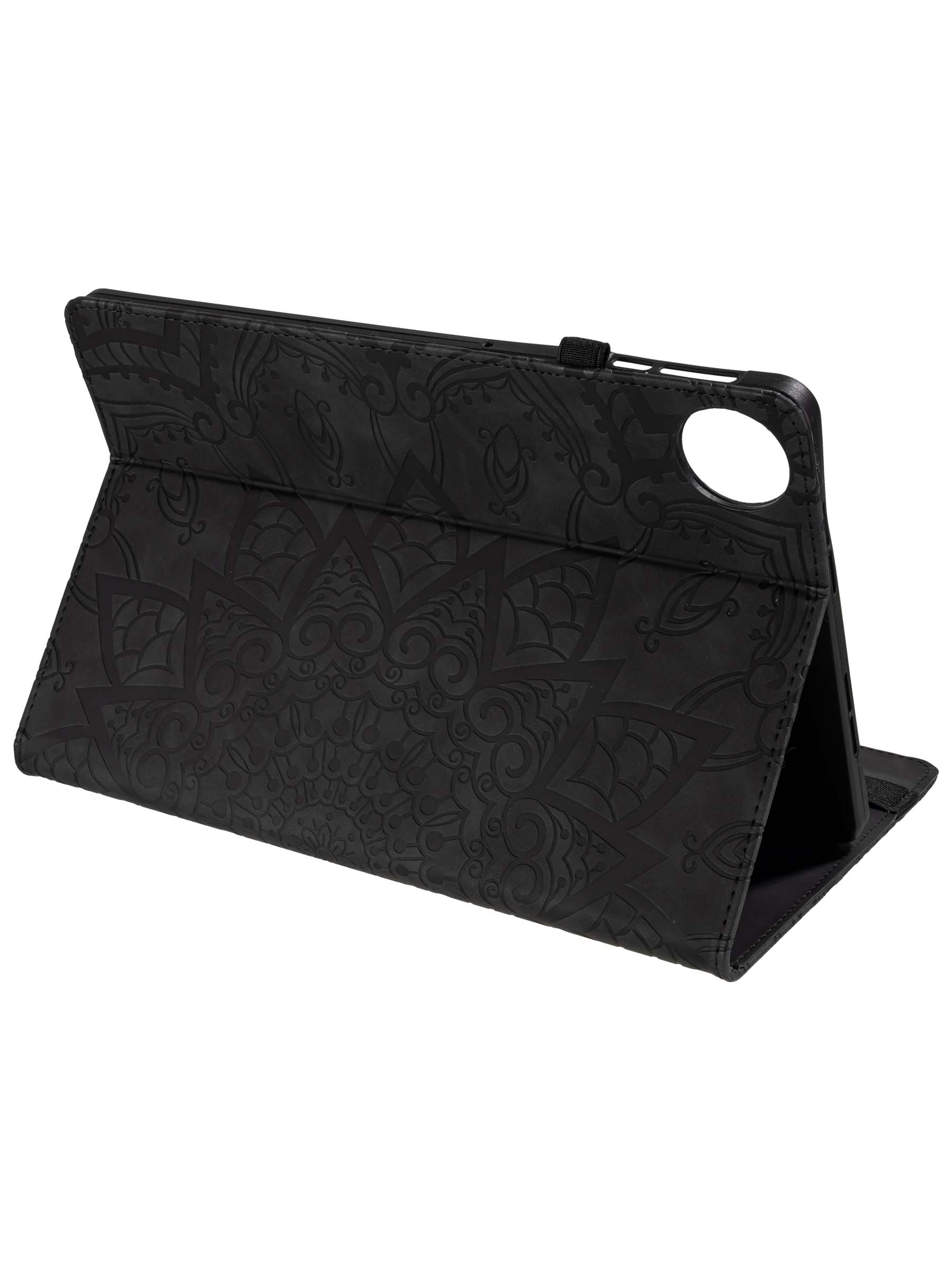 Кожаный чехол-книжка из искусственной кожи представляет собой надежную и стильную защиту для вашего планшета. Основание чехла выполнено из прочного силикона, а передняя крышка закрывается и открывается с помощью резинки. Кроме того, этот чехол-книжка трансформируется в удобную подставку для вашего устройства, а отделение для карт и визиток помогает держать всё в одном месте и сохранить порядок. Чехол также оснащен держателем для стилуса, который позволяет удобно и быстро доставать его, когда он вам необходим. Дизайн чехла дополнен интересным принтом, который делает его еще более привлекательным. Кроме того, этот чехол обеспечивает полную защиту экрана вашего устройства, что позволяет избежать повреждений и царапин. Если вы ищете красивый и функциональный чехол для своего планшета, то этот чехол с отделом для карты - идеальный выбор для вас.