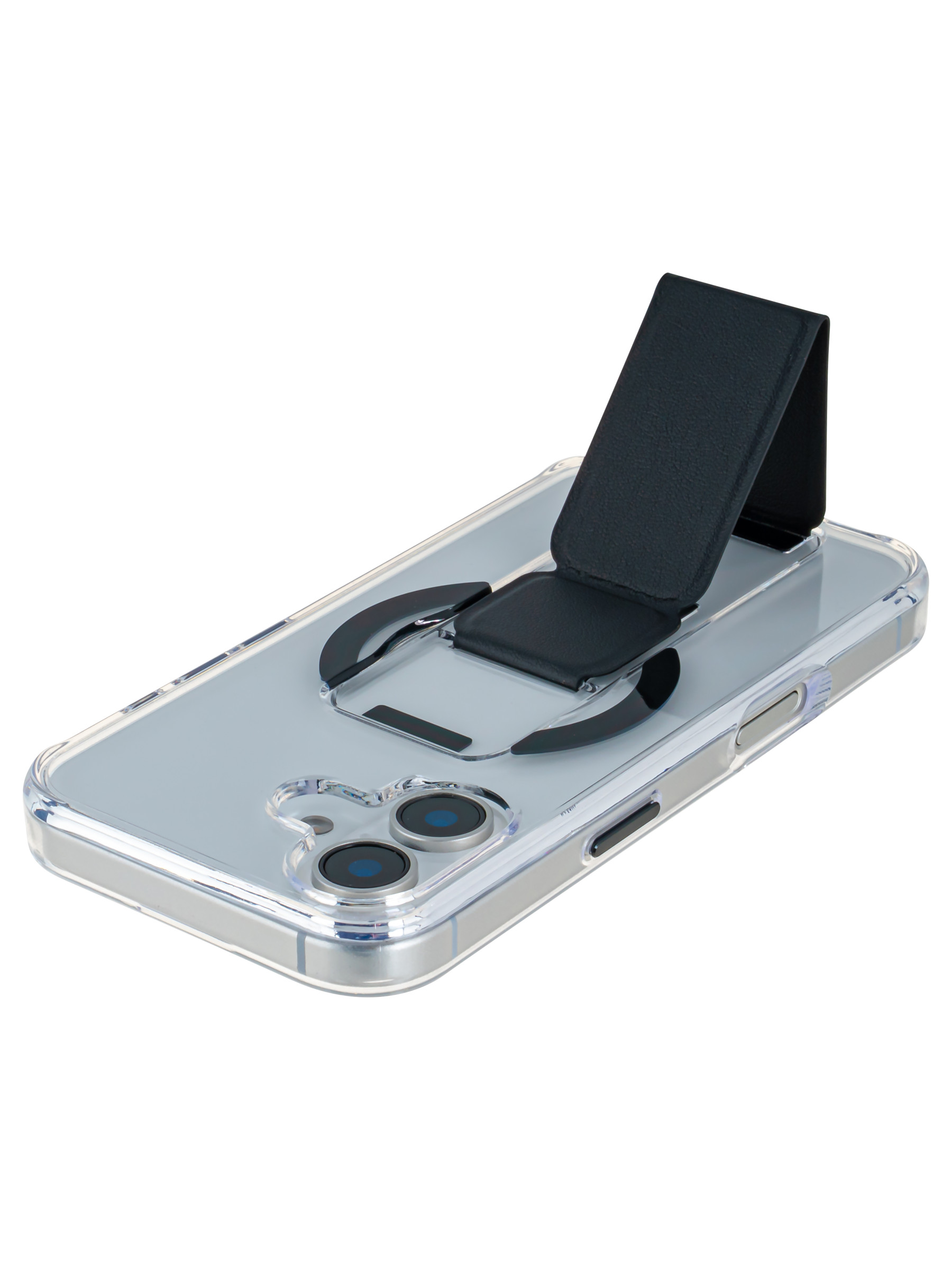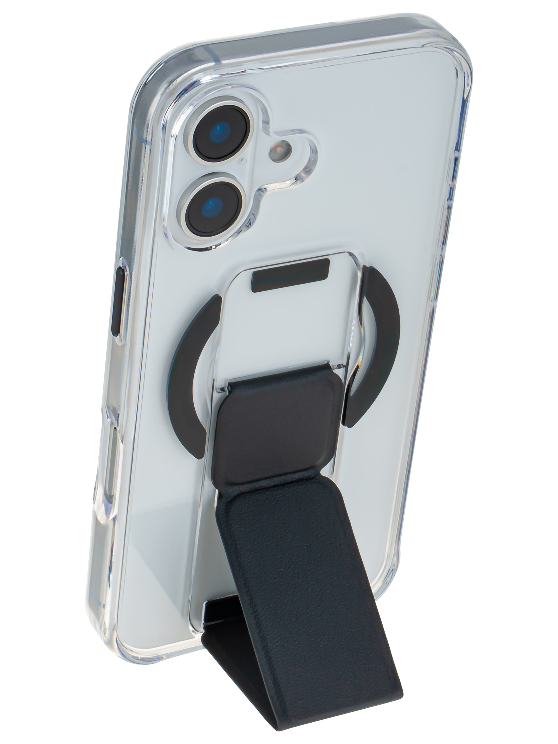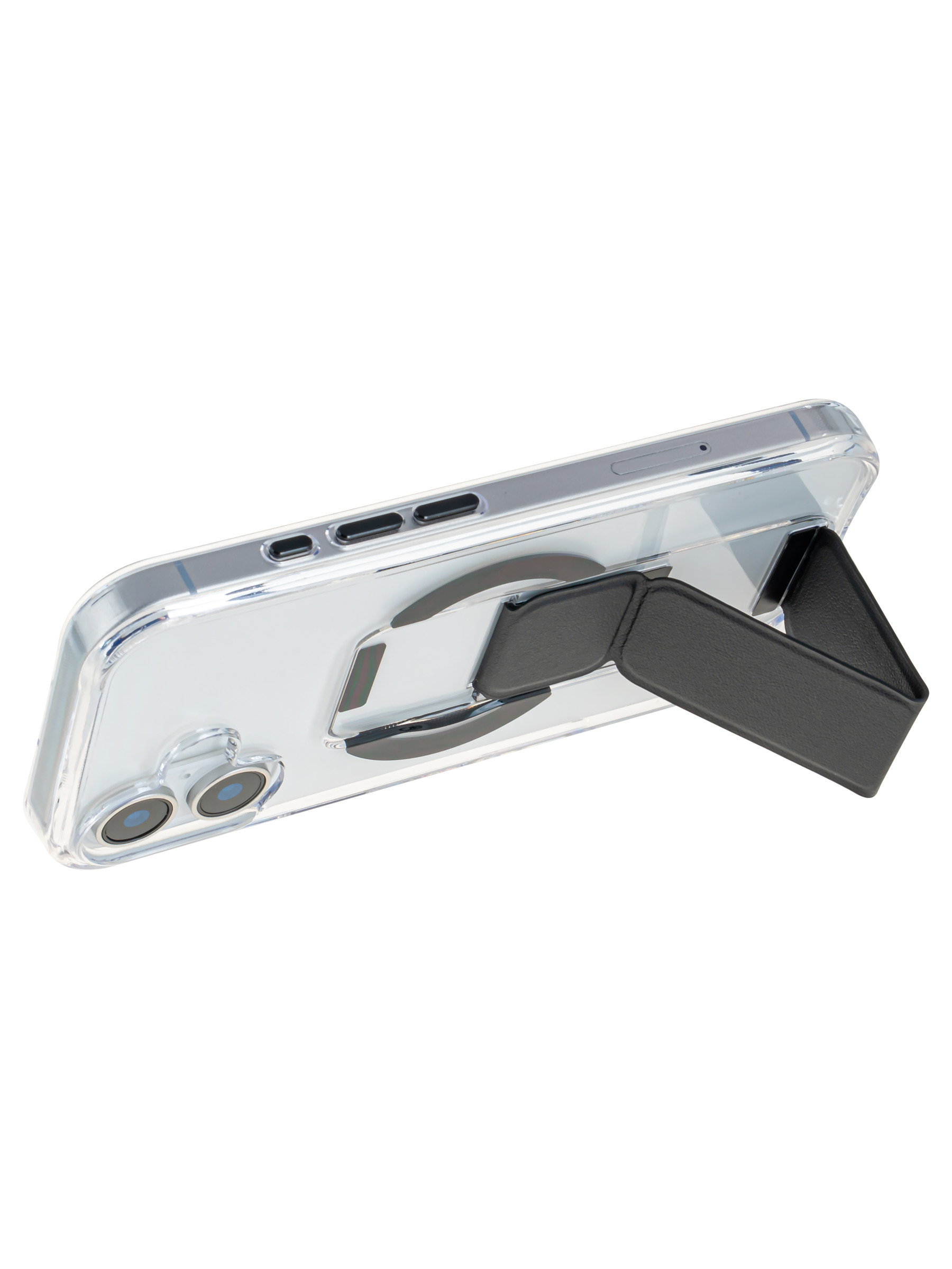 Пластиковый чехол Charge&Stand для iPhone 16 черный с подставкой для Magsafe