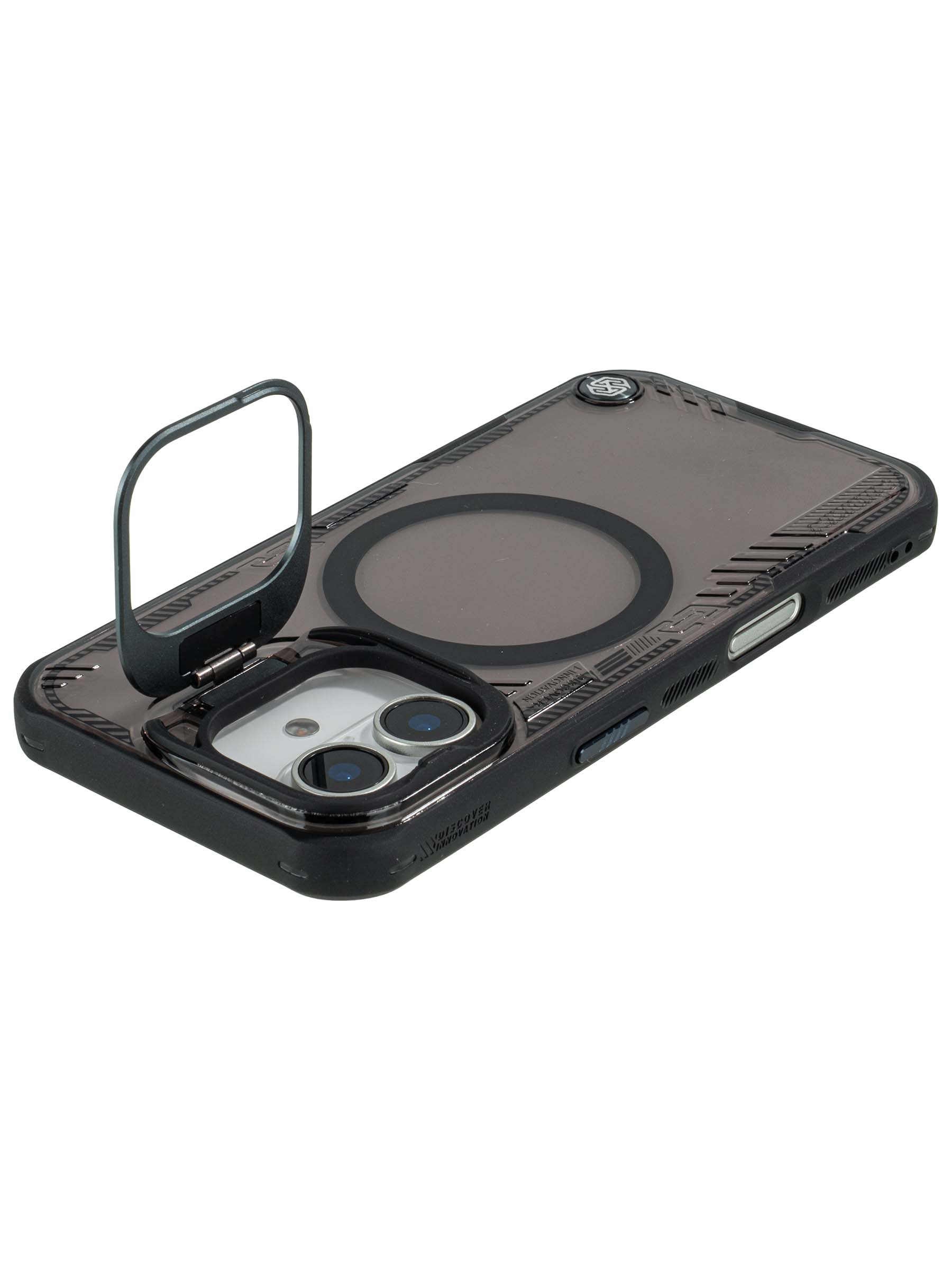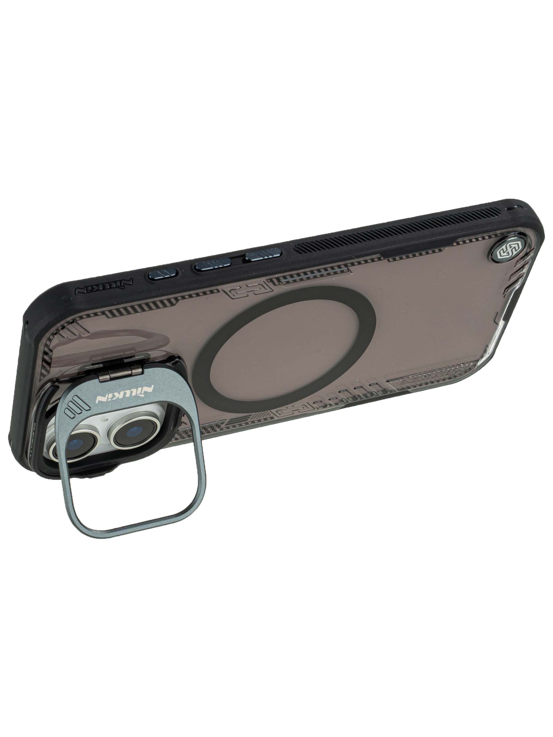 Прозрачный зеленый защитный чехол Nillkin из серии Iceblade Prop оснащен металлической откидной крышкой для камеры и поддерживает магнитную беспроводную зарядку MagSafe. Этот бампер отличается высокой коррозионной стойкостью, благодаря чему остается прозрачным и не желтеет со временем, что способствует его эстетической привлекательности. Элегантный и функциональный дизайн с плавными линиями подчеркивает стиль. Подставка-крышка для камеры из аэрокосмического алюминия в форме космической капсулы придает современный вид, защищает объектив и может использоваться как подставка для просмотра видео.