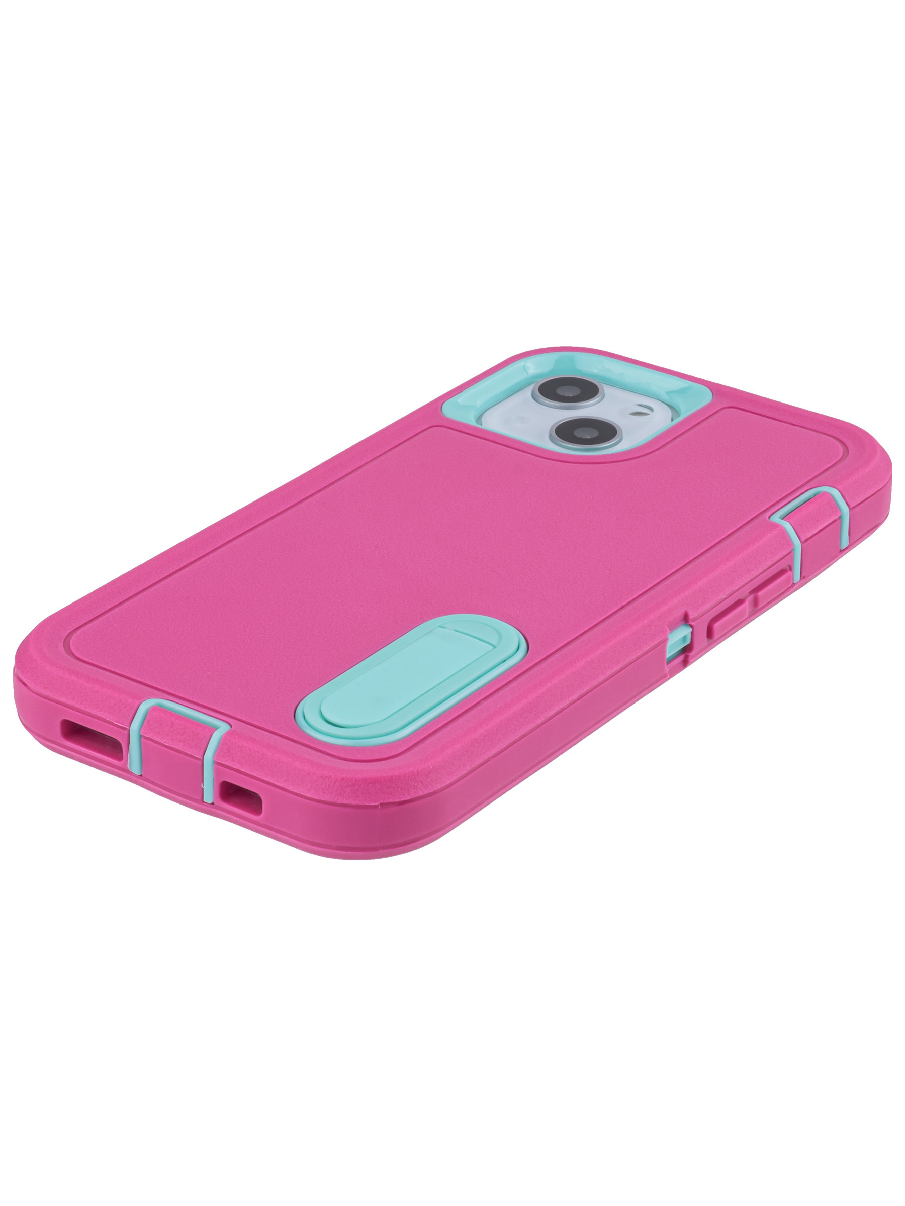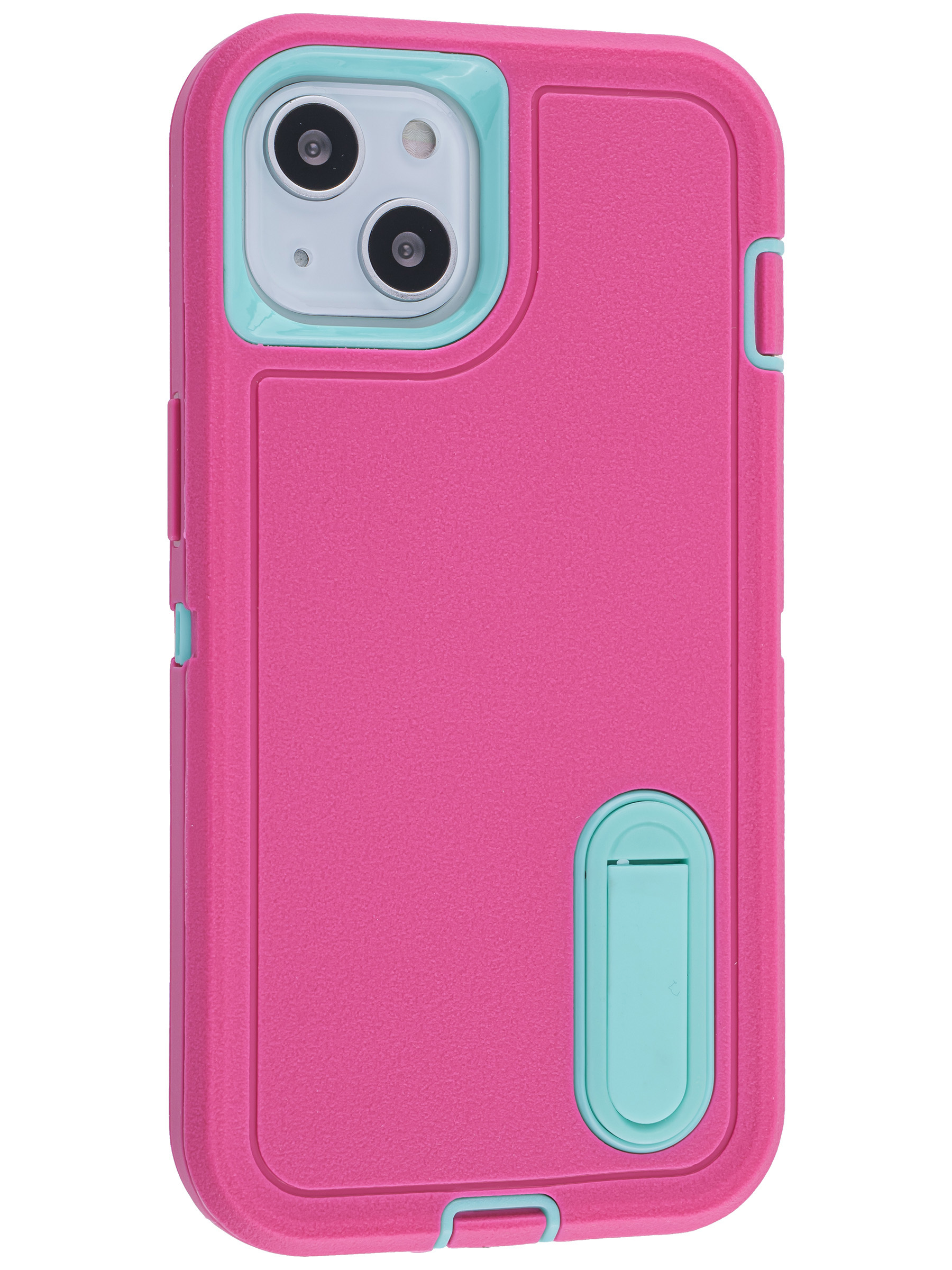 Пластиковый чехол Triple Defense для iPhone 13 с подставкой розово-голубой