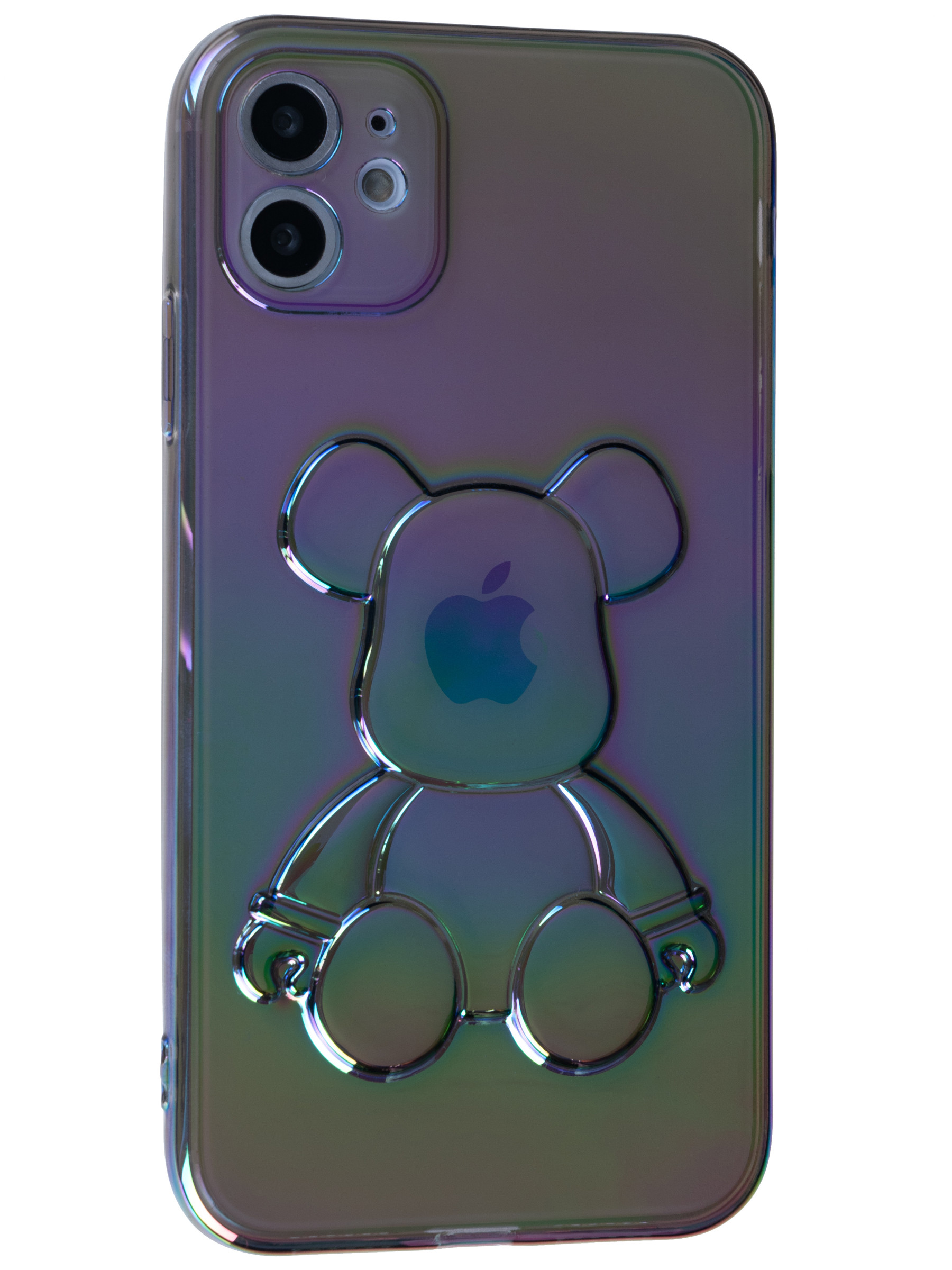 Силиконовый чехол 3D Bear для iPhone 11 серый перламутр