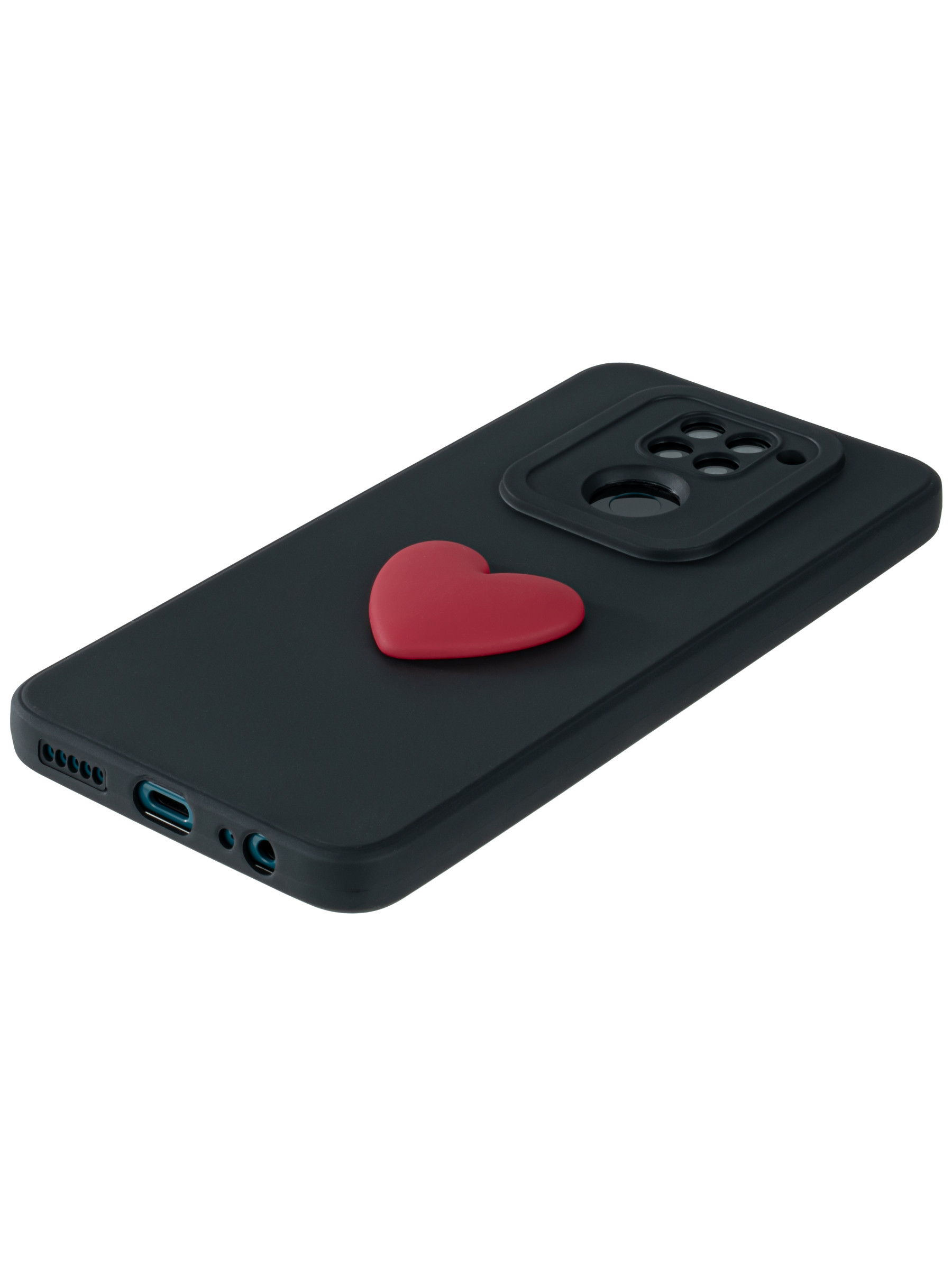 Силиконовый чехол 3D Сердце для Xiaomi Redmi Note 9 черный