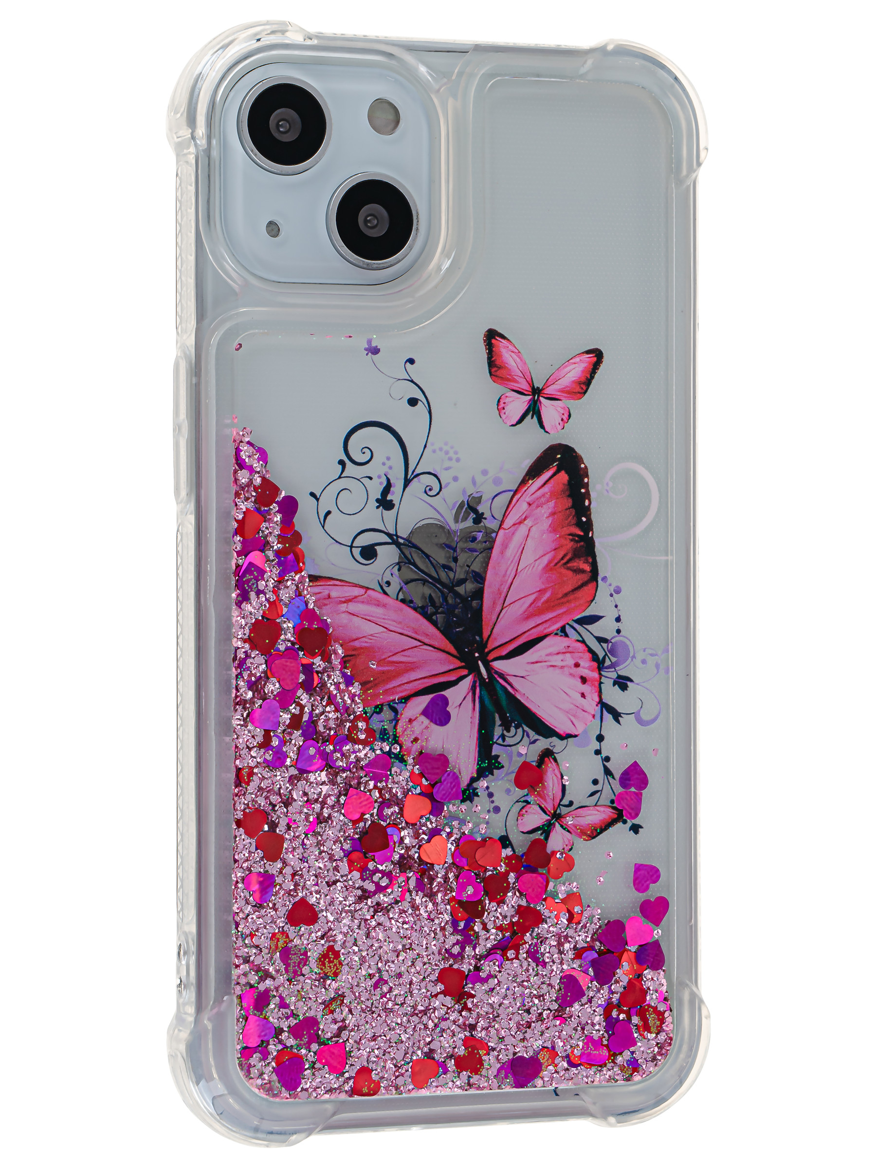 Силиконовый чехол Brilliant sand для iPhone 13 Бабочки красный песок