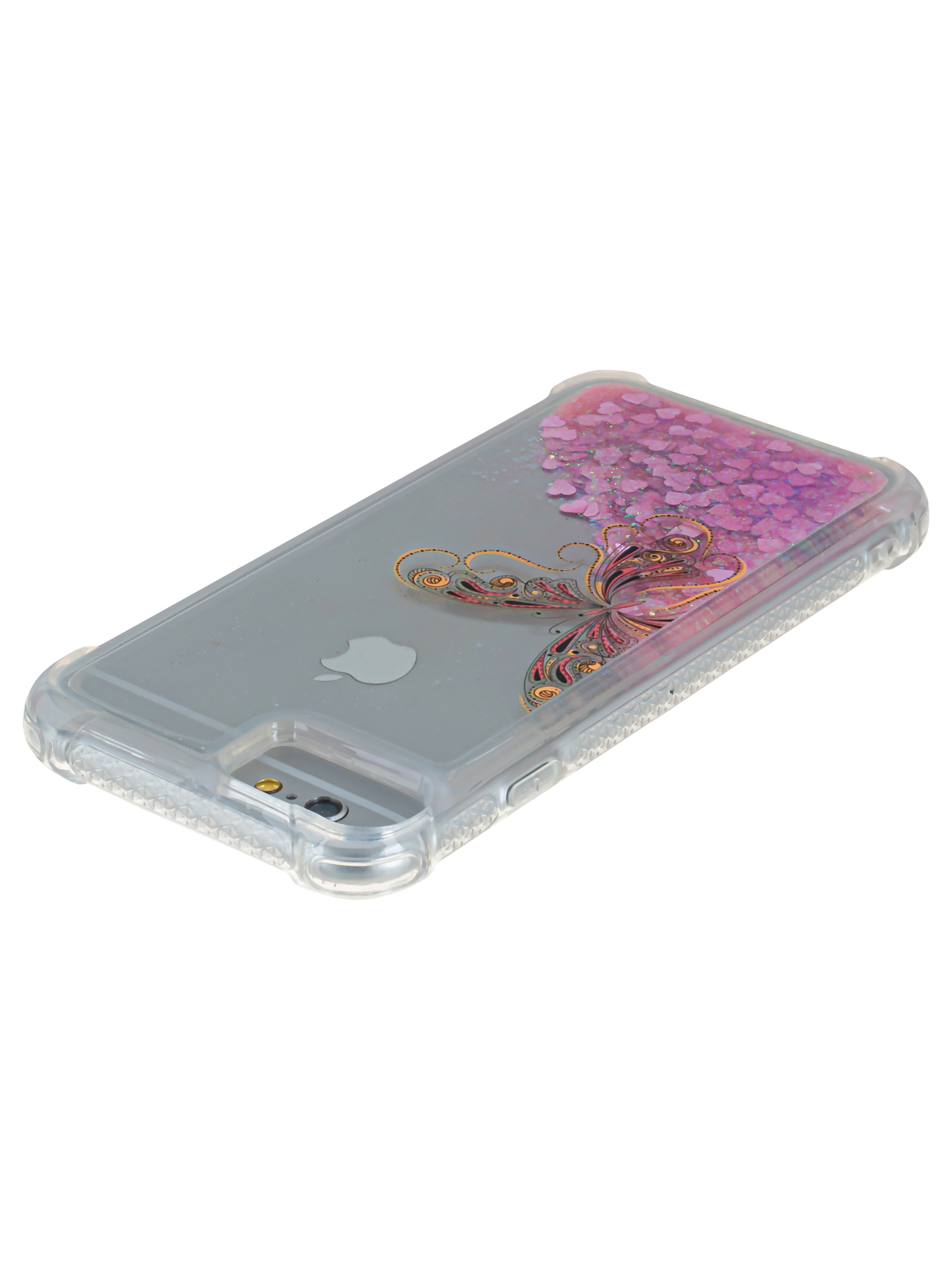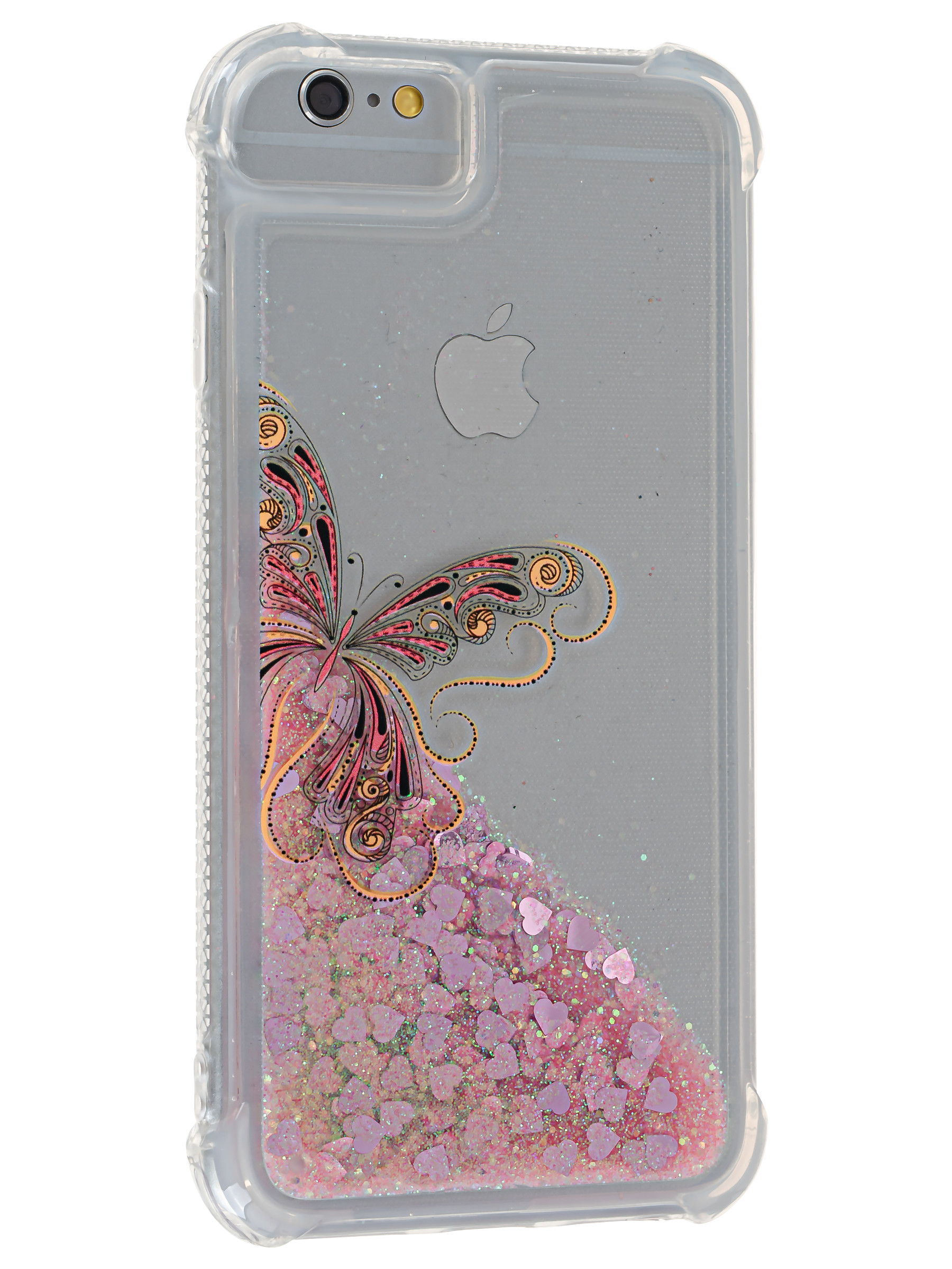 Силиконовый чехол Brilliant sand для iPhone 6, 6S Золотая бабочка розовые сердца