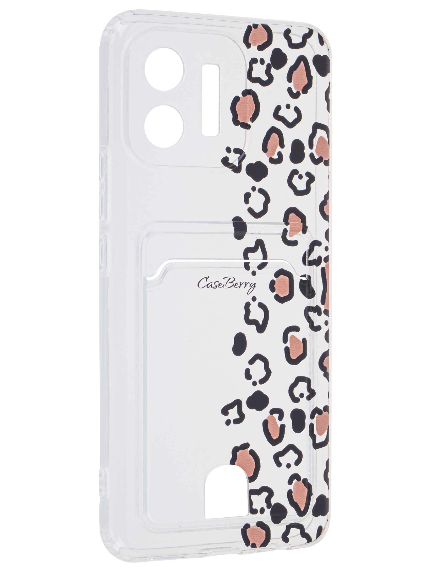 Силиконовый чехол Cardhold для Honor X5 леопардовая половинка (с вырезом для карт)