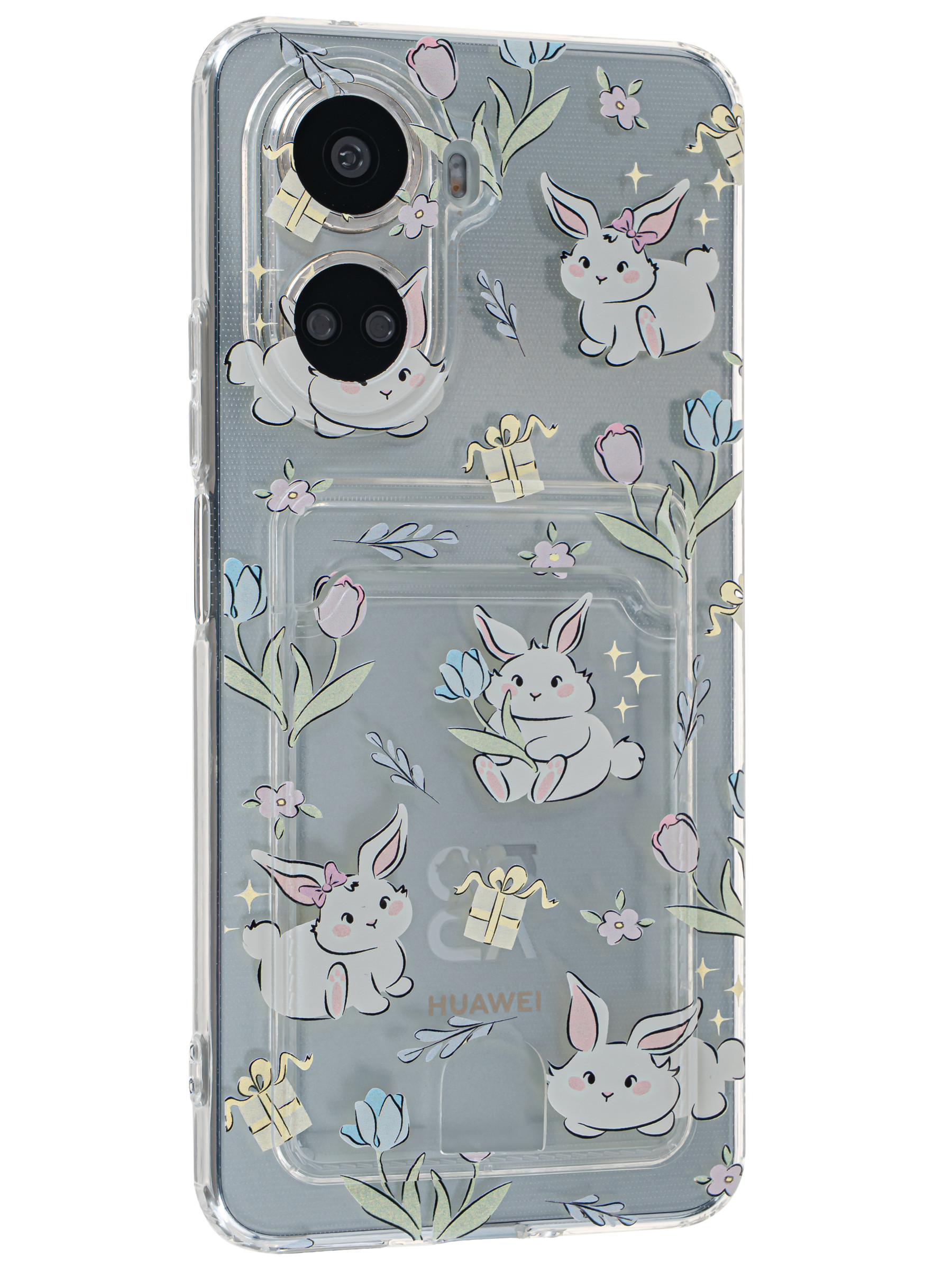 Силиконовый чехол Cardhold для Huawei Nova 10 SE зайчата (с вырезом для карт)
