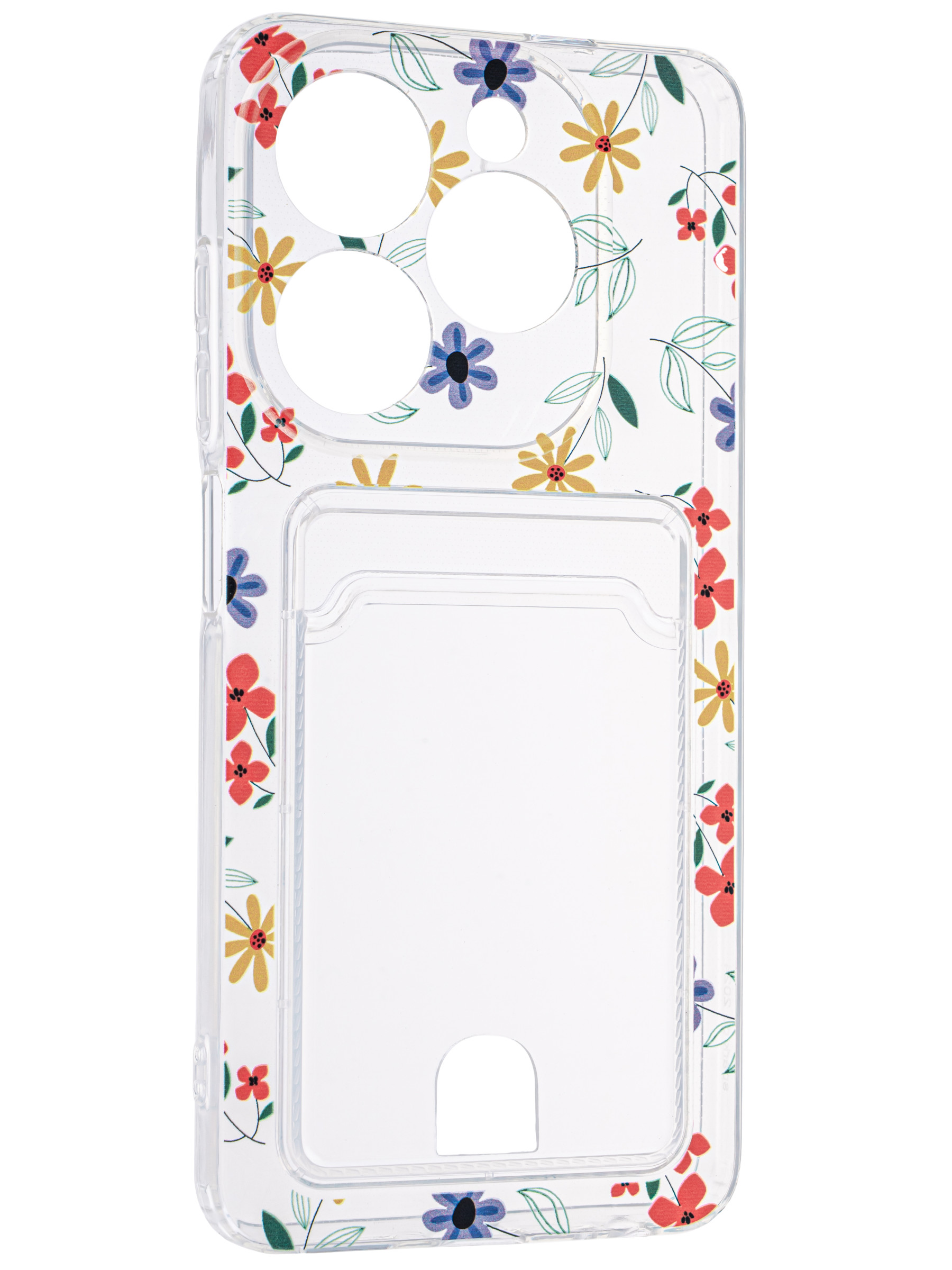 Силиконовый чехол Cardhold для Infinix Hot 40i цветочки (с вырезом для карт)