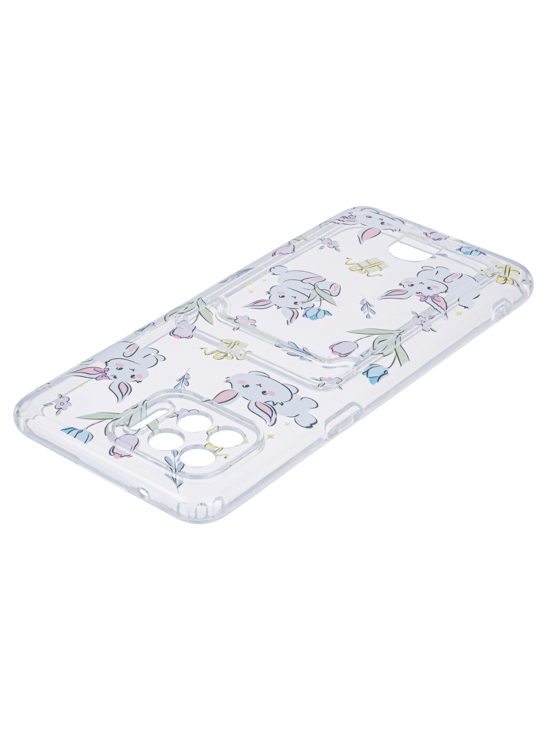 Силиконовый чехол Cardhold для Oppo Reno 4 Lite зайчата (с вырезом для карт)