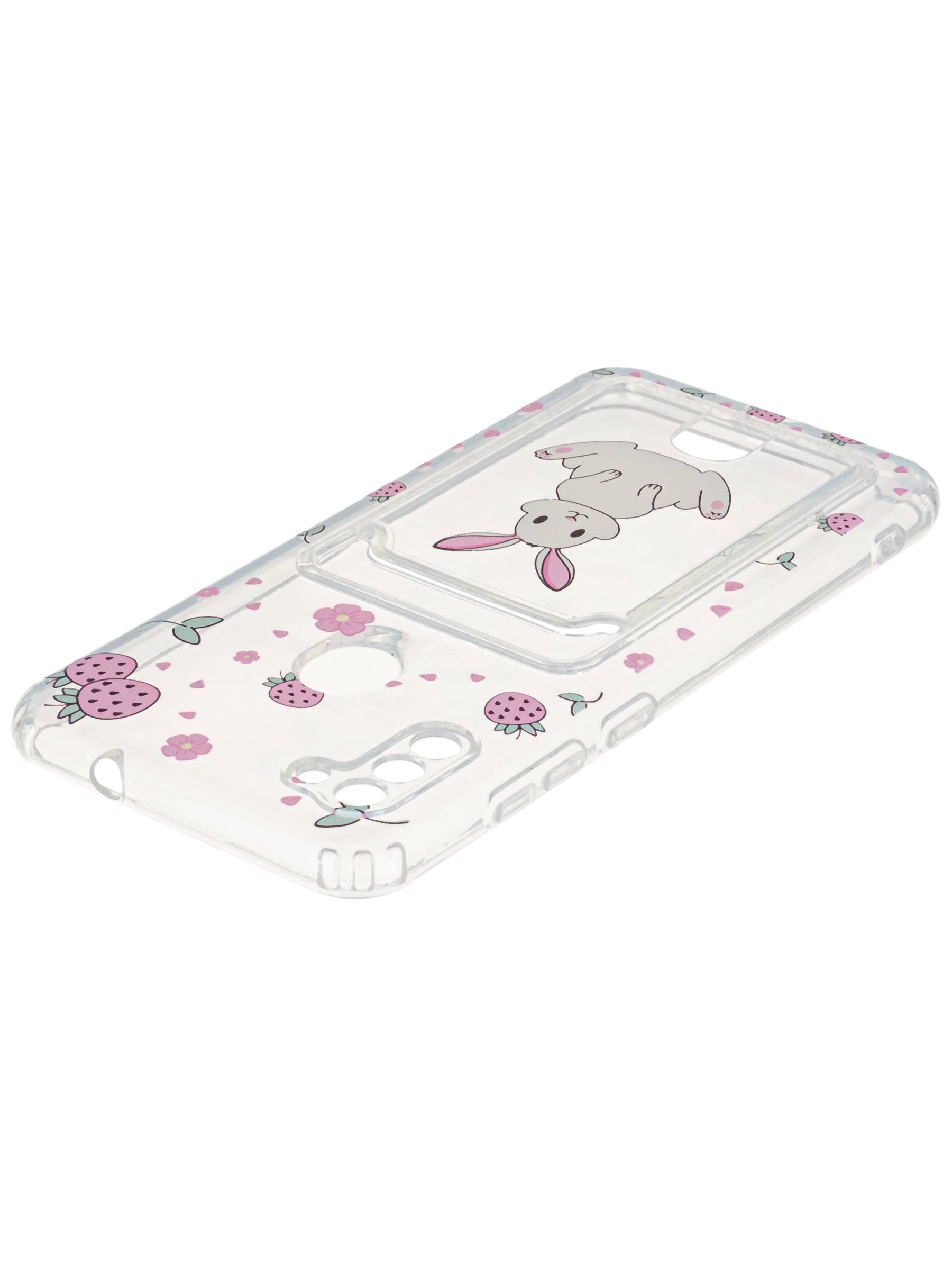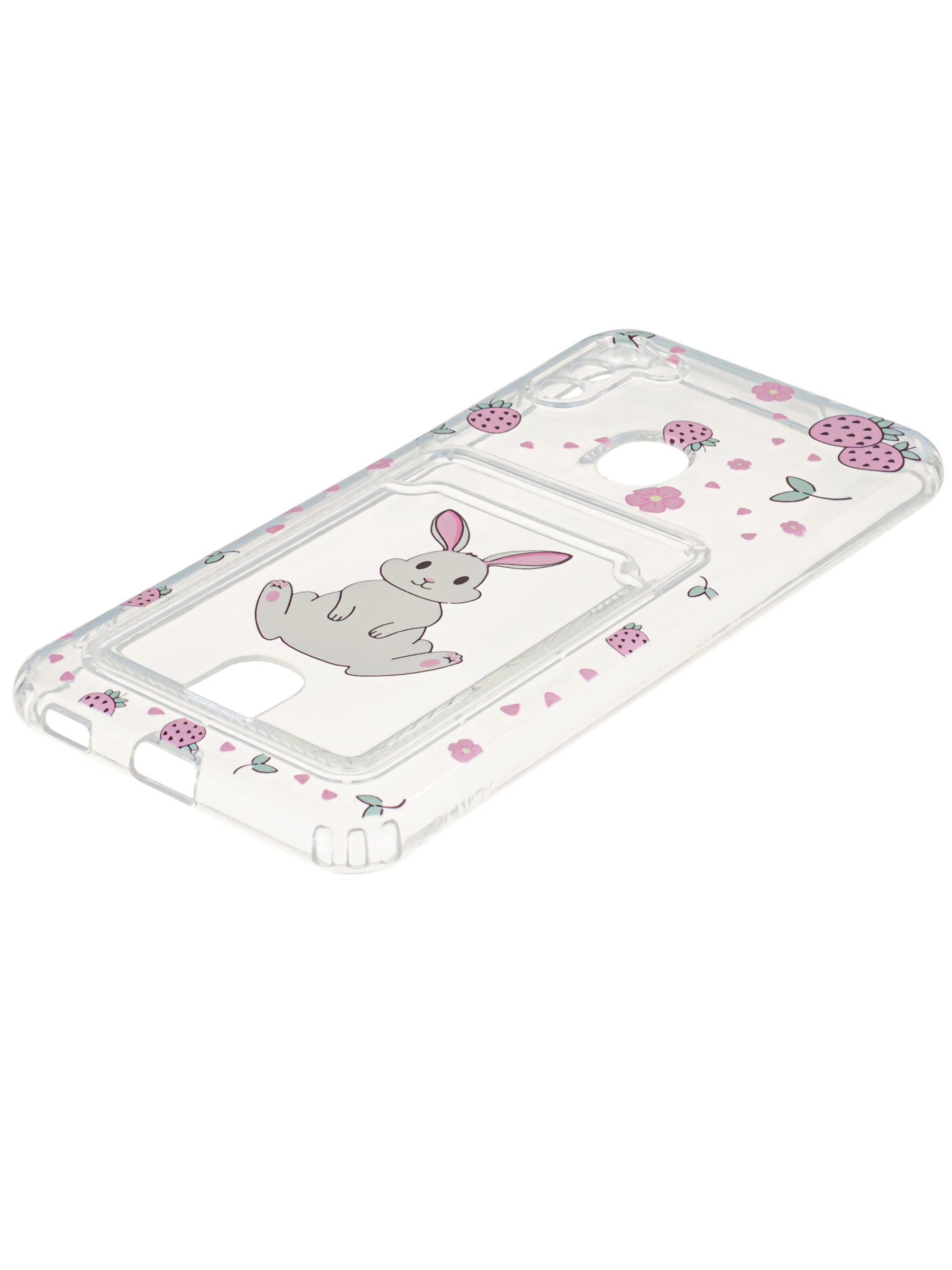 Силиконовый чехол Cardhold для Samsung Galaxy A11 клубничкин (с вырезом для карт)