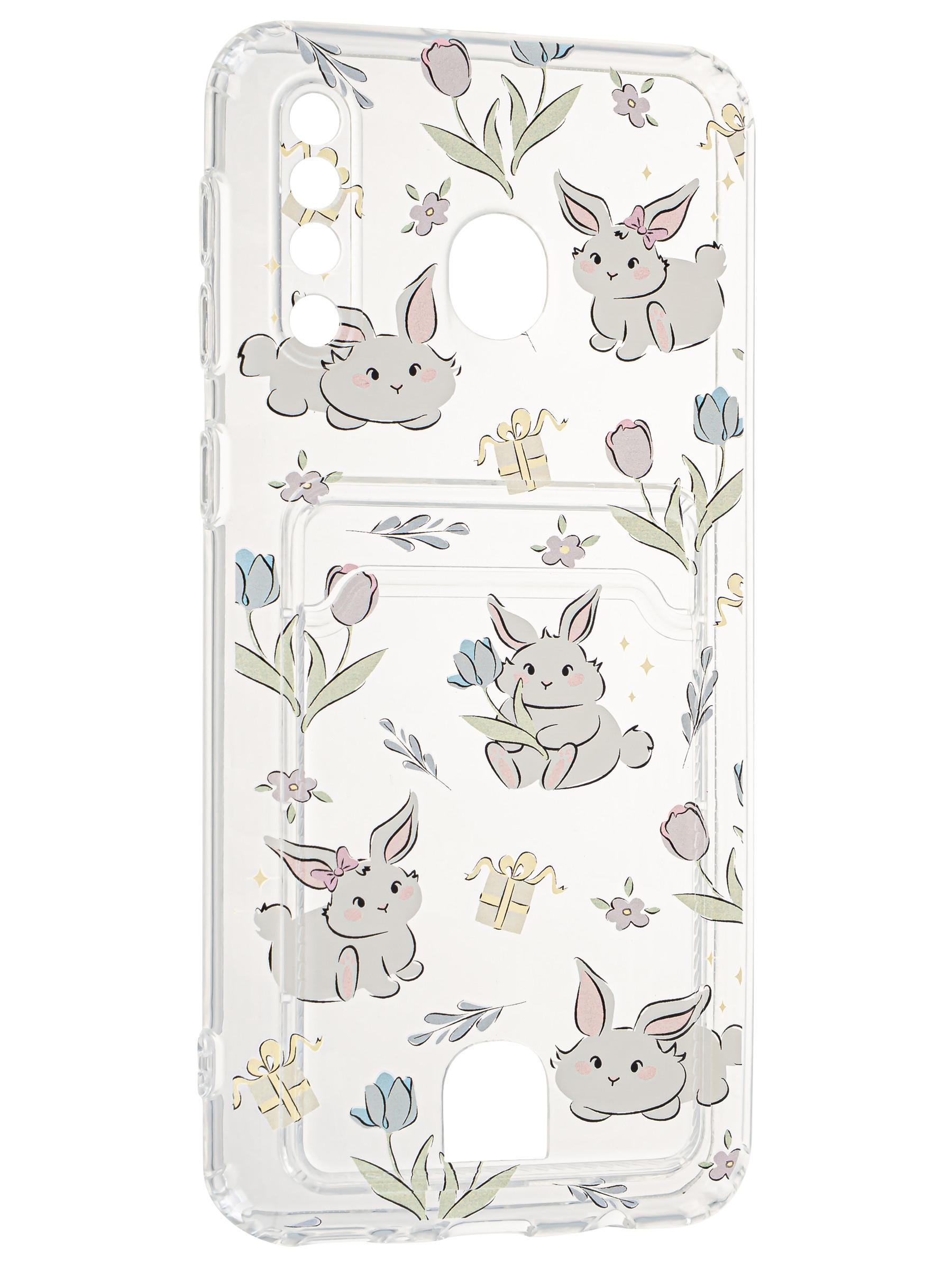 Силиконовый чехол Cardhold для Samsung Galaxy A40 зайчата (с вырезом для карт)