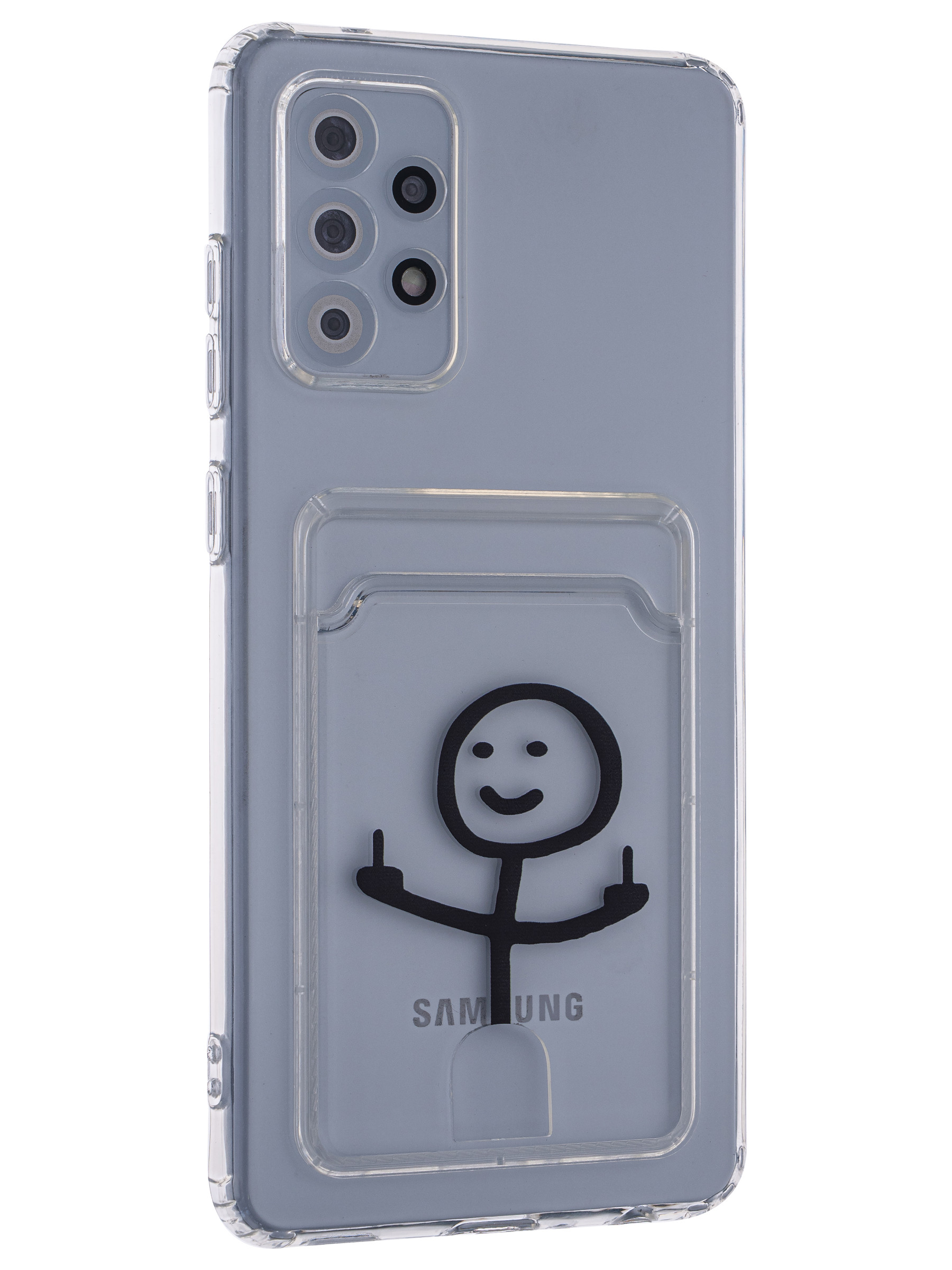 Силиконовый чехол Cardhold для Samsung Galaxy A72 человечек (с вырезом для карт)