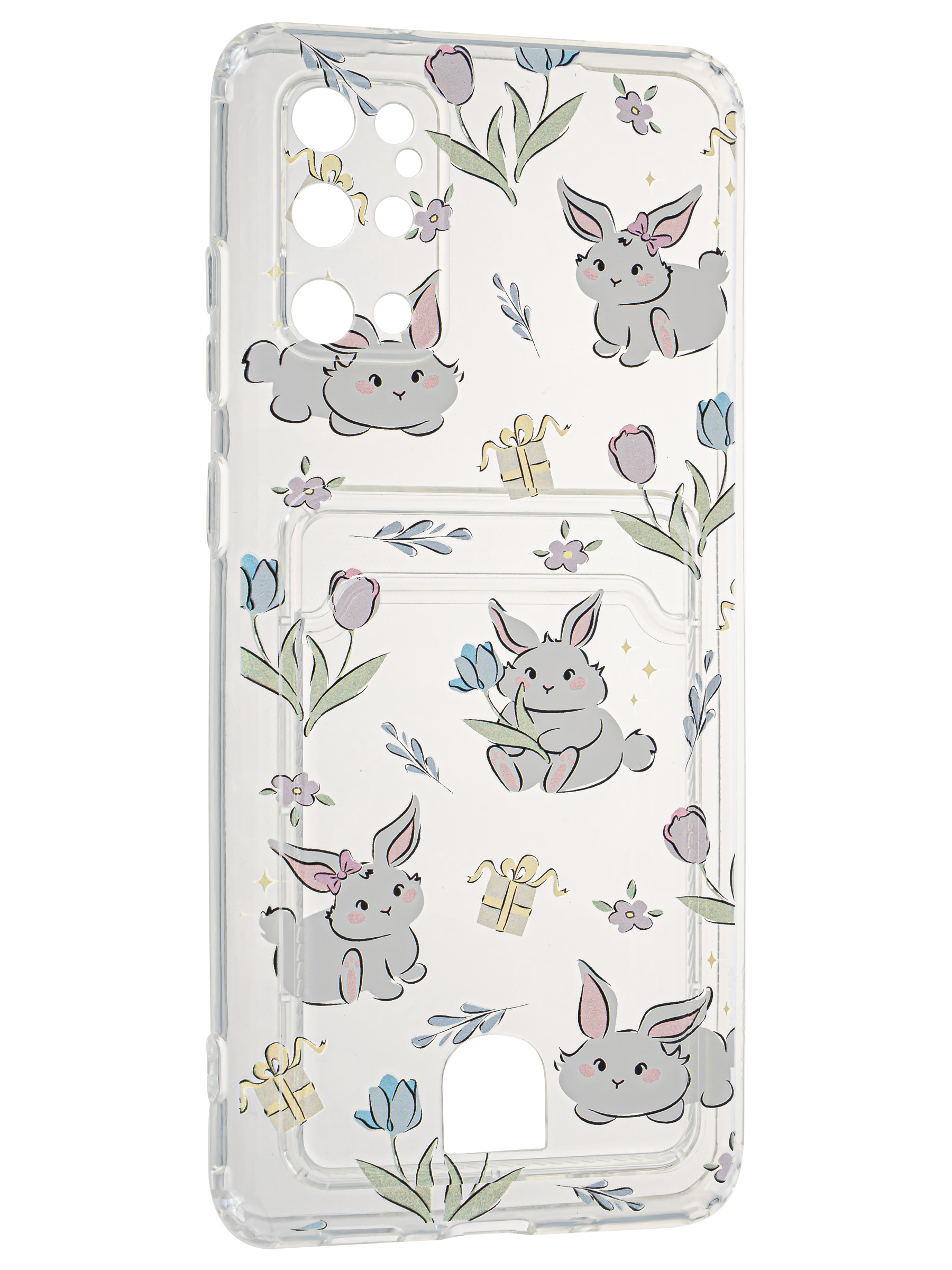 Силиконовый чехол Cardhold для Samsung Galaxy S20 Plus зайчата (с вырезом для карт)