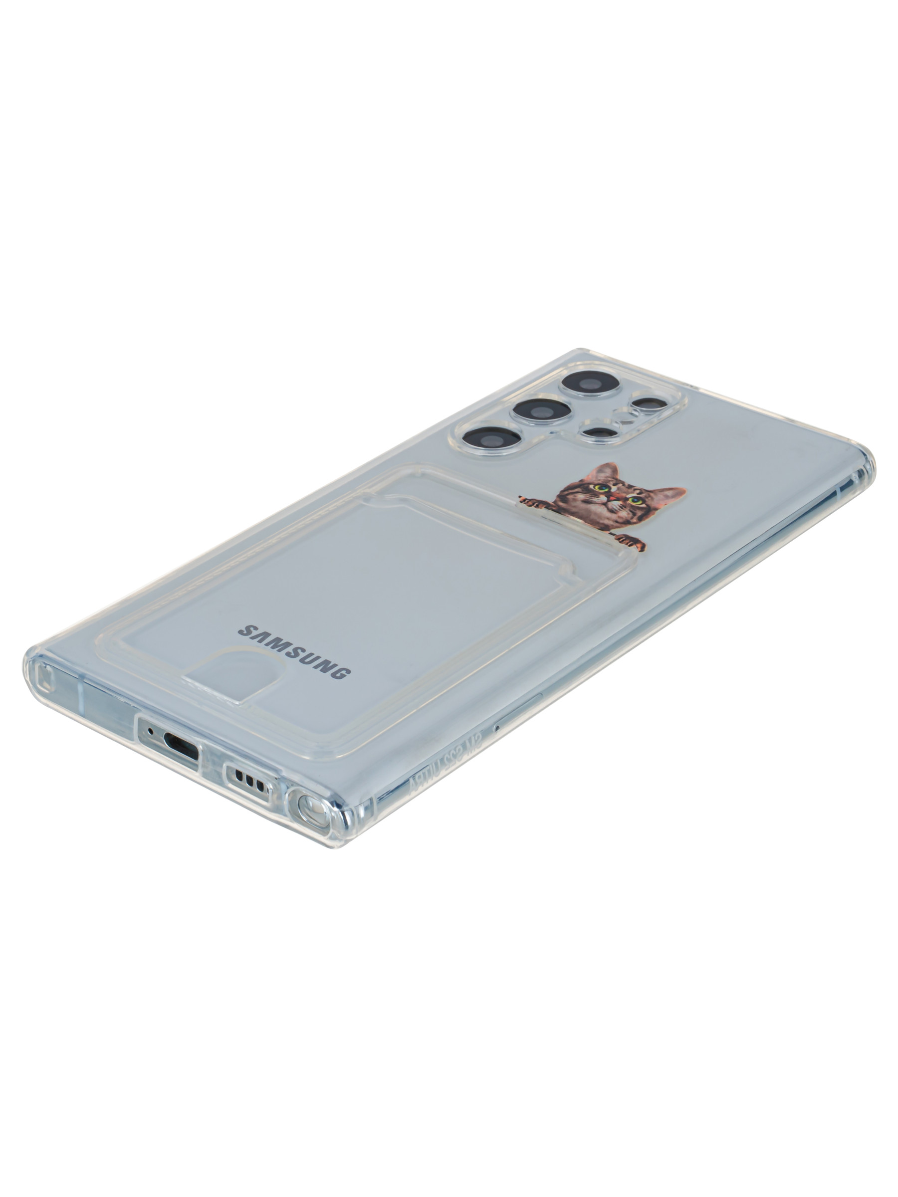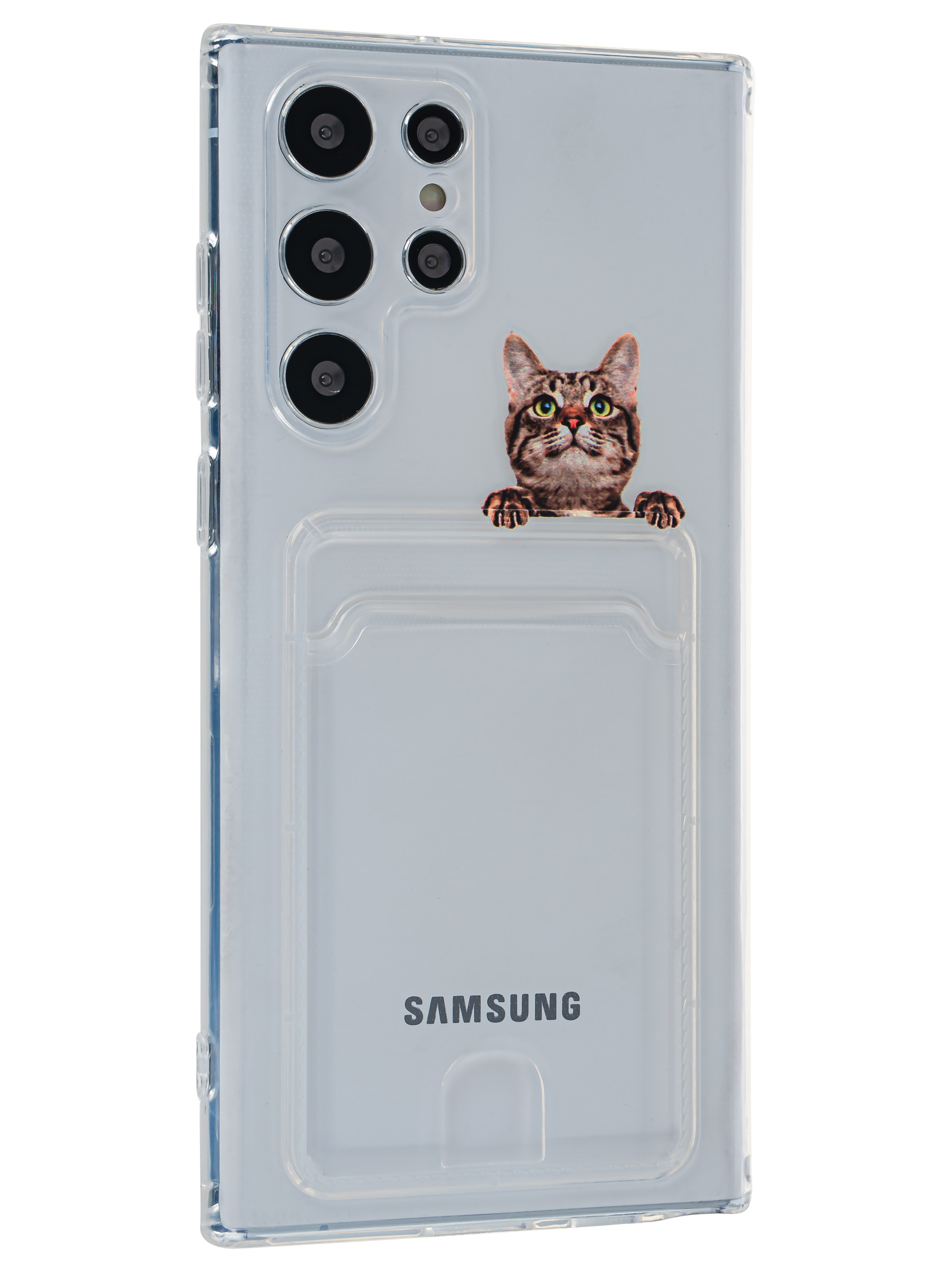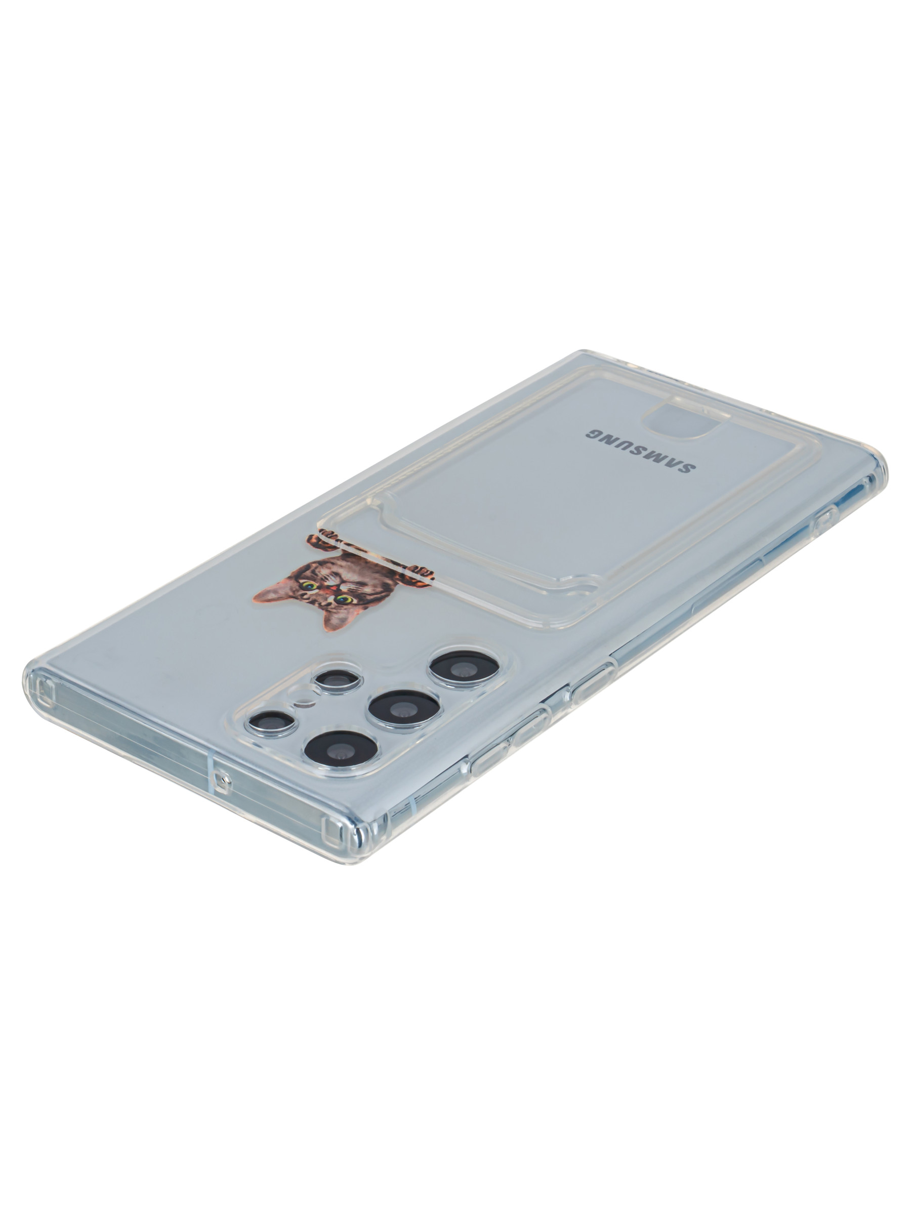 Силиконовый чехол Cardhold для Samsung Galaxy S22 Ultra cat (с вырезом для карт)