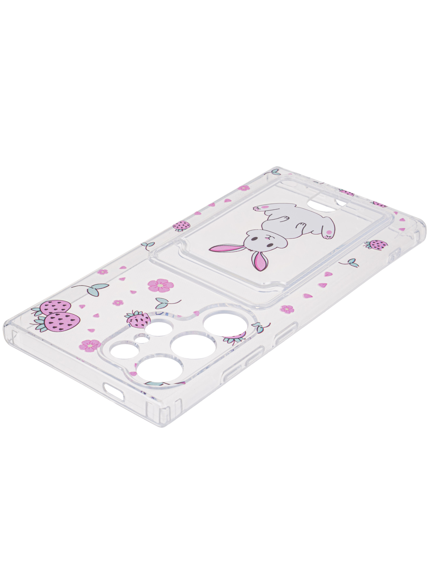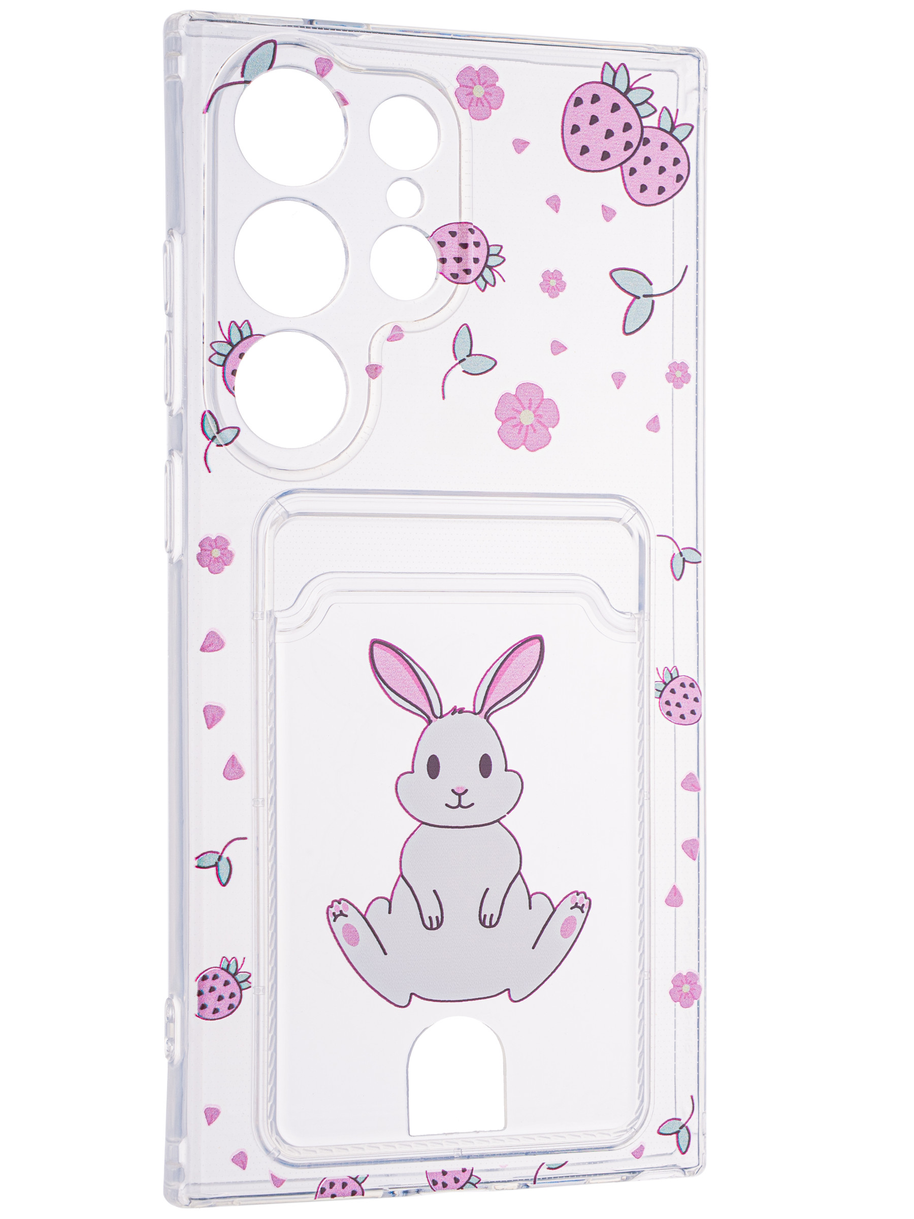 Силиконовый чехол Cardhold для Samsung Galaxy S24 Ultra клубничкин (с вырезом для карт)