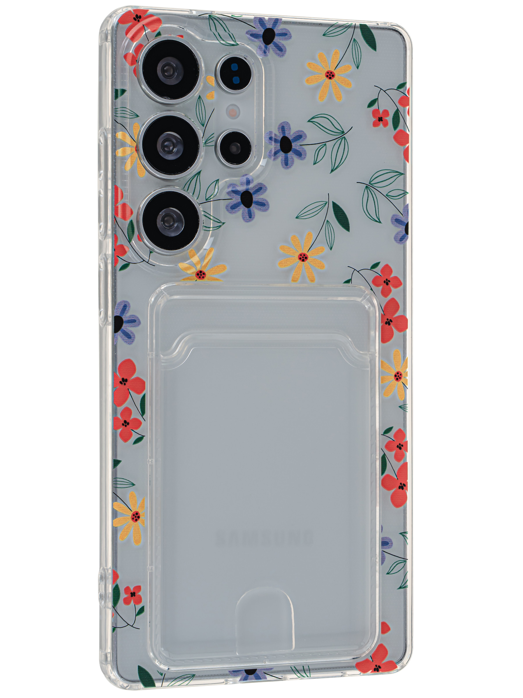 Силиконовый чехол Cardhold для Samsung Galaxy S25 Ultra цветочки (с вырезом для карт)
