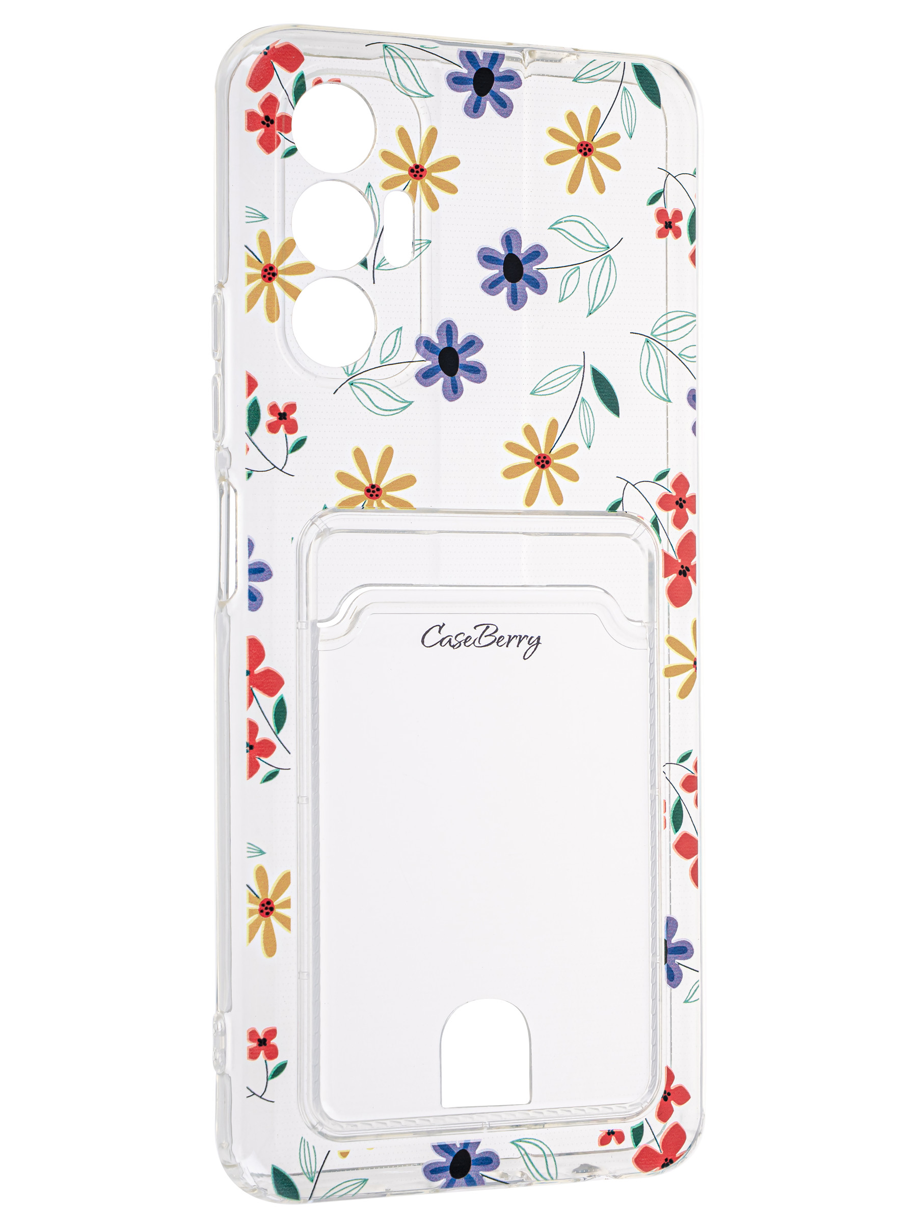 Силиконовый чехол Cardhold для Tecno Pova 3 цветочки (с вырезом для карт)