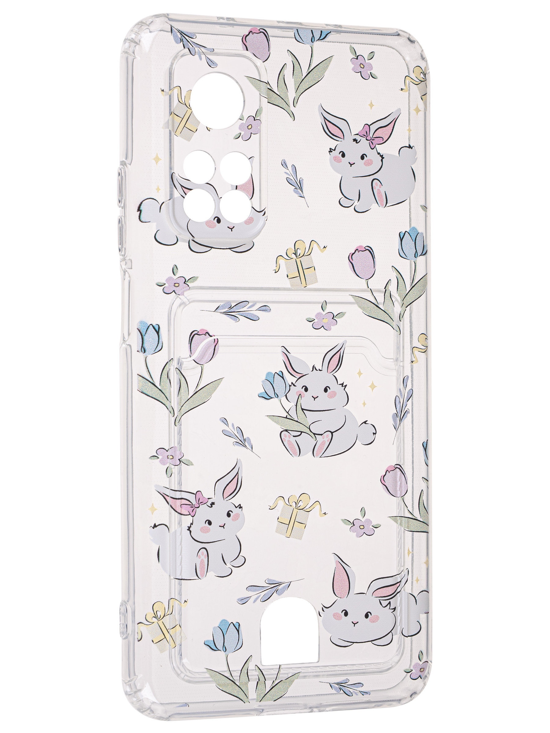 Силиконовый чехол Cardhold для Xiaomi Mi 10T / Mi 10T Pro зайчата (с вырезом для карт)