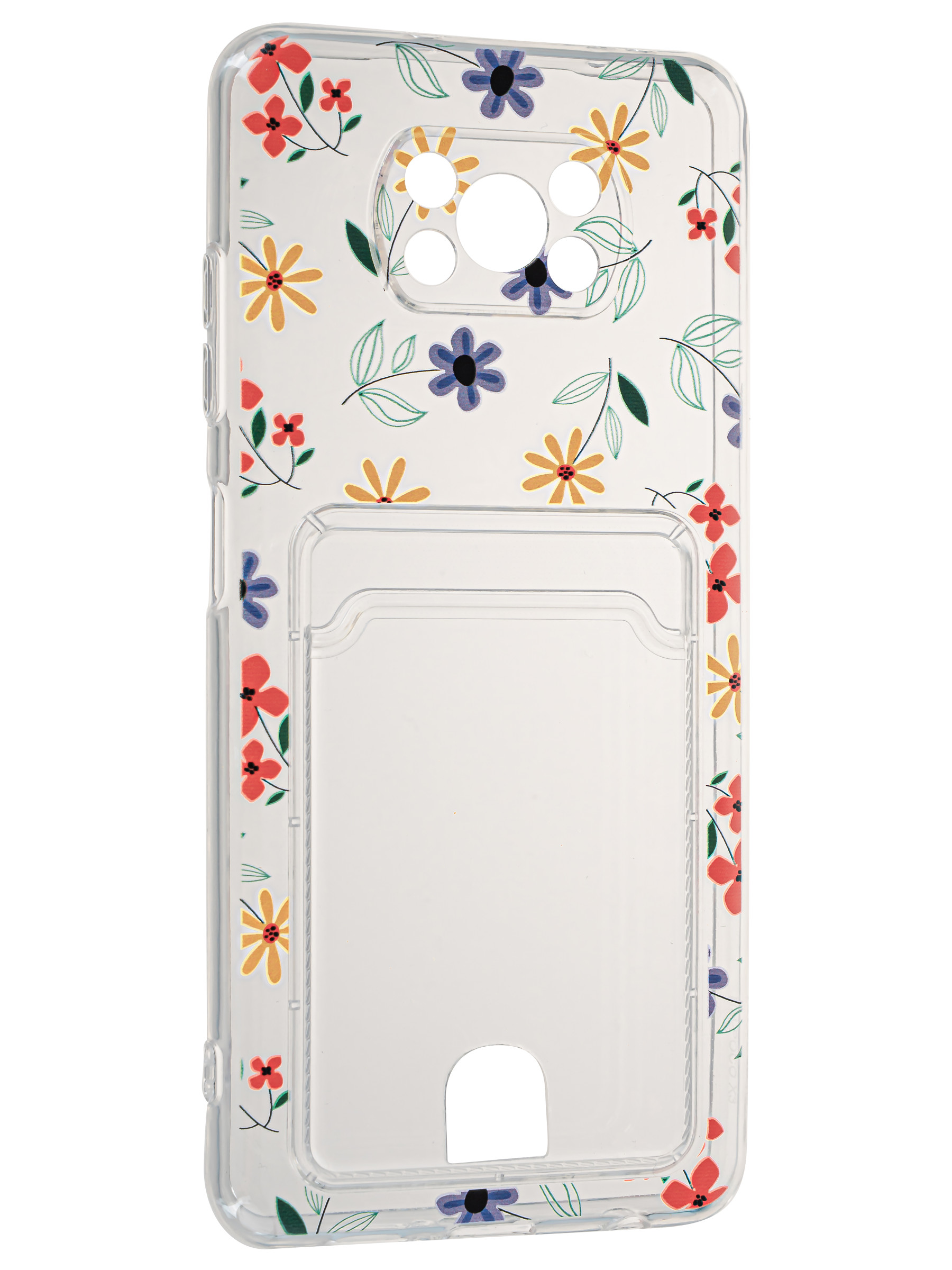Силиконовый чехол Cardhold для Xiaomi Poco X3 (Pro) цветочки (с вырезом для карт)