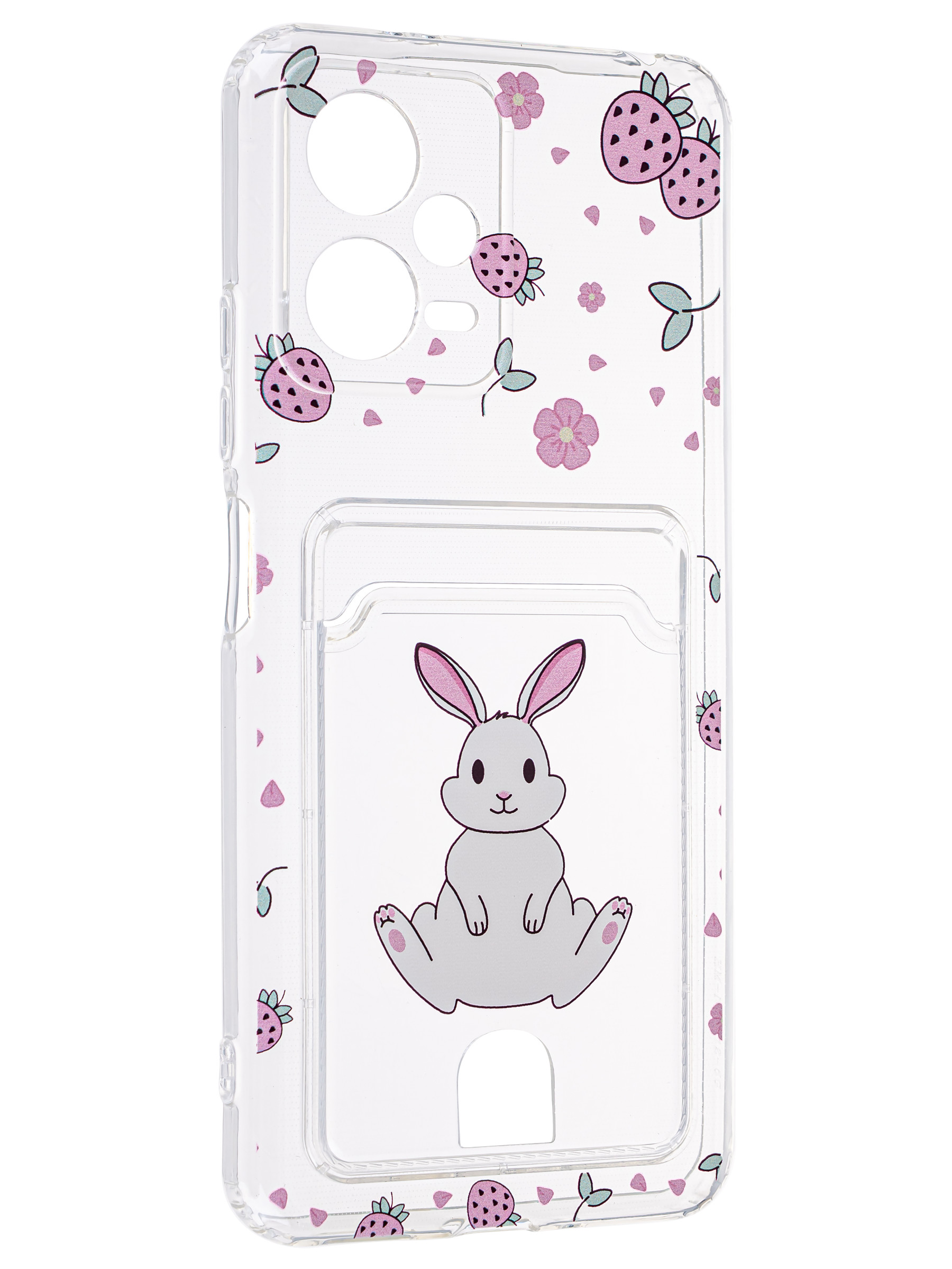 Силиконовый чехол Cardhold для Xiaomi Poco X5 / Redmi Note 12 5G клубничкин (с вырезом для карт)
