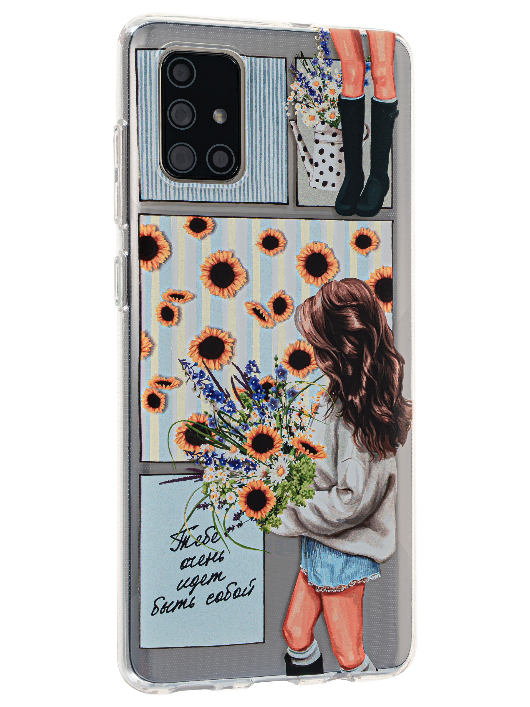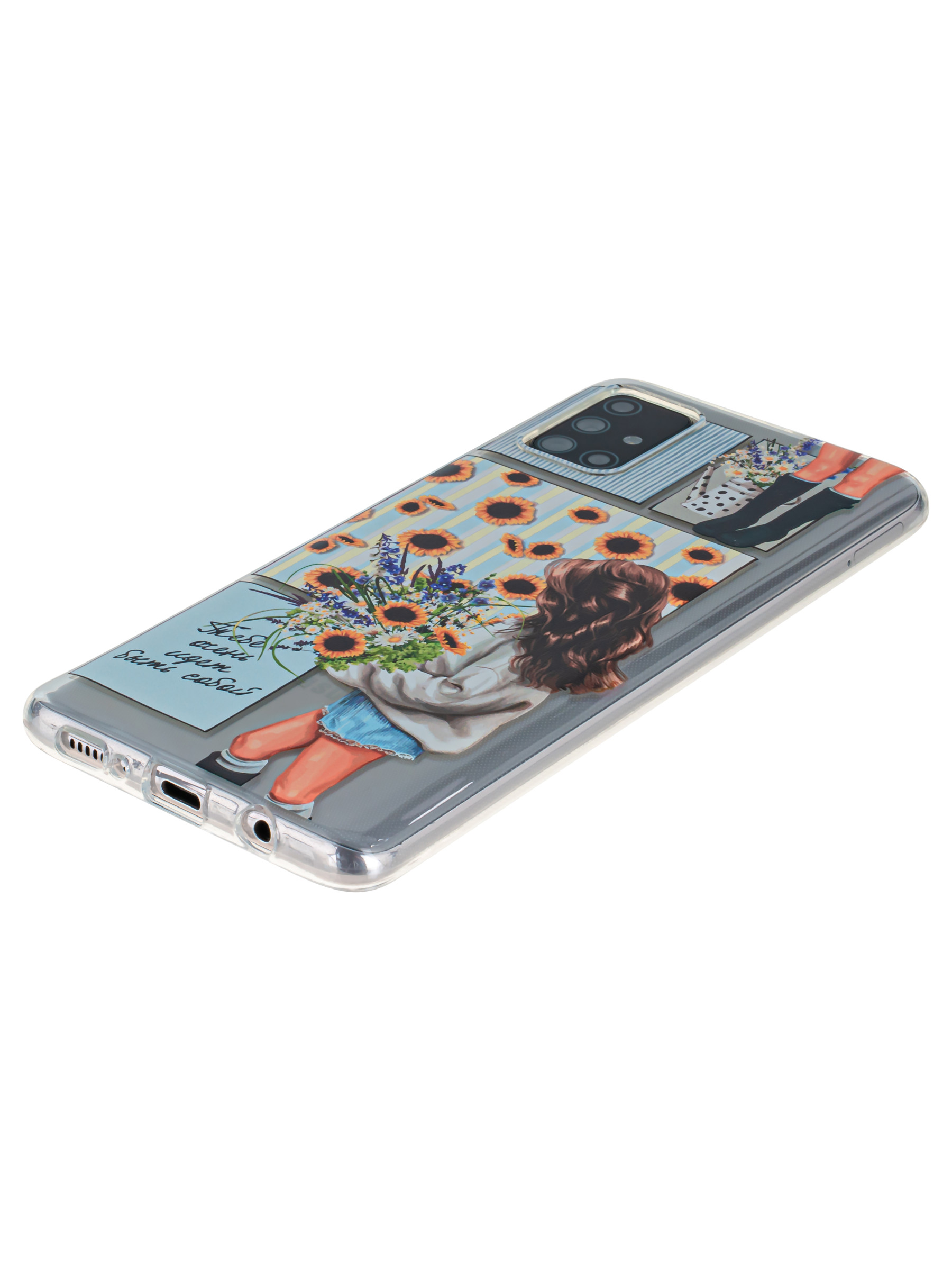 Силиконовый чехол Clear для Samsung Galaxy A71 с цветами