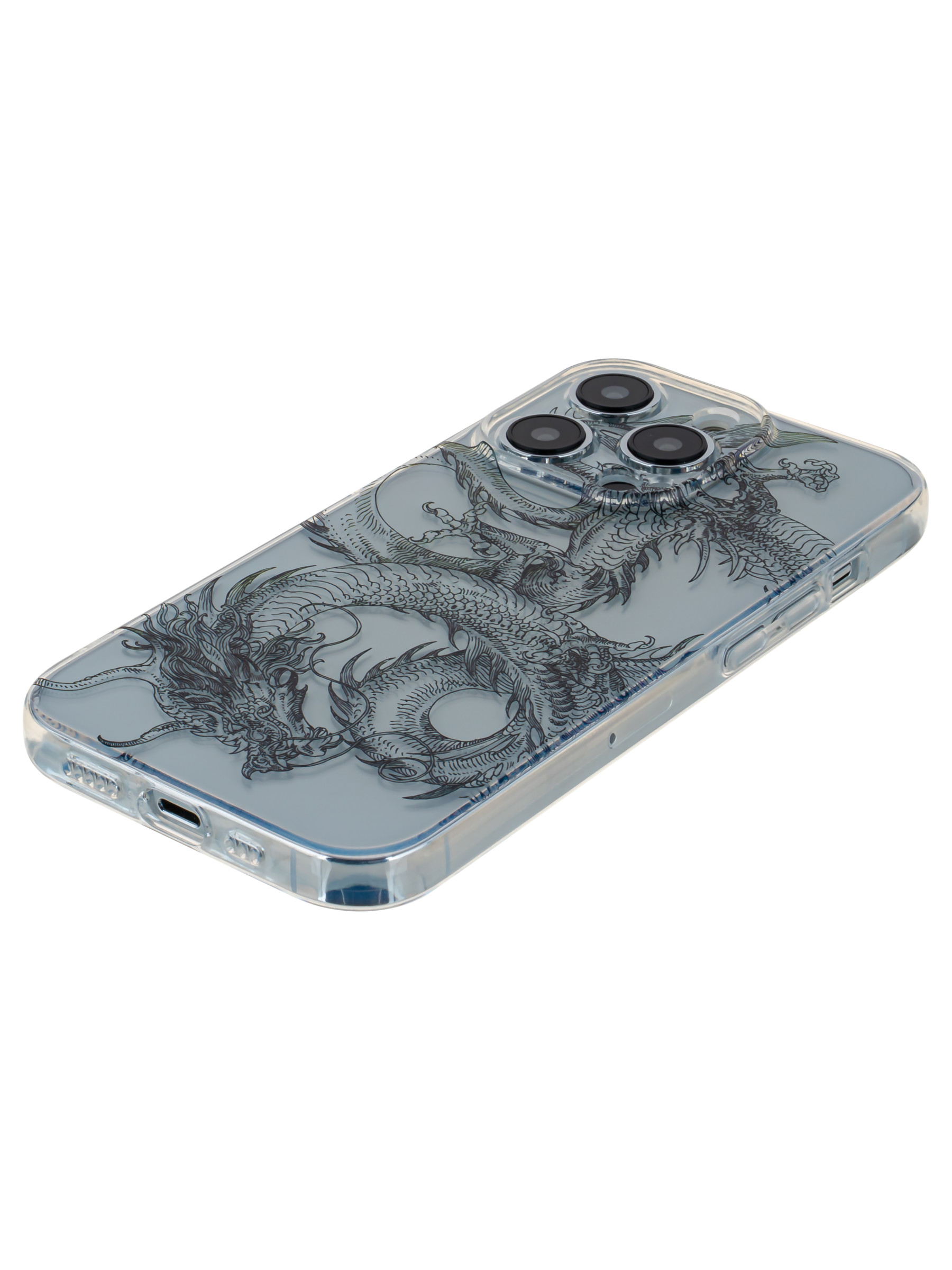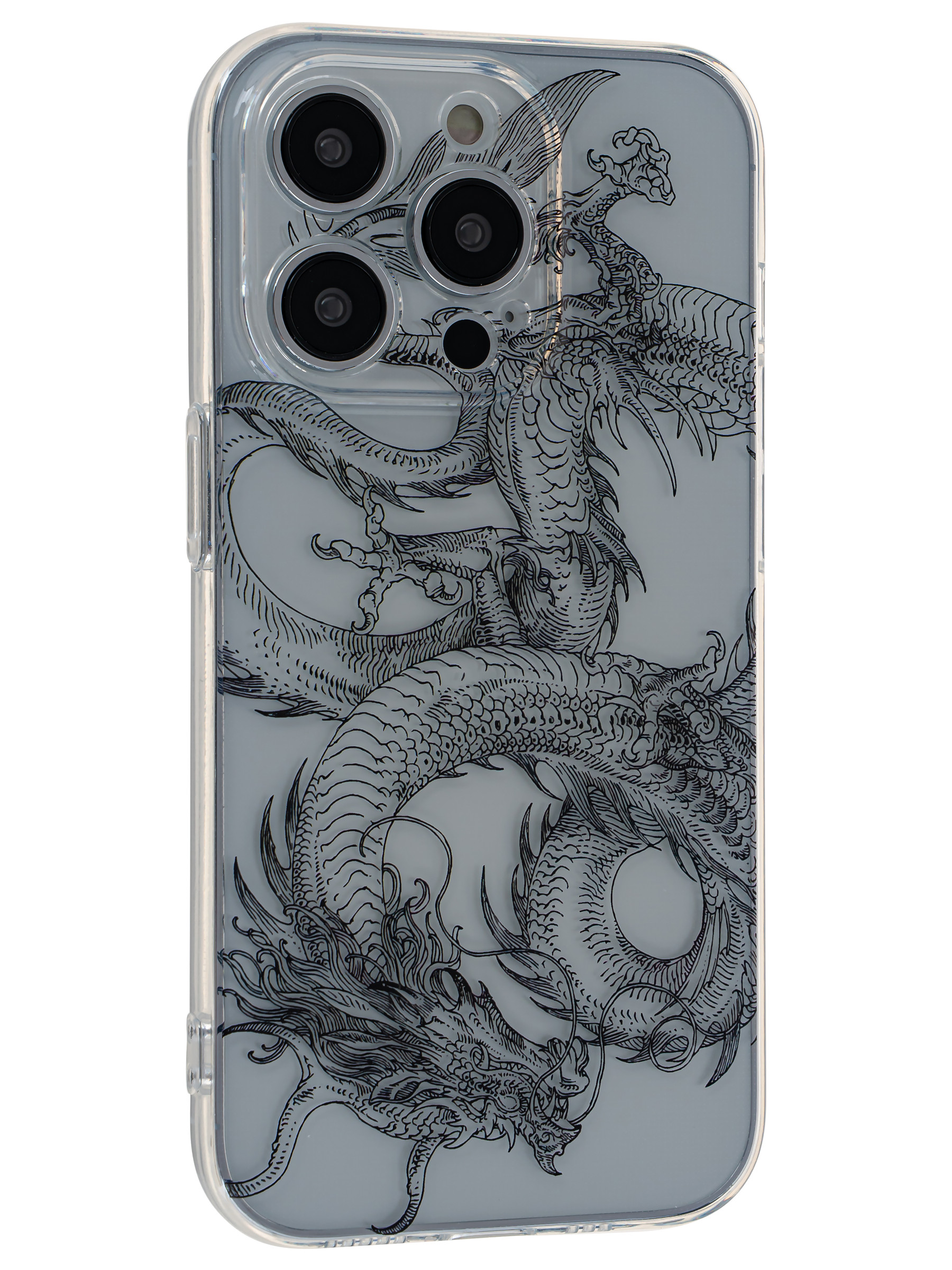 Силиконовый чехол Clear protection для iPhone 14 Pro эскиз дракона