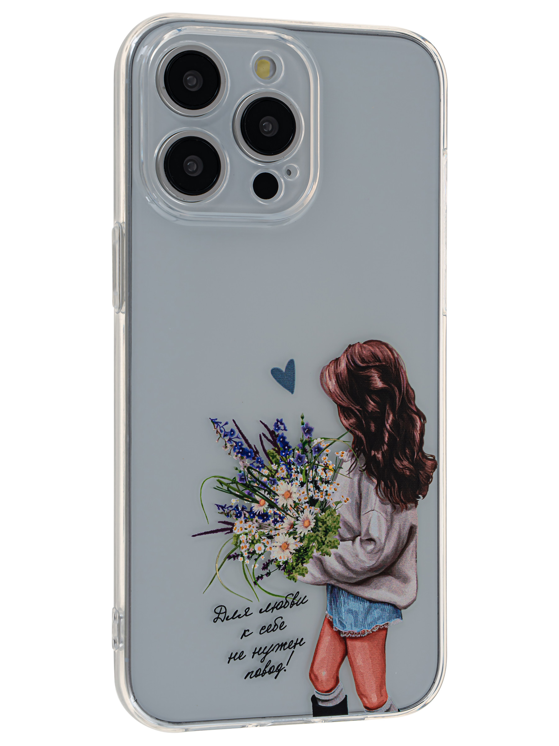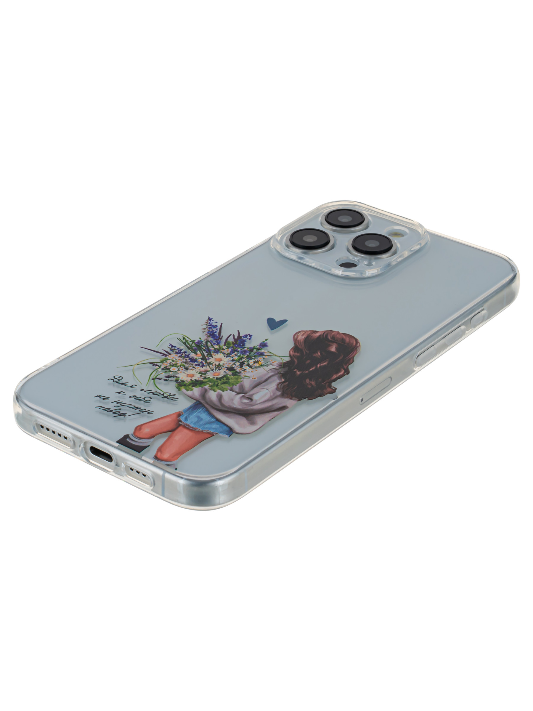 Силиконовый чехол Clear protection для iPhone 15 Pro Max с цветами