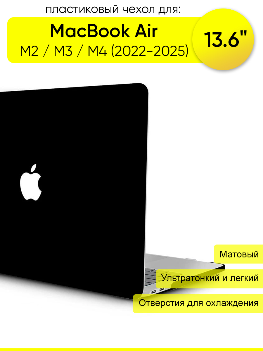 Пластиковый чехол Crystal frosted для MacBook Air 13.6" M2, M3, M4 (2022-2025) матовый черный с вырезом под логотип