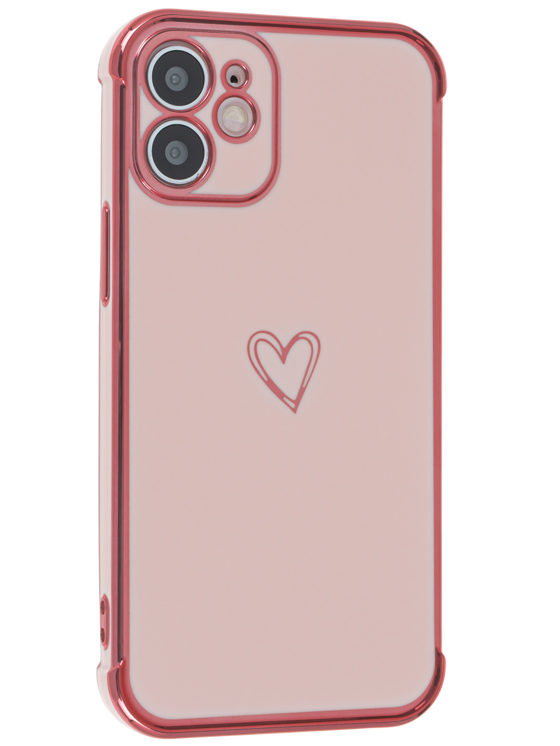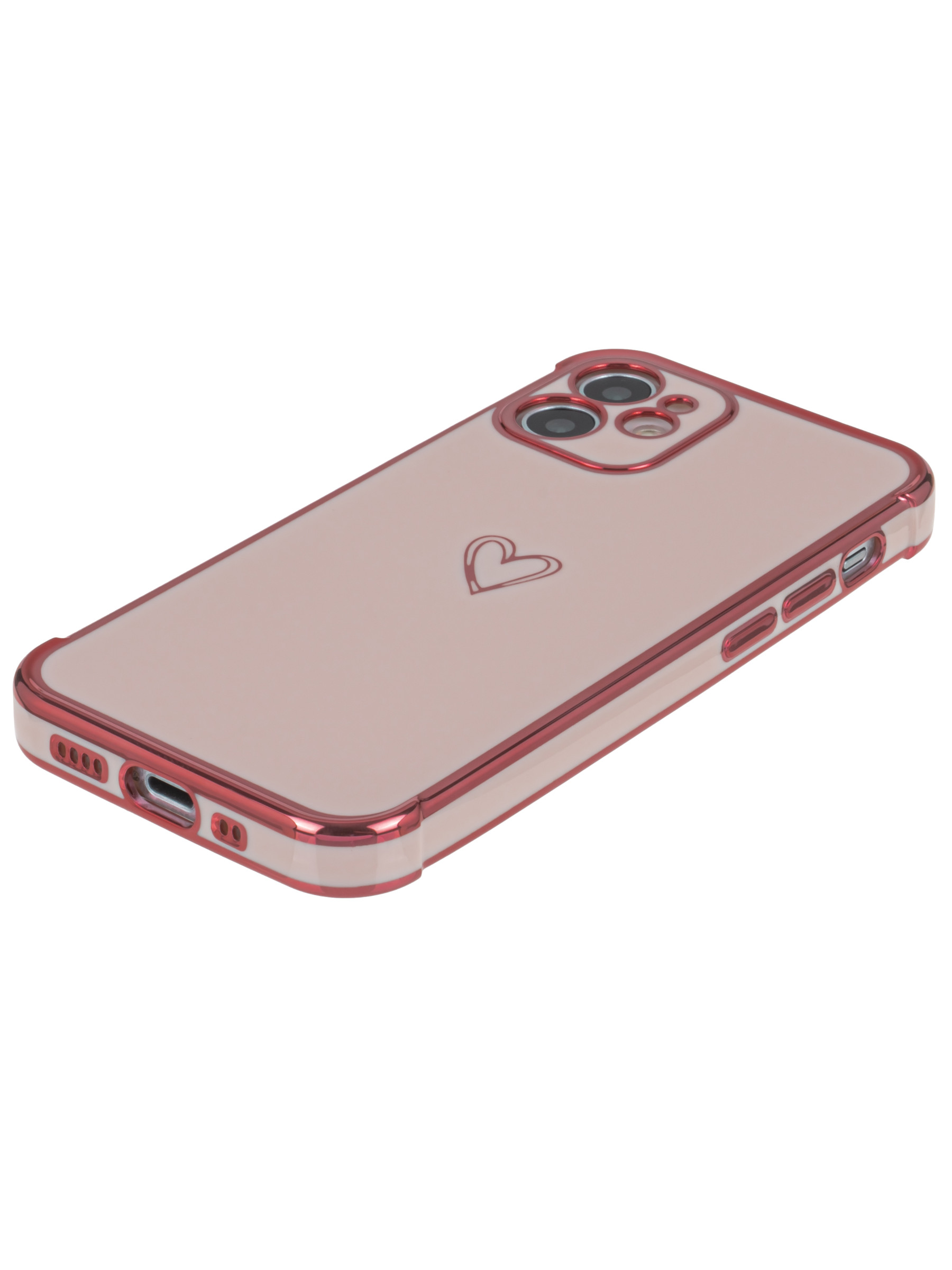 Силиконовый чехол Electroplate hearts для iPhone 12 Mini песочно-розовый