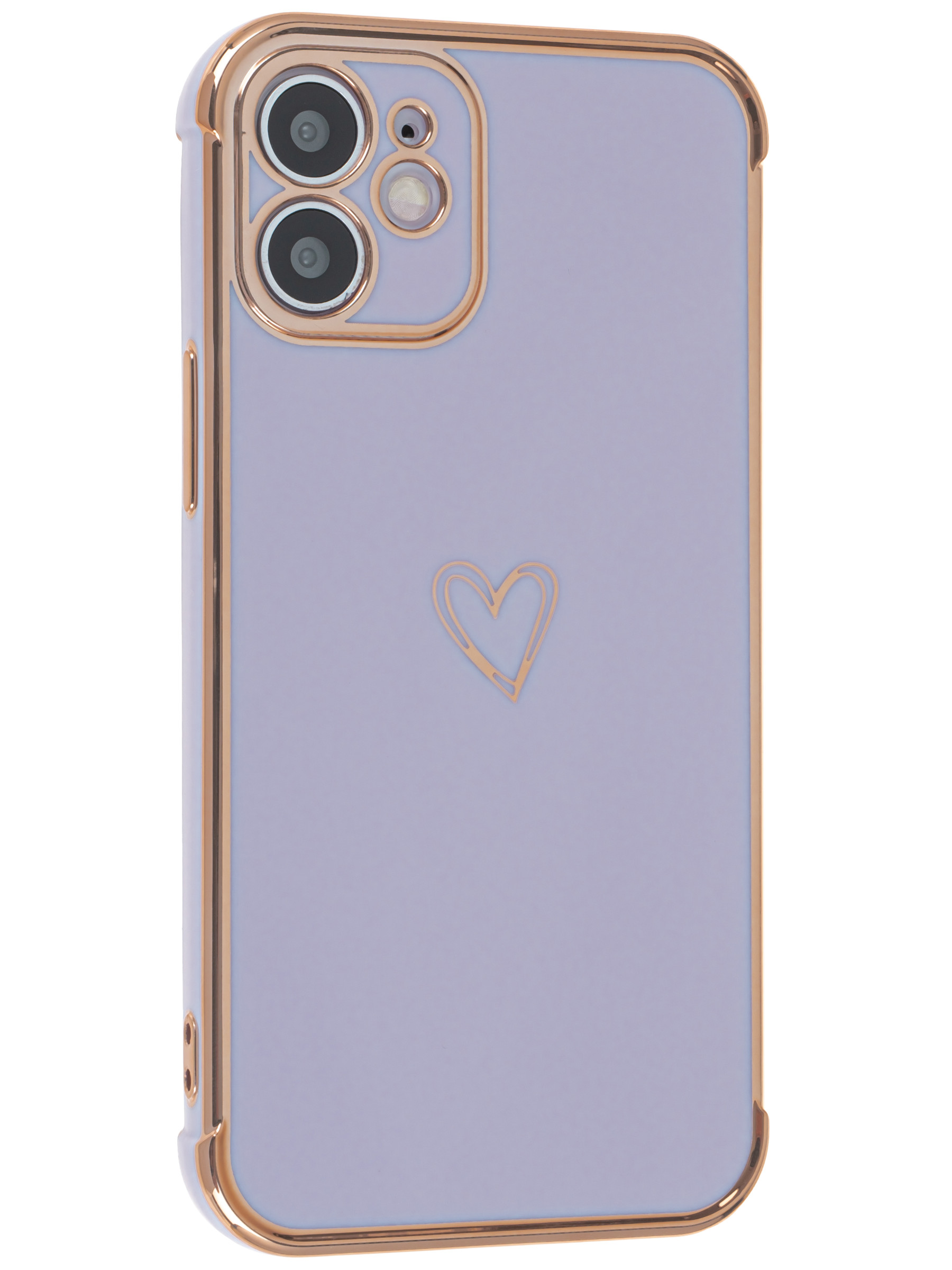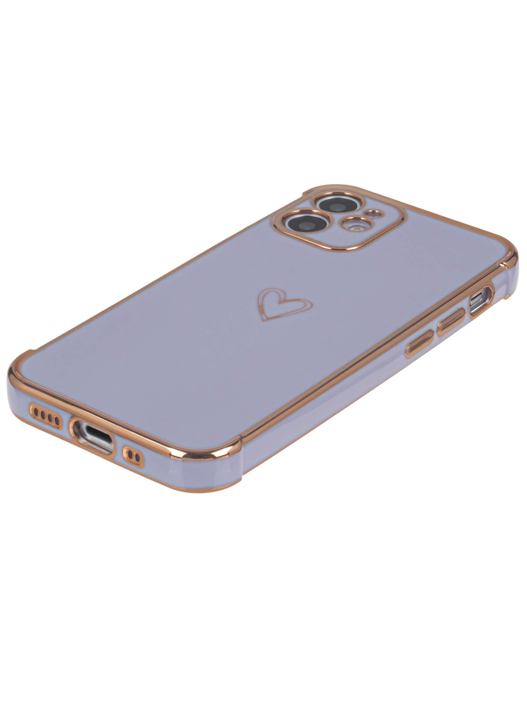 Силиконовый чехол Electroplate hearts для iPhone 12 Mini розово-сиреневый