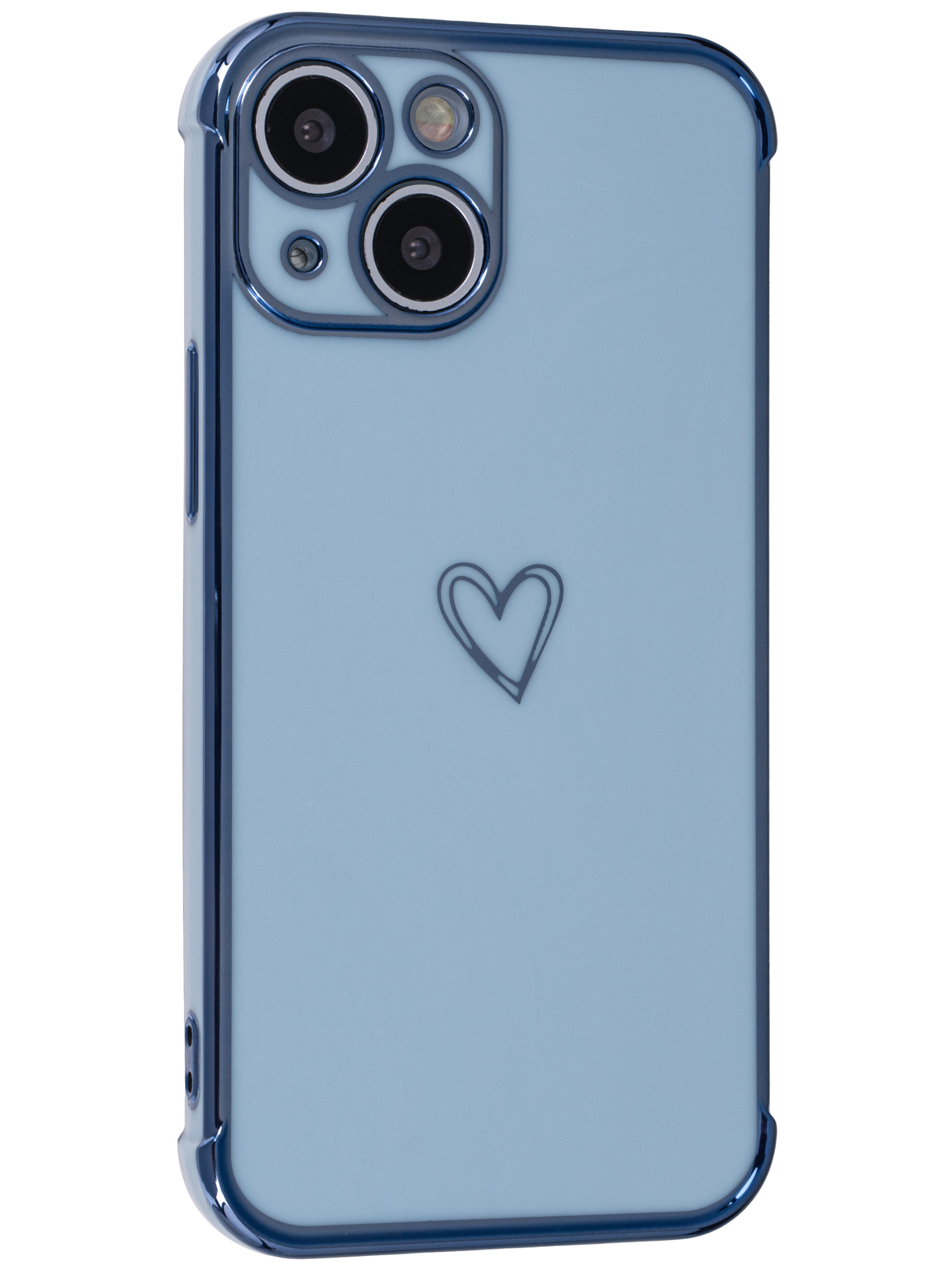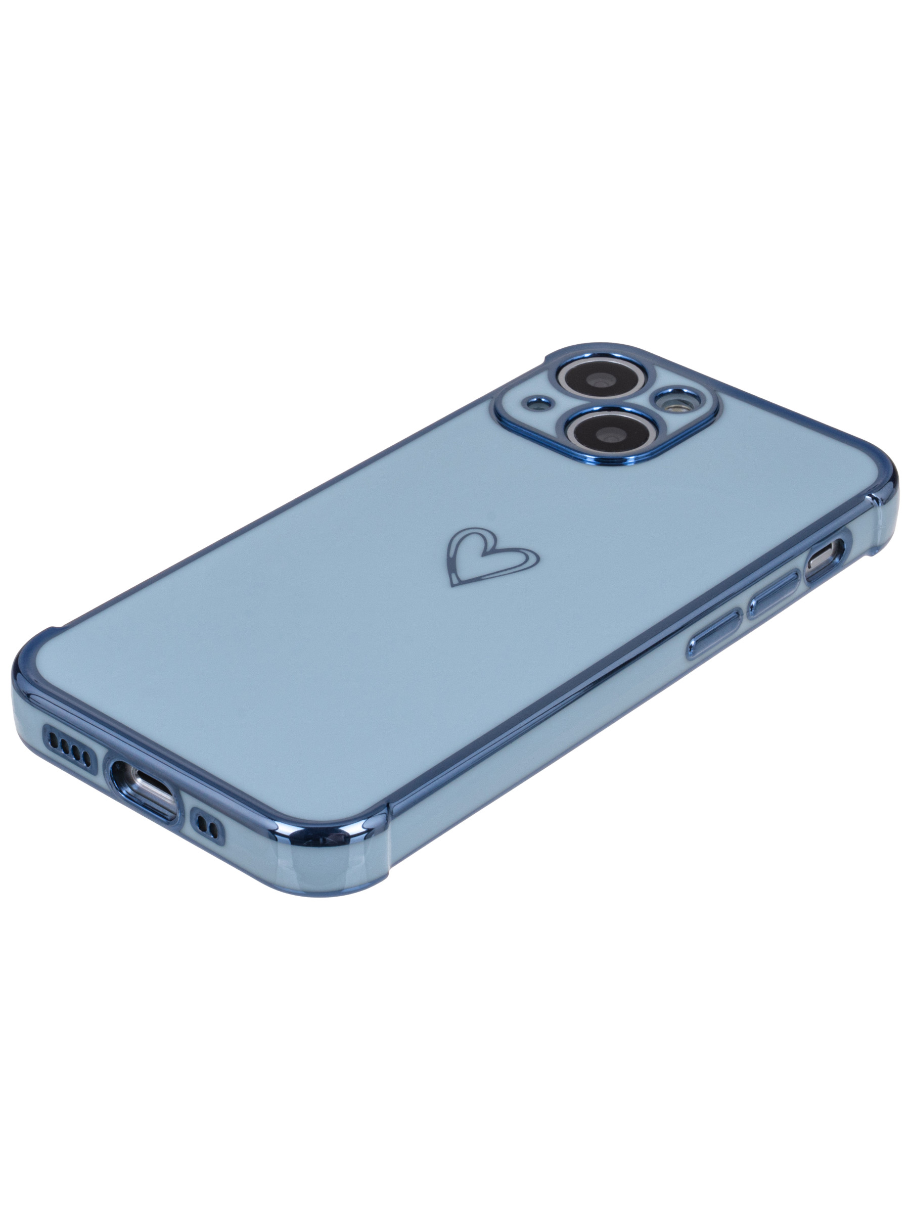 Силиконовый чехол Electroplate hearts для iPhone 13 Mini голубой