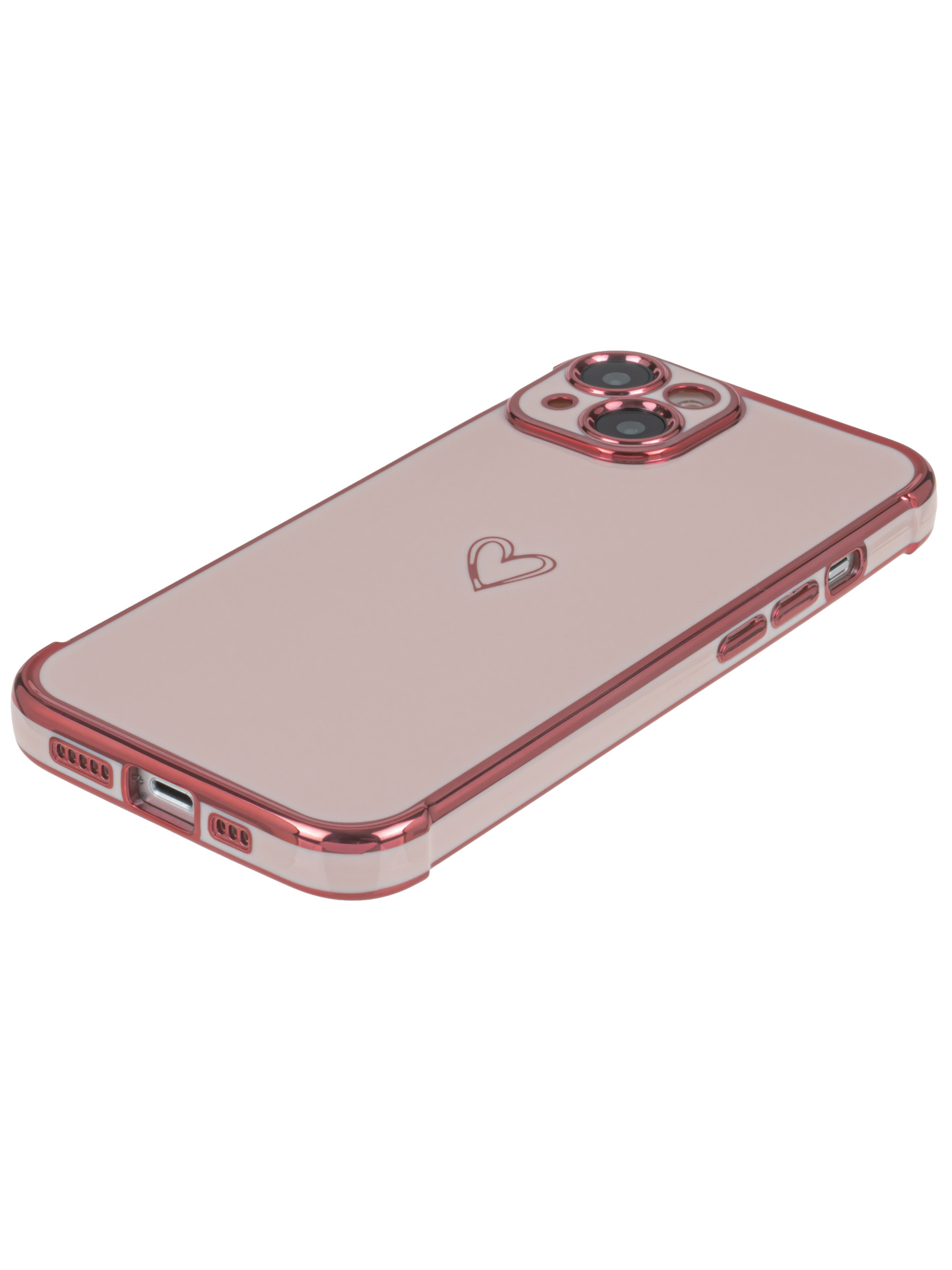 Силиконовый чехол Electroplate hearts для iPhone 14 песочно-розовый